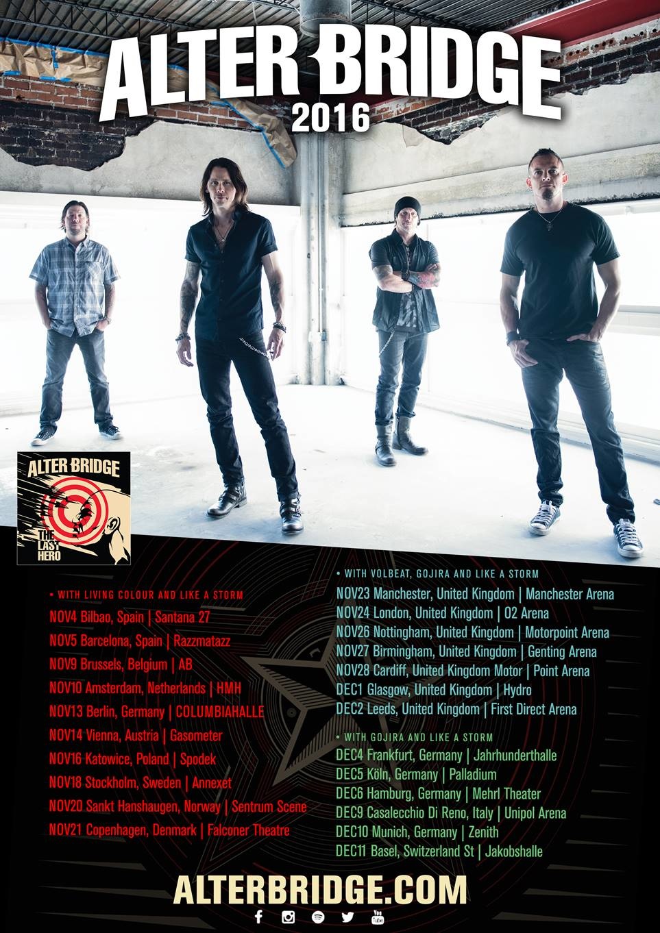 Neues Album, neue Tour. So auch bei ALTER BRIDGE . Nachdem sie im Oktober „The Last Hero“ veröffentlicht haben, sind sie nun auf „The Last Hero“-Tour auch bei uns zu Lande unterwegs. Beim Konzert in Köln waren wir für euch dabei.