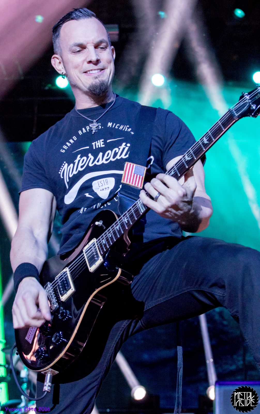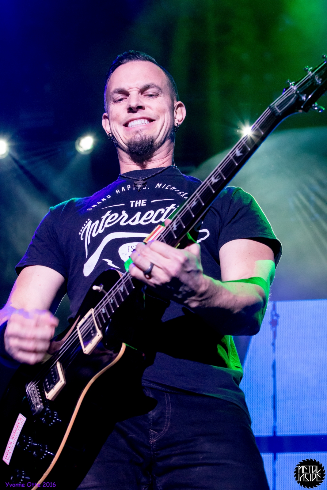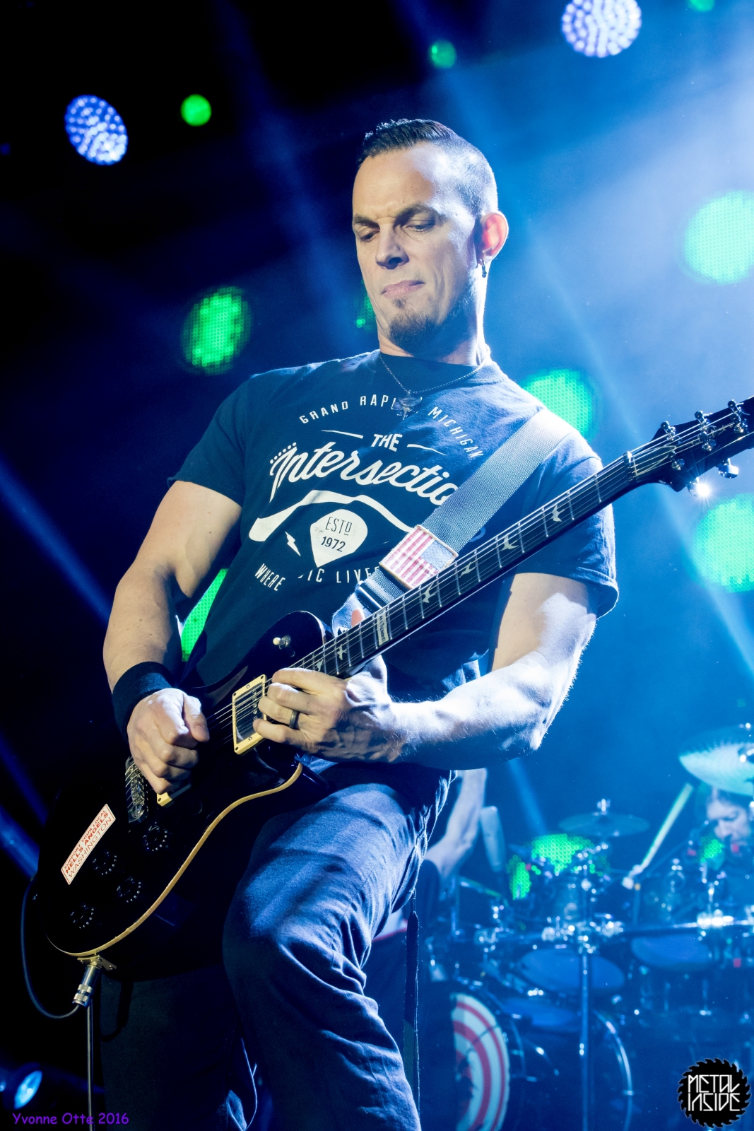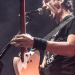 Recht spät am Abend, gegen 21 Uhr 30 durften ALTER BRIDGE endlich auf die Bühne. Das Palladium war zwar nicht restlos ausverkauft, aber wirklich viel Platz zum Stehen hatte man trotzdem nicht. ALTER BRIDGE brauchte nicht viel machen, schon die bloße Anwesenheit auf der Bühne brachte die Menge zum ausrasten. Mit „Writing On The Wall“ vom neuen Album „The Last Hero“ sollte der Abend starten und allen einen unvergessliches Konzert bescheren. Die Songauswahl war gut getroffen. Es wurden von allen Alben Songs gespielt, wobei dasNeue natürlich im Fokus stand. Hits wie „Metalingus“ oder „ Addicted To Pain“ sollten aber auch nicht fehlen. Trotz der Power der Band hat es sich ALTER BRIDGE nicht nehmen lassen „Watch Over You“ akustisch zu spielen: Nur Myles und seine Gitarre! Der Applaus danach war gigantisch. Die kleine technische Panne mitten im Konzert hat der Band, die wohl zum Perfektionismus neigt, wohl mehr gestört als dem Publikum. Das Publikum nahm es mit Humor und das macht ein Livekonzert eben auch aus. Relativ schnell wurde das Brummen behoben und es konnte weiter gehen. Der Stimmung hat es nicht geschadet. Viel geredet wurde nicht. ALTER BRIDGE spielen eben lieber Musik anstatt zu reden. Ist auch gut so, denn so ging das Konzert leicht über 2 Stunden und es wurden 18 Songs gespielt. 18 Songs sieht auf dem ersten Blick vielleicht wenig aus, aber man muss hierbei bedenken, dass so Songs wie „Blackbird“ in der Livefassung acht Minuten geht und kaum in Lied unter vier Minuten dabei war. Generell kann man auch nicht sagen, dass es von den Reaktionen des Publikums keinen großen Unterschied gemacht hat, ob nun etwas Altes oder Neues gespielt wurde. Die Fans lieben einfach alle Songs, egal ob neu oder alt. Beim Rausgehen konnte man hören, wie begeistert das Publikum die Halle verlassen hat.