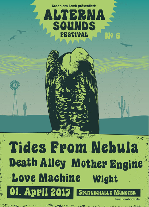 Bereits zum 6. mal findet das Alterna Sounds Festival am 1.4.2017 statt. 5 Bands werden in der Sputnikhalle in Münster aufspielen.