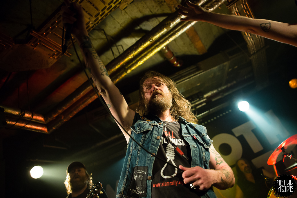 Riff Fist. Schmuddeliger Blues Rock mit einem quasi Sprechgesang. Nicht ganz: Es ist, als würde er die Worte und Sätze ins Publikum werfen. Erinnerte mich am Abend an die frühen Bolt Thrower und in der Retrospektive an Moustache. Meine Büroarbeit bedingten Verspannungen wurden unweigerlich weggetanzt. Ich bin mir nicht ganz sicher, ob der Schlagzeuger enthusiastisch war, oder sauer: Er bearbeitete das Schlagzeug barfüßig dermassen, dass er nach jedem Song schieben und schrauben musste, damit es wieder bespielbar war. GRANDIOS! Ich saß später noch mit dem Sänger auf ein Bier zusammen und wir verständigten uns darauf, uns nicht verständigen zu können und tauschten die gegenseitige Sympathie mit einem "Skoll" aus. Auch das ist Völkerverständigung.