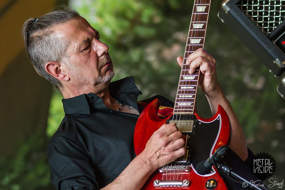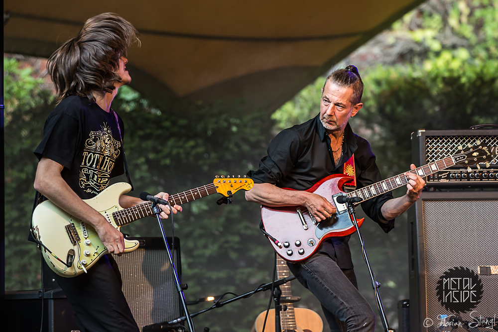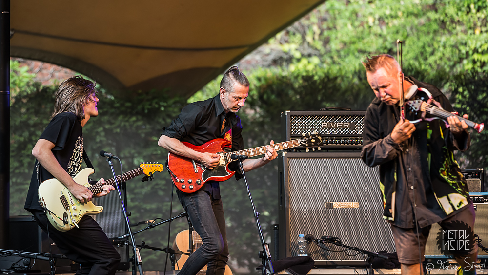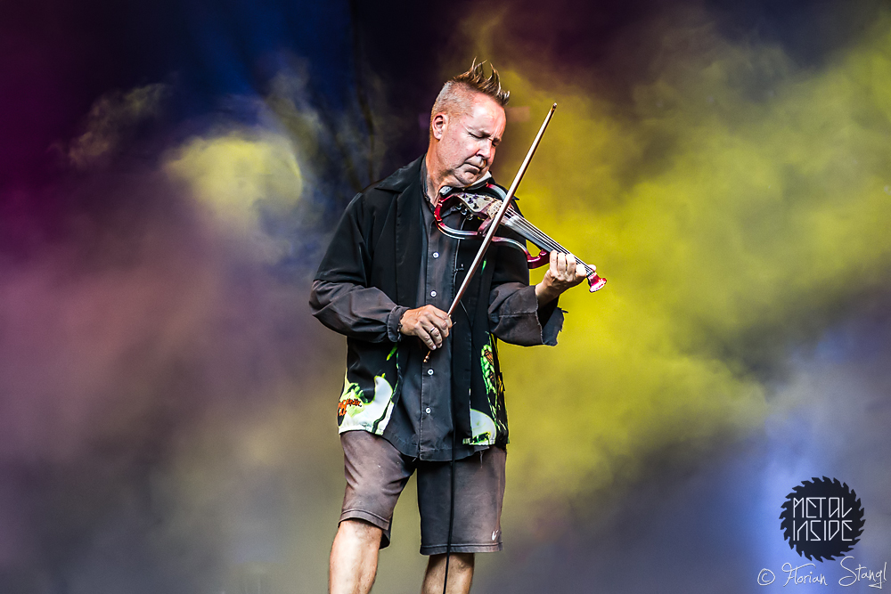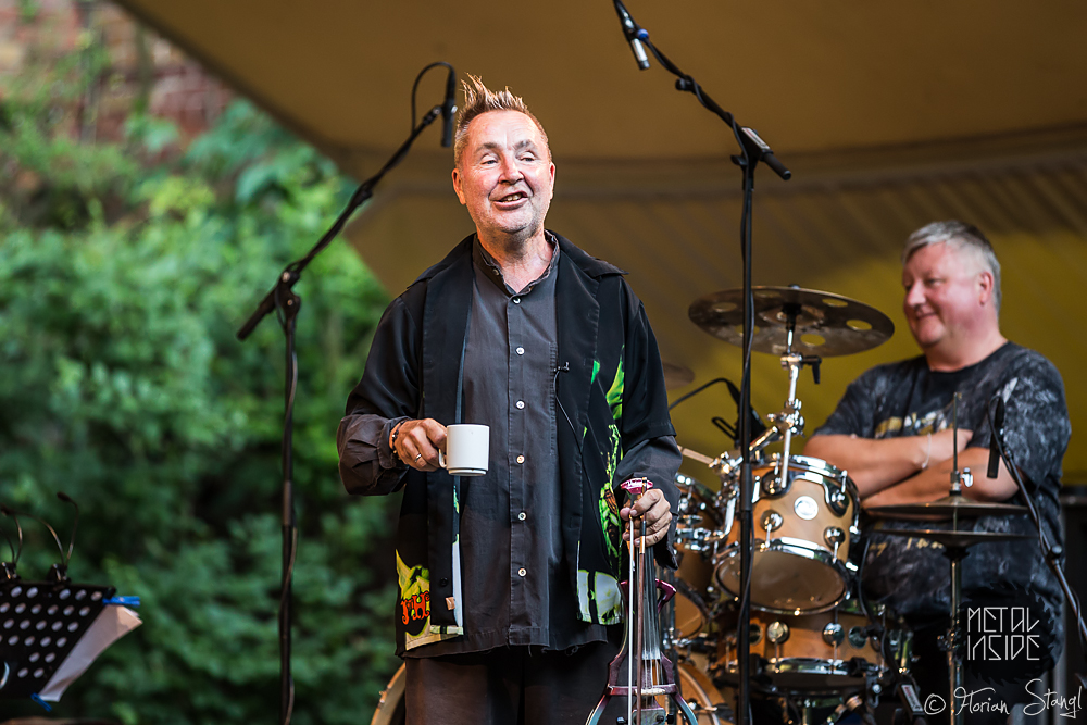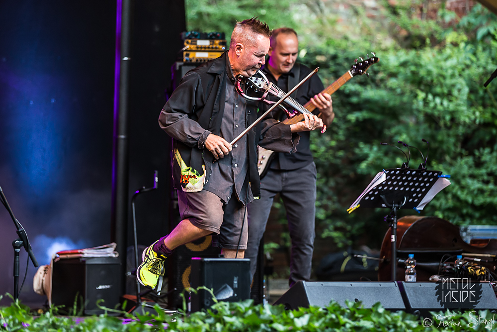 Bevor es in Nürnberg losgehen konnte, ließ sich der Meister aber etwas Zeit – kein Wunder, sein Publikum lümmelte größtenteils am Biertresen ab, was bei über 30 Grad nachvollziehbar war. Ganz voll wurde der Serennadenhof leider nicht. Als NIGEL KENNEDY schließlich die Bühne betrat, wirkte er wie ein kleiner Junge, der weiß, dass er gleich jede Menge Spaß haben wird. Witzchen über sich und seine Mitmusiker lockerten die Atmosphäre auf, bevor es dann langsam in Richtung JIMI HENDRIX ging. NIGEL KENNEDY covert nicht einfach die Klassiker des viel zu früh verstorbenen Gitarristen. Er hat sie für sich neu arrangiert und bearbeitet, nutzte die Harmonien für ausgiebige Improvisationen und ließ auch den beiden Gitarristen genügend Luft, um ihr Können unter Beweis zu stellen. Ekstatische Jubelstürme löste er damit nicht aus, vielmehr ist es wohlwollender bis begeisterter Applaus. NIGEL KENNEDY scheint das eh egal zu sein, es ist SEIN Abend. Er spielt hier für sich, mit seiner Band, ER hat Spaß, versinkt in den Songs. Ein Virtuose mit Attitüde, kein sich anbiedernder Möchtegernkönner. JIMI HENDRIX hätte es sicher gefallen.