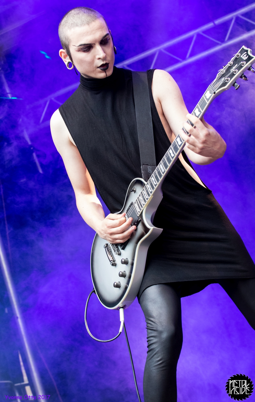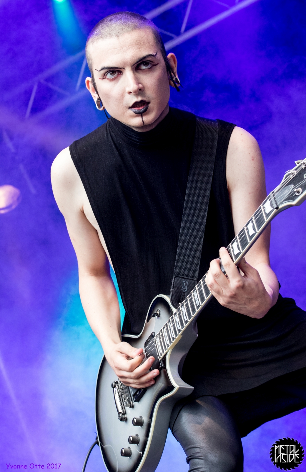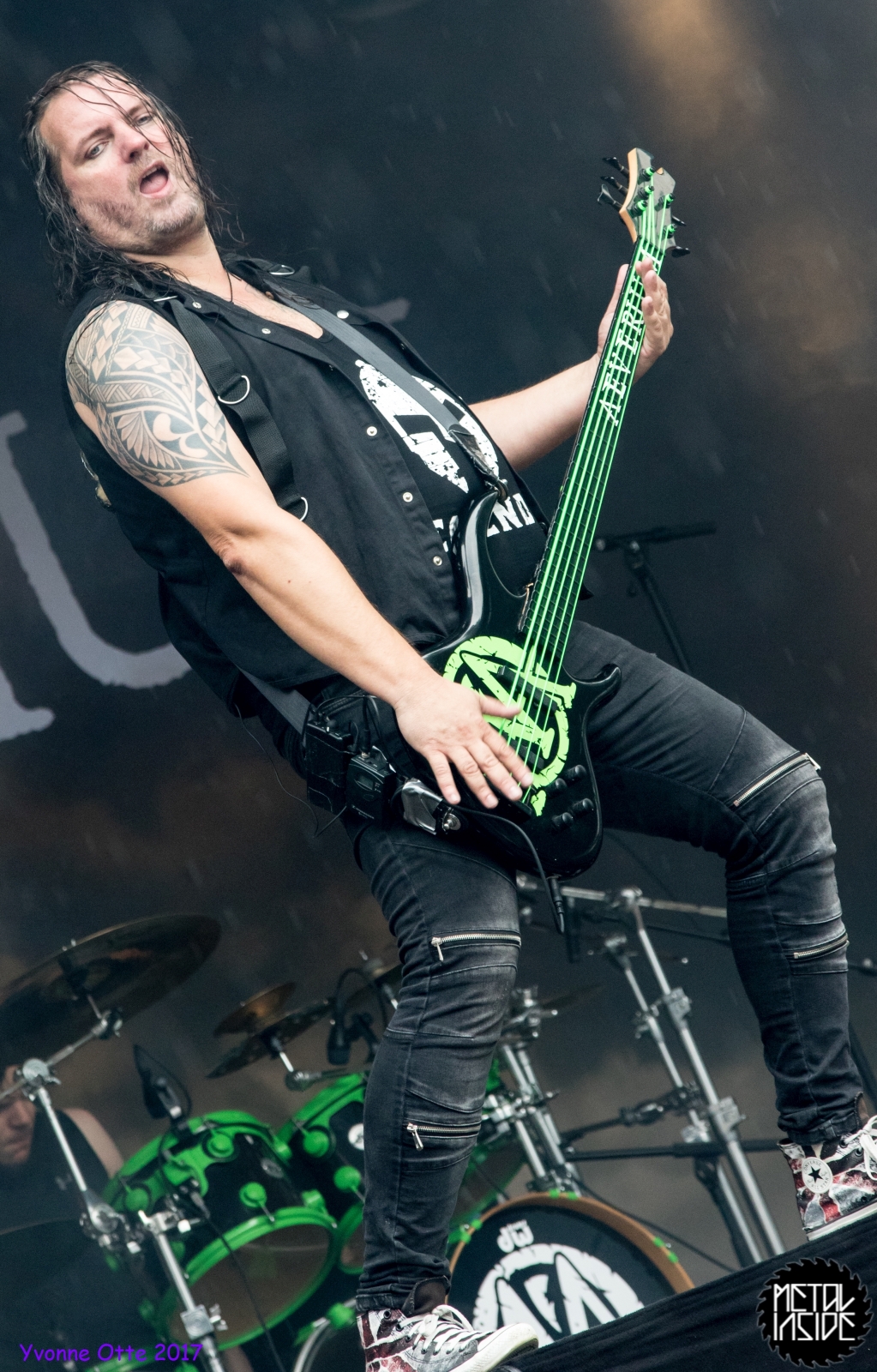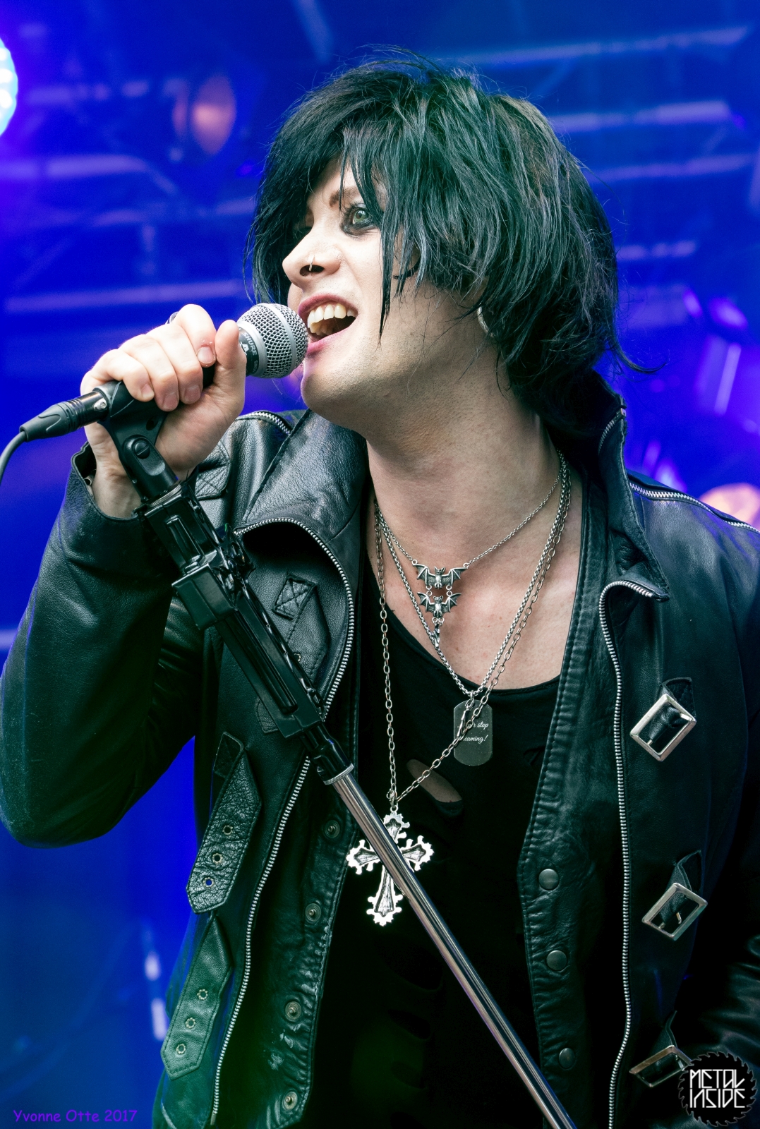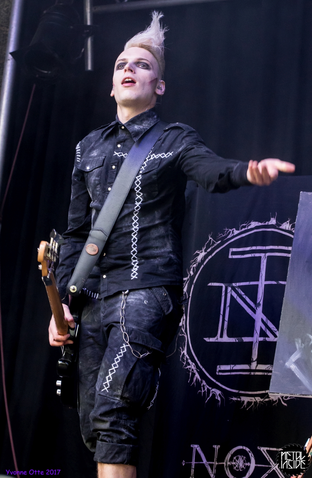 Wer bereits zu NOX INTERNA Vorort war, hat dann einiges zu sehen bekommen. NOX INTERNA bietet eine Bühnenshow, die man gesehen haben muss, denn in Worte zu fassen, was man da zu sehen bekommt, würde der Show nicht gerecht werden. Großes Kino jedenfalls und ein echter Stimmungsmacher. Hier muss man auch sagen, dass diese Band sicherlich von der Stimmung her besser nach ERDLING platziert gewesen wäre, weil bei NOX INTERNA das Publikum kein Halten mehr kannte und bei ERDLING eher leider etwas verhaltener war. Klar, andere Art von Musik und schlechteres Wetter, dennoch war ERDLING ein wenig Stimmungskiller und es fiel sichtlich schwer Stimmung aufzubauen. Neue Deutsche Härte ist nicht für jeden etwas. Aber ist ja das Schöne an Festivals: Man lernt viel neue Musik kennen, nicht jedes muss man mögen, aber allen Künstlern sollte man Respekt für deren Arbeit entgegen bringen. Manche funktionieren von der Stimmung her einfach besser auf Festivals, andere haben dann die Megastimmung bei den eigenen Konzerten. Von der Stimmung her hier hätte es einfach besser gepasst, wenn NOX INTERNA und ERDLING getauscht hätte, denn mit VLAD IN TEARS kamen wieder Stimmungskanonen auf die Bühne. Leider fing es hier stärker an zu regnen, umso sympathischer, dass Sänger Kris sich in den Regen gestellt hat: geteiltes Leid ist halbes Leid! Einen neuen Gitarristen hatten VLAD IN TEARS auch mit dabei, der aber sehr gut von den Fans aufgenommen wurde und sichtlich Spaß beim Auftritt hatte.