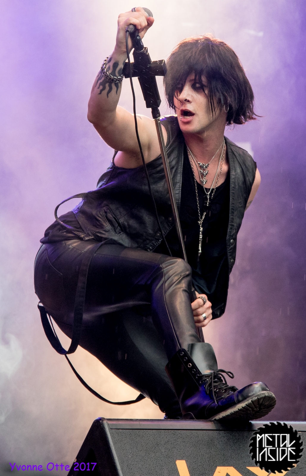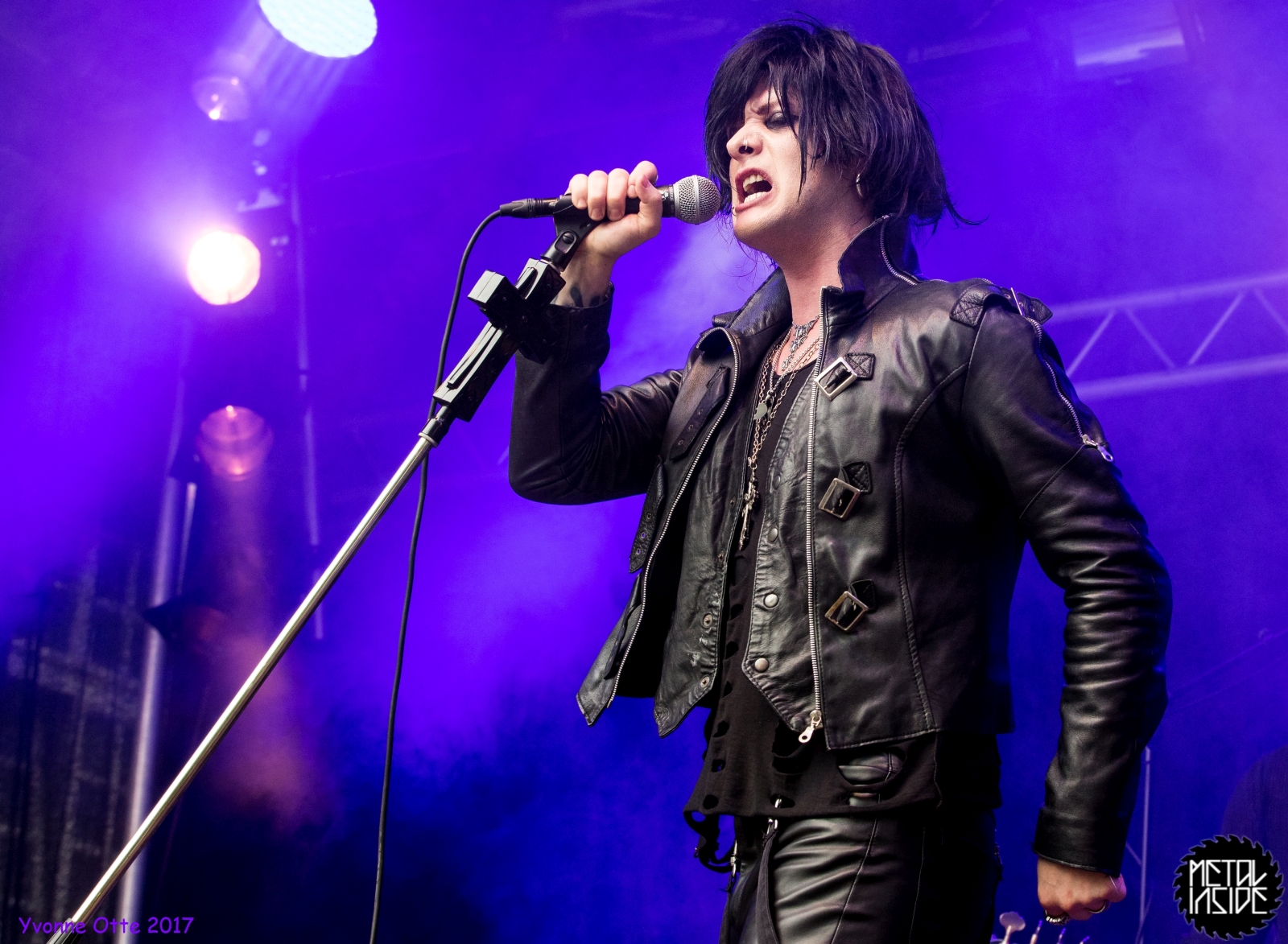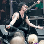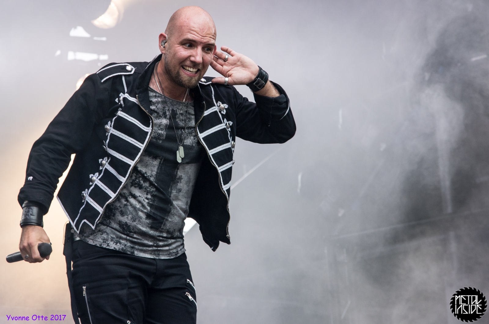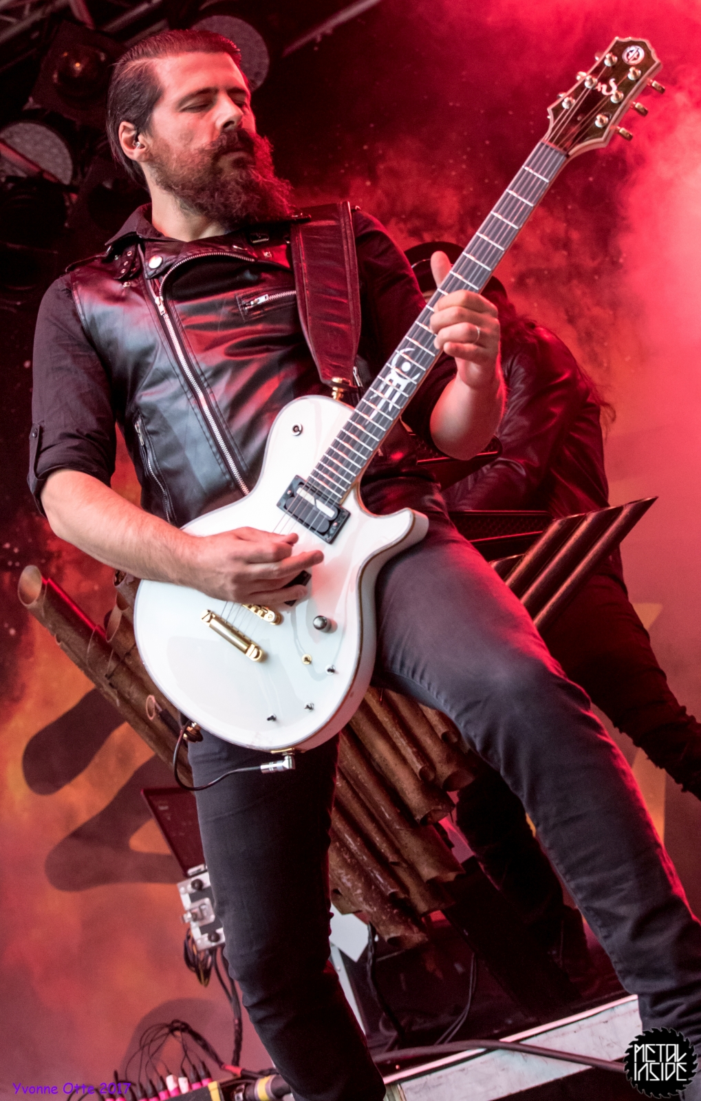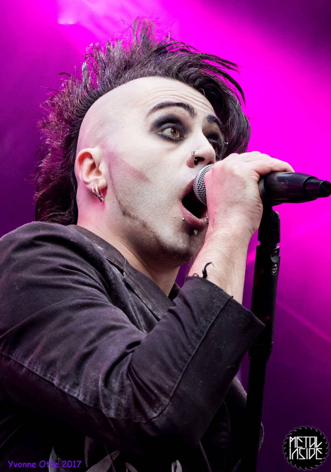 Wer bereits zu NOX INTERNA Vorort war, hat dann einiges zu sehen bekommen. NOX INTERNA bietet eine Bühnenshow, die man gesehen haben muss, denn in Worte zu fassen, was man da zu sehen bekommt, würde der Show nicht gerecht werden. Großes Kino jedenfalls und ein echter Stimmungsmacher. Hier muss man auch sagen, dass diese Band sicherlich von der Stimmung her besser nach ERDLING platziert gewesen wäre, weil bei NOX INTERNA das Publikum kein Halten mehr kannte und bei ERDLING eher leider etwas verhaltener war. Klar, andere Art von Musik und schlechteres Wetter, dennoch war ERDLING ein wenig Stimmungskiller und es fiel sichtlich schwer Stimmung aufzubauen. Neue Deutsche Härte ist nicht für jeden etwas. Aber ist ja das Schöne an Festivals: Man lernt viel neue Musik kennen, nicht jedes muss man mögen, aber allen Künstlern sollte man Respekt für deren Arbeit entgegen bringen. Manche funktionieren von der Stimmung her einfach besser auf Festivals, andere haben dann die Megastimmung bei den eigenen Konzerten. Von der Stimmung her hier hätte es einfach besser gepasst, wenn NOX INTERNA und ERDLING getauscht hätte, denn mit VLAD IN TEARS kamen wieder Stimmungskanonen auf die Bühne. Leider fing es hier stärker an zu regnen, umso sympathischer, dass Sänger Kris sich in den Regen gestellt hat: geteiltes Leid ist halbes Leid! Einen neuen Gitarristen hatten VLAD IN TEARS auch mit dabei, der aber sehr gut von den Fans aufgenommen wurde und sichtlich Spaß beim Auftritt hatte.