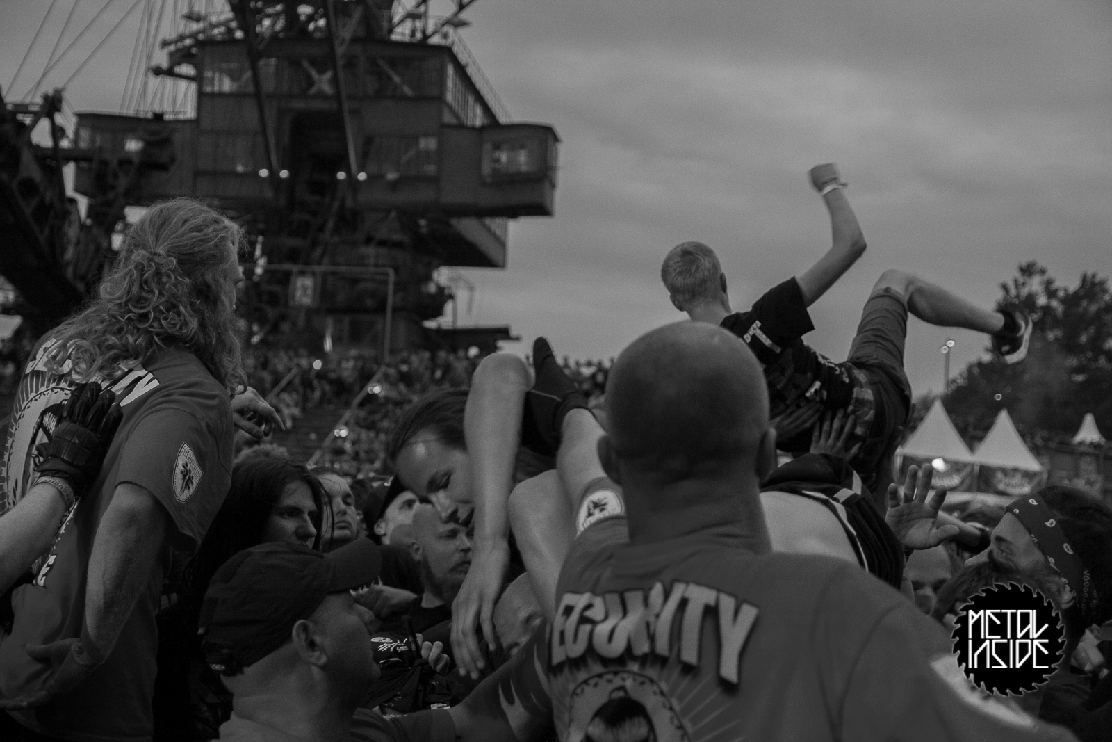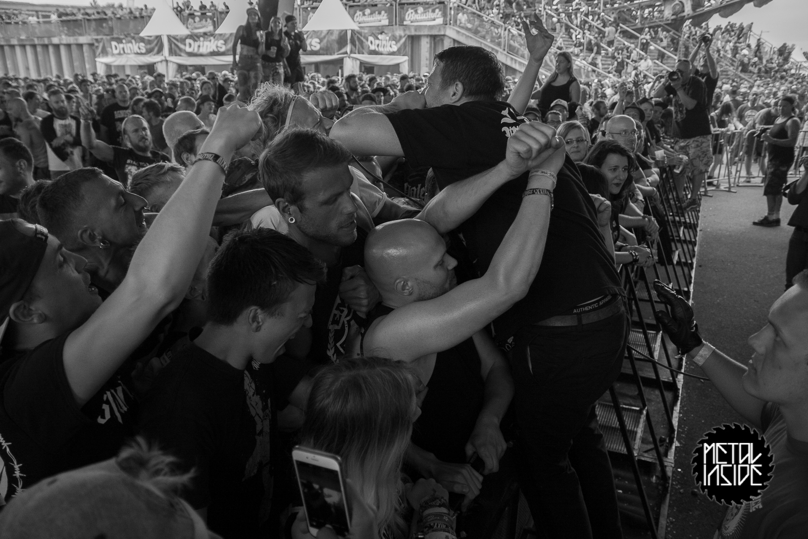 Was dann bei TERROR auf der Main Stage abging, war unfassbar. Scott Vogel - schlank, fit, entgiftet - und seine Jungs hatten mega Bock auf die Show und legten unfassbar intensiv los, was sich sofort auf das Publikum übertrug. Crowdsurfer im Dutzend kamen in den Graben und mit zunehmender Dauer des Sets wurden es mehr und mehr. Die Band ließ zu keiner Sekunde ihres Sets nach, feuerte Hit um Hit raus und machte deutlich, dass sie locker totalen Abriss liefern können. Das war eine ganz, ganz große Show!