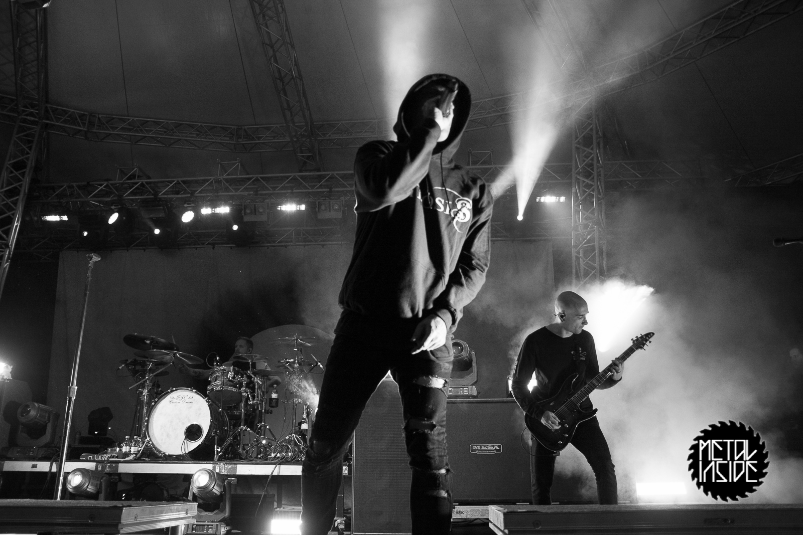 NORTHLANE haben mit "Mesmer" ein sehr interessantes neues Album veröffentlicht, mit dem sie endgültig ihren Anspruch und ihr Selbstbild als Künstler definieren. Beides hat mit Standard-Metalcore nicht mehr viel zu tun. Das würde bei ihrem Gig in der Hardbowl deutlich: NORTHLANE waren der Exot, die verkopften Künstler und unterstrichen dies mit Outfit, Stageacting und nicht zuletzt mit ihren Songs. Trotz dieser Ausgangssituation war das Zelt gerappelt voll und wurde die Band hart gefeiert. Die "Mesmer"-Songs kamen live gut an, wirkten dabei so einen Ticken härter als erwartet.