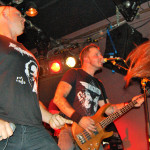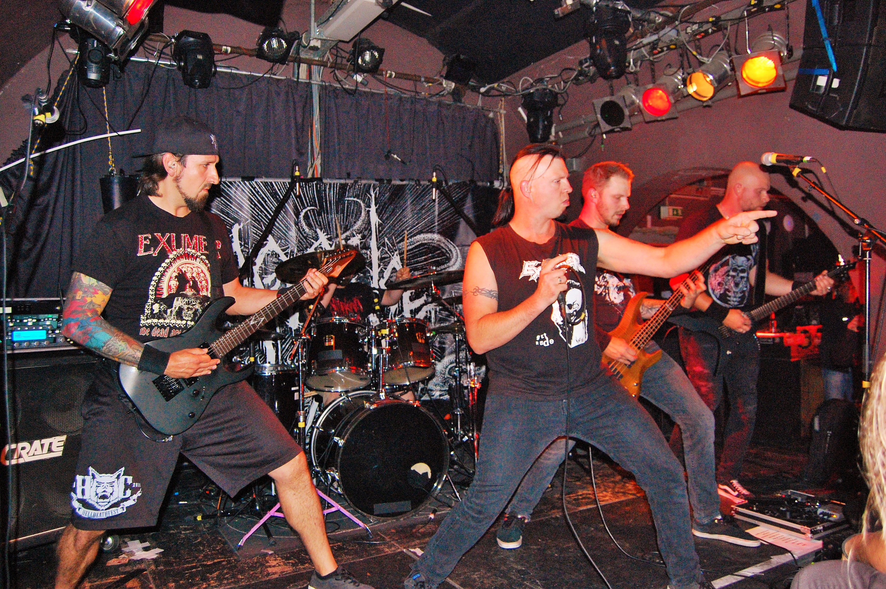 Wenn die denkst, es geht nicht mehr, kommt irgendwo ein Engel her: In Gestalt von AGE OF WOE. Die Göteborger begrüßen Hamburg herzlich und kündigen tanzbaren Death Metal an – und treffen damit den rostigen Nagel voll auffe Birne. Eine knappe Stunde entführen sie auch die schüchterne Blonde neben uns in andere Sphären. Stark, wie Sänger Sonny für Fan-Band-Bindung sorgt – ehrlicher kann ein Fronter nicht wirken. Dazu der vollkommen irre angezogene Carlos an der Gitarre – in orientalischem Mäntelchen und Hausschuhen fiedelt er mittels feinster Melodien so viel Gänsehaut auf die Ärmchen, dass sich wildfremde Menschen in die Arme fallen. Ob neue Songs von „An Ill Wind Blowing“ Opener „Voices of the Unleashed“, „Bad Blood“, Heavy Clouds“, „Ill Winds“) oder ältere von „Inhumanform“ („Like Embers“, „Red Eyes“, „Black Rain“) und ein ganz altes – „No Remorse“ von der 2011er-Premieren-EP – alles, wirklich alles stimmt an diesem Abend bei AGE OF WOE. Der Crusty-Hammer! Wie das Bambi – und wie der gesamte Abend irgendwie auch.