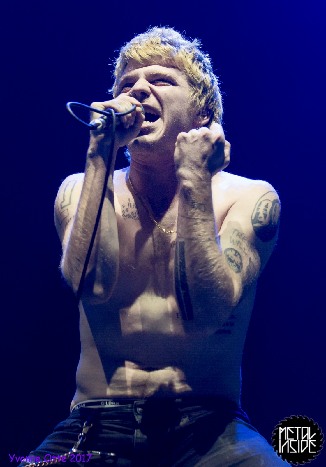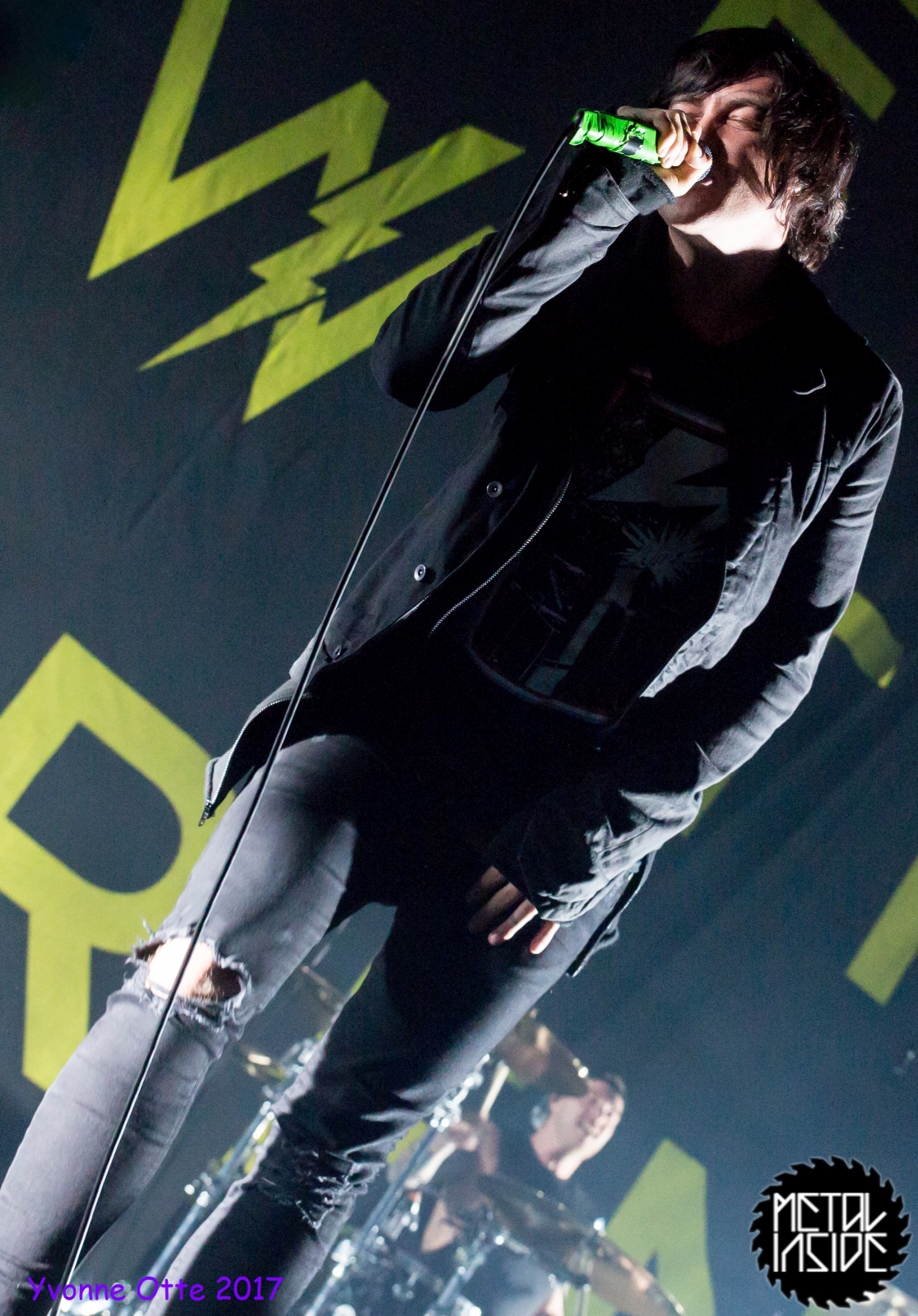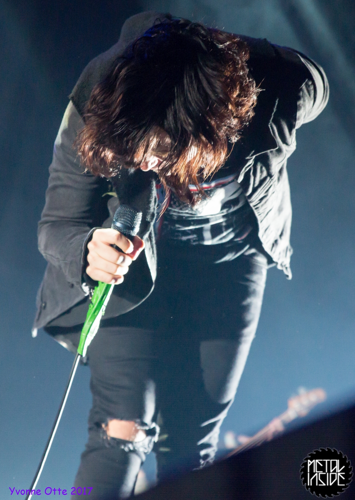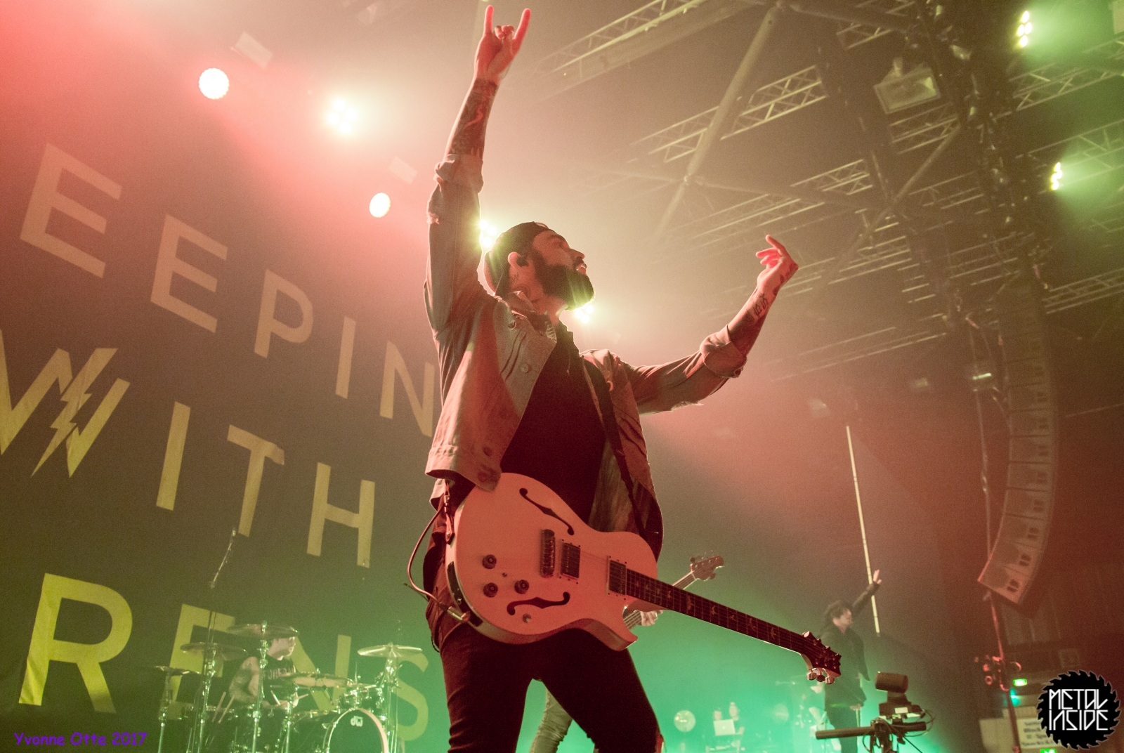 Danach wurde es aber laut, noch voller und energiegeladen. Sobald SLEEPING WITH SIRENS auf der Bühne waren, gab es für das Publikum kein Halt mehr (Kreischkonzert der Mädels inklusive). Besonders schön wahrscheinlich für das Mädchen in der ersten Reihe, als Sänger Kellinn Quinn die Zeichnungen, die sie ihn und der Band schenken wollte, angenommen hat. Das hat für alle ein sehr intensiver und herzlicher Moment, der vielen im Gedächtnis bleiben wird. Grundsätzlich geht diese Band ziemlich ab. Dabei bleibt sie sehr sympathisch und auch als nicht Fan macht es Spaß das Konzert zu beobachten. Toller Sound auch an diesem Abend. Außerdem eine Songauswahl, die sehr gut beim Publikum angekommen ist. SLEEPING WITH SIRENS durften etwas länger als PEARS spielen, aber für die Fans wohl immer noch zu kurz. Es folgte ein kurzer Umbau, damit RISE AGAINST endlich auf die Bühne konnten.