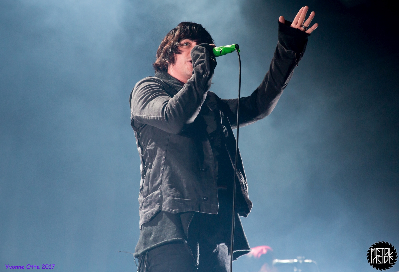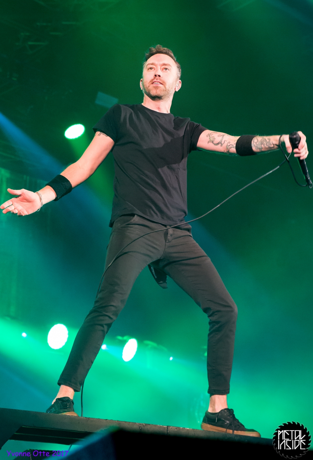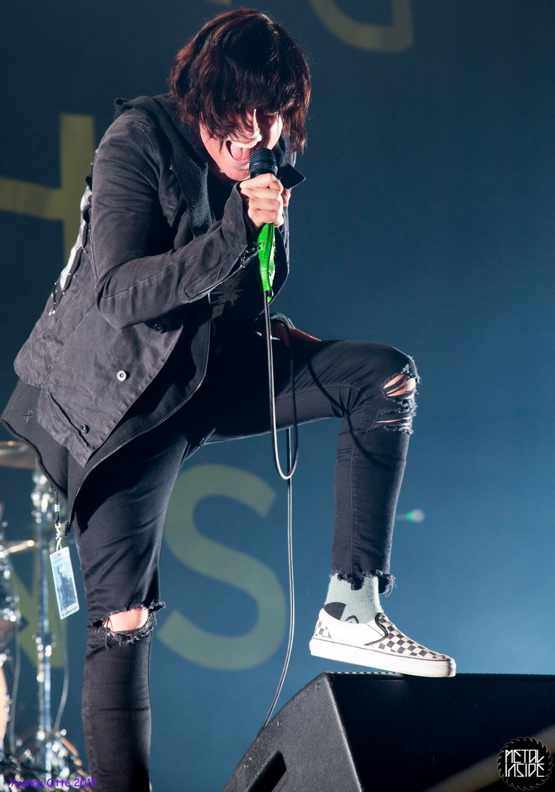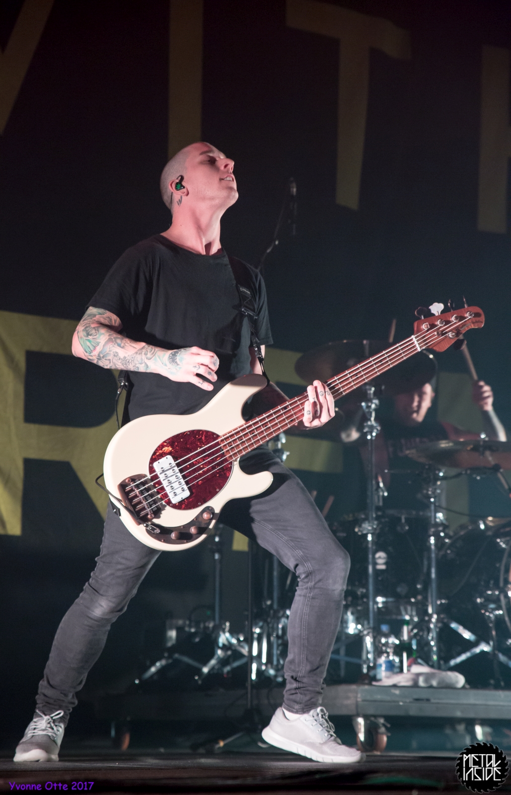 Danach wurde es aber laut, noch voller und energiegeladen. Sobald SLEEPING WITH SIRENS auf der Bühne waren, gab es für das Publikum kein Halt mehr (Kreischkonzert der Mädels inklusive). Besonders schön wahrscheinlich für das Mädchen in der ersten Reihe, als Sänger Kellinn Quinn die Zeichnungen, die sie ihn und der Band schenken wollte, angenommen hat. Das hat für alle ein sehr intensiver und herzlicher Moment, der vielen im Gedächtnis bleiben wird. Grundsätzlich geht diese Band ziemlich ab. Dabei bleibt sie sehr sympathisch und auch als nicht Fan macht es Spaß das Konzert zu beobachten. Toller Sound auch an diesem Abend. Außerdem eine Songauswahl, die sehr gut beim Publikum angekommen ist. SLEEPING WITH SIRENS durften etwas länger als PEARS spielen, aber für die Fans wohl immer noch zu kurz. Es folgte ein kurzer Umbau, damit RISE AGAINST endlich auf die Bühne konnten.