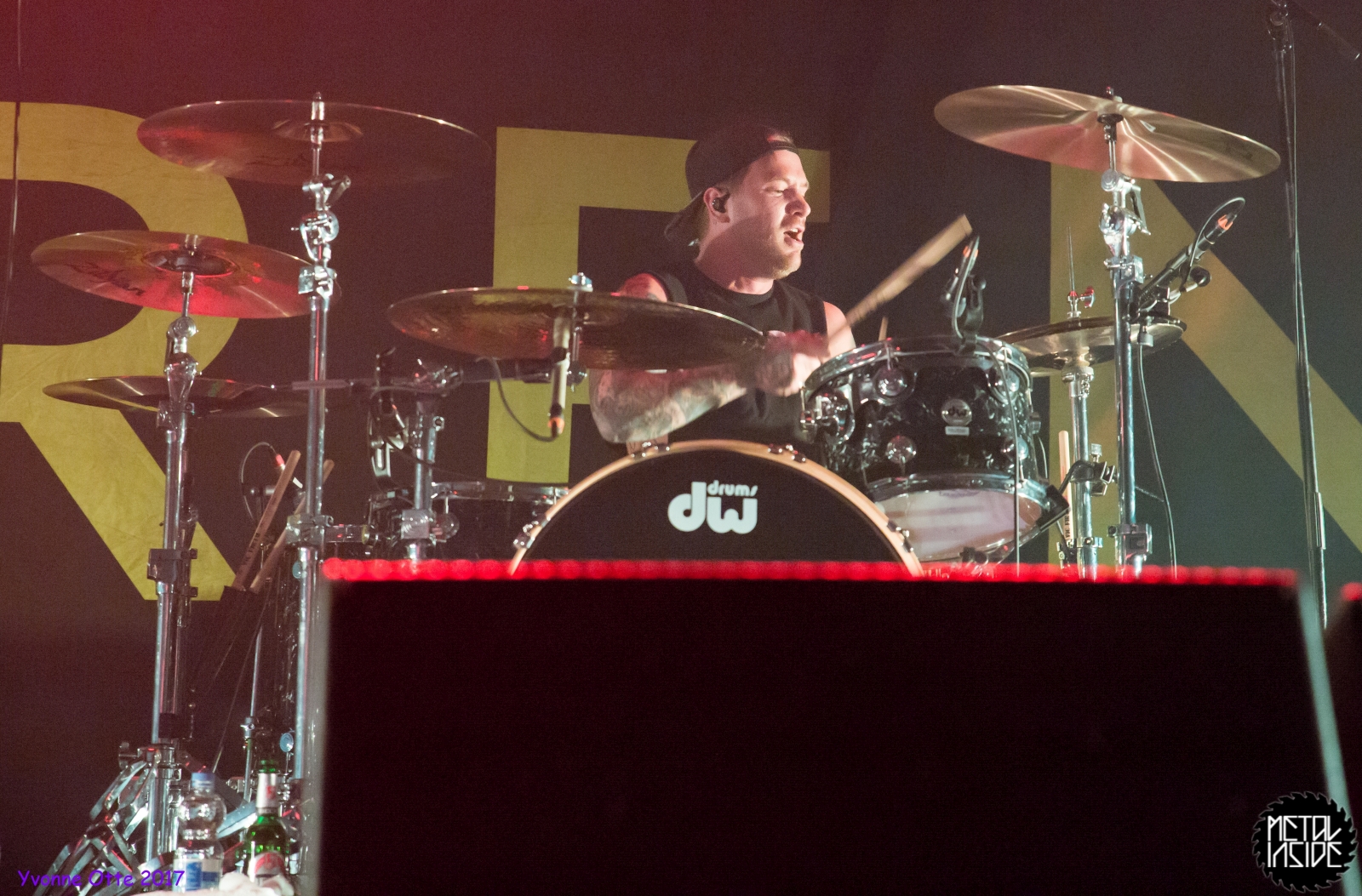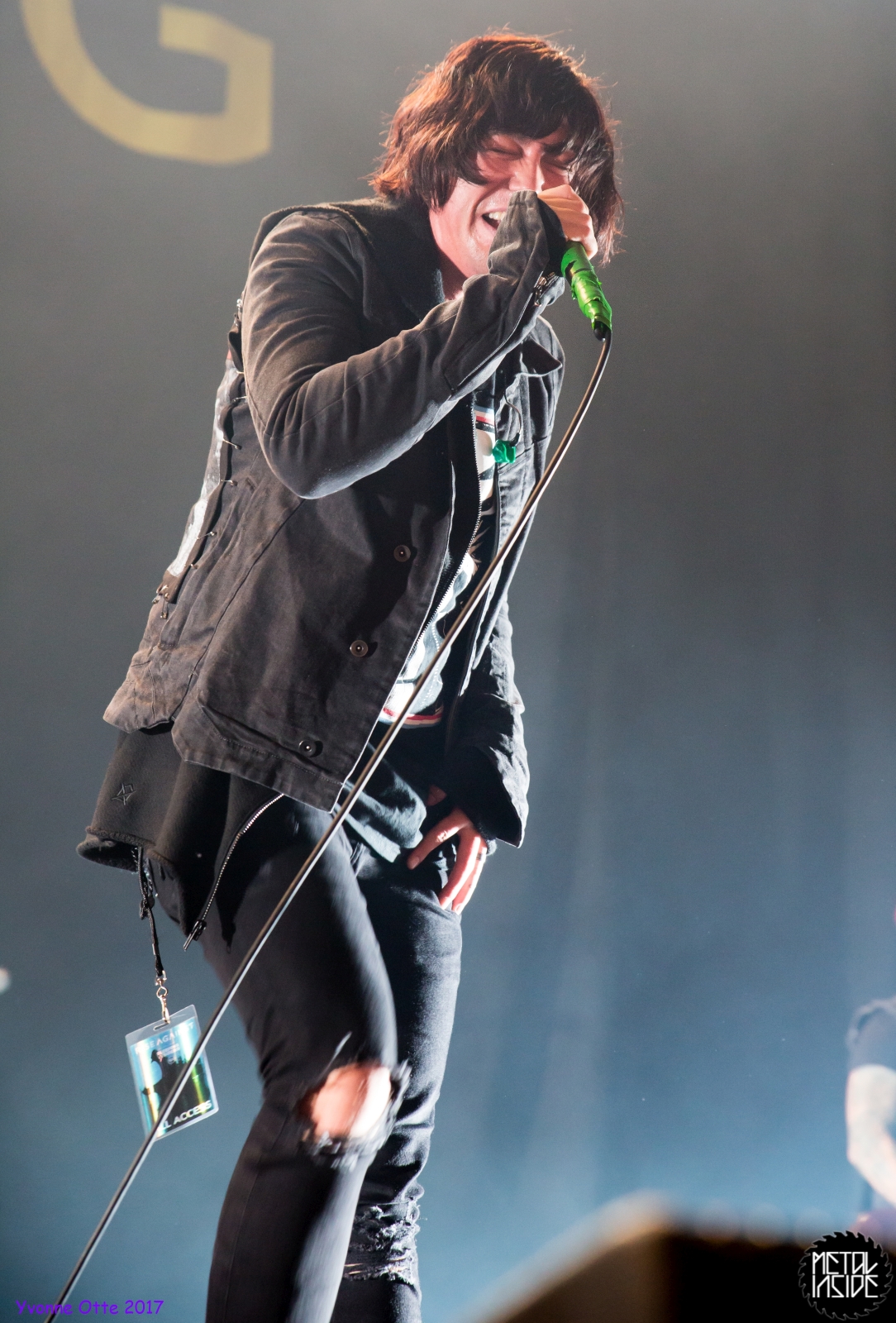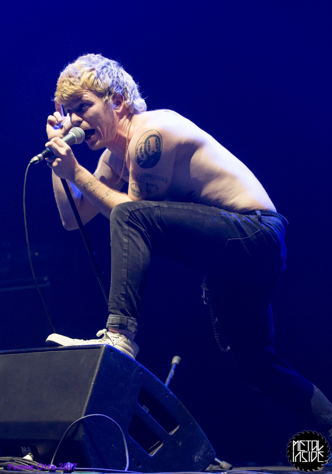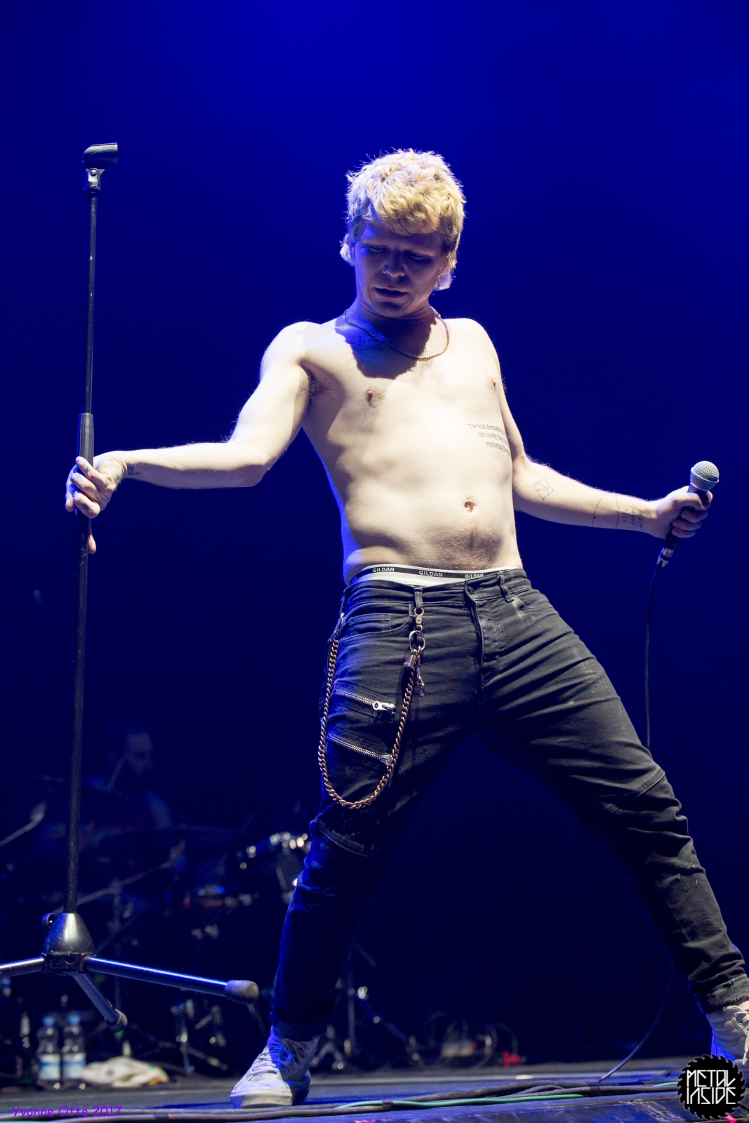 Danach wurde es aber laut, noch voller und energiegeladen. Sobald SLEEPING WITH SIRENS auf der Bühne waren, gab es für das Publikum kein Halt mehr (Kreischkonzert der Mädels inklusive). Besonders schön wahrscheinlich für das Mädchen in der ersten Reihe, als Sänger Kellinn Quinn die Zeichnungen, die sie ihn und der Band schenken wollte, angenommen hat. Das hat für alle ein sehr intensiver und herzlicher Moment, der vielen im Gedächtnis bleiben wird. Grundsätzlich geht diese Band ziemlich ab. Dabei bleibt sie sehr sympathisch und auch als nicht Fan macht es Spaß das Konzert zu beobachten. Toller Sound auch an diesem Abend. Außerdem eine Songauswahl, die sehr gut beim Publikum angekommen ist. SLEEPING WITH SIRENS durften etwas länger als PEARS spielen, aber für die Fans wohl immer noch zu kurz. Es folgte ein kurzer Umbau, damit RISE AGAINST endlich auf die Bühne konnten.