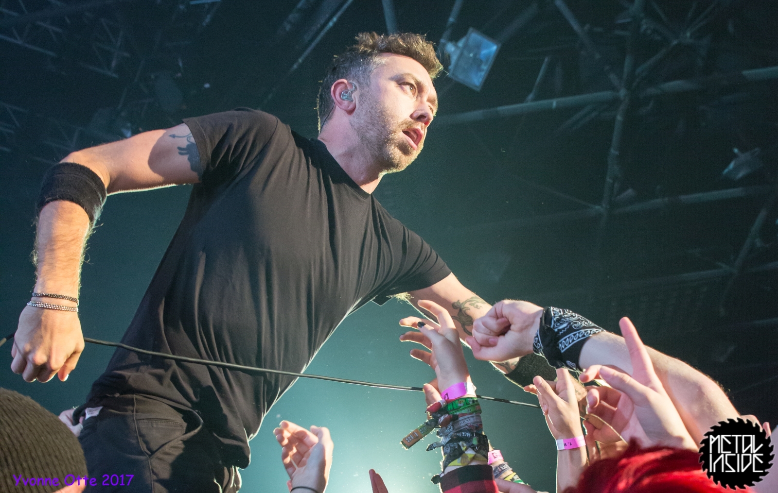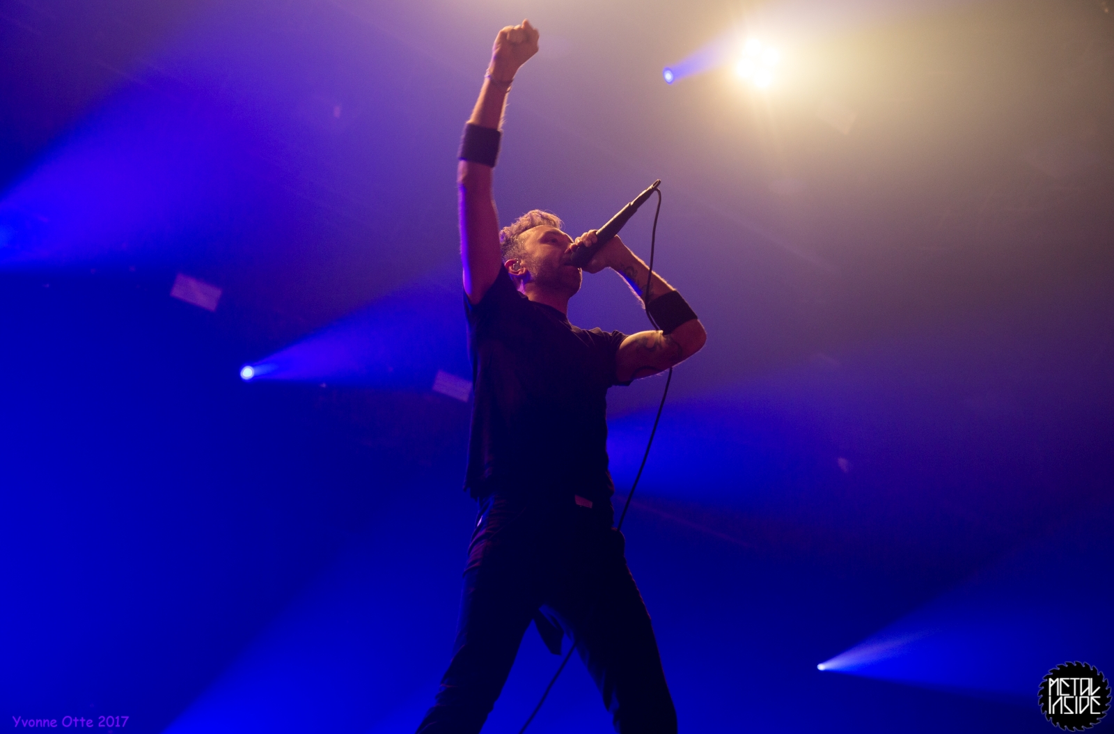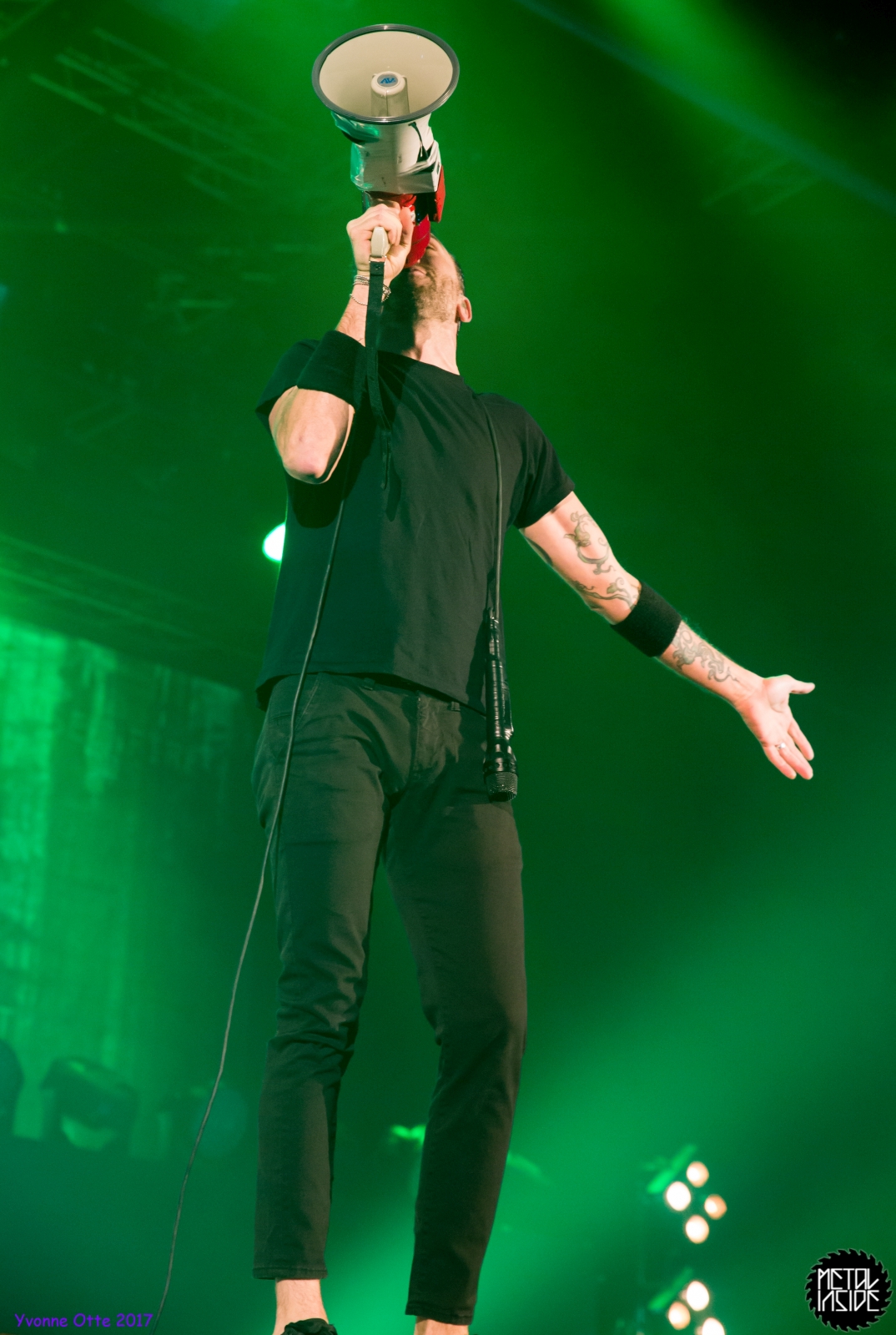 An dieser Stelle sollte jetzt eigentlich der gewohnt ausführliche Bericht zum Konzert von RISE AGAINST folgen. Leider war es nicht möglich mit der Security eine für alle Fotografen und für die Security angenehme und kompromissbereite Lösung zu finden, was mit dem Kameraequipment geschieht. Eine Unterbringung in der Halle war nicht möglich, das Parkhaus in zwei Kilometer Entfernung und eine Vorabinfo vom Veranstalter, dass wir so früh kommen sollen, dass man noch einen Platz auf den anliegen Parkplätzen bekommt, gab es nicht. Sicherlich nicht Ideal gelaufen. Aufgrund der Nähe zur Halle mit drei Kilometern hab ich meine Sachen Heim gebracht (ich war mit dem Fahrrad) und bin dann zurück. Mehr als sieben Songs konnte ich allerdings leider trotzdem am Ende nicht mitbekommen. Diese minderwertige Berichterstattung möchten ich im Namen von Metal Inside an dieser Stelle entschuldigen. Was man erwähnen kann, ist, dass die Stimmung kaum noch zu toppen war. Bei jeden Song wurde lauthals mitgesungen. Sehr schön war auch, dass immer mehr Konzerte in dieser Halle mit Videoleinwände stattfinden, wo auch im hinteren Bereich noch gut zu sehen ist, was überhaupt auf der Bühne stattfindet. Ein Highlight für die Leute in den vorderen Reihen ist natürlich immer, wenn jemand aus der Band zum Absperrgitter kommt. Sänger Tim McIlrath hat dies, soweit mitbekommen, zumindest einmal gemacht und so für viel Freude bei den Fans gesorgt. Sehr sympathisch diese Band. In der Mitte des Konzertes gab es ein Akustikset, was allen ein bisschen Zeit zum Verschnaufen gebracht hat, damit es danach so nochmal so richtig krachen konnte. Ich bin zum Ende des Akustiksets wieder in die Halle gekommen. Besonders bei der Zugabe gab es für alle Anwesenden kein Halt mehr. Man wird mitgezogen, ob man will oder nicht. Wirklich einmalige Stimmung! Leider ging aber auch dieses Konzert zu Ende. Nach 19 Songs, viel Schweiß und viel Gehüpfe war auch hier Schluss. Nicht zu vergessen aber noch die Ansage von Tim, dass Homophobie, Hass und Diskriminierung im Ganzen nicht akzeptable ist und man dagegen angehen muss.