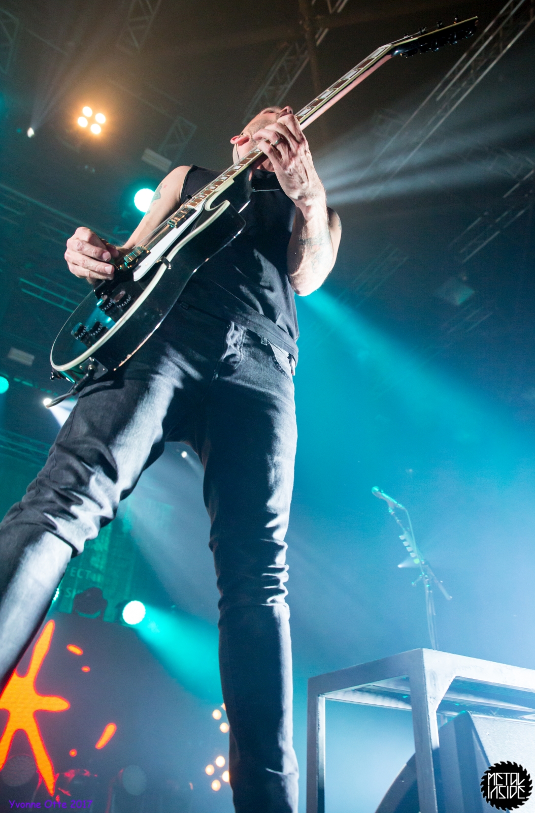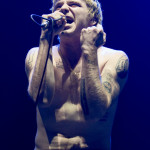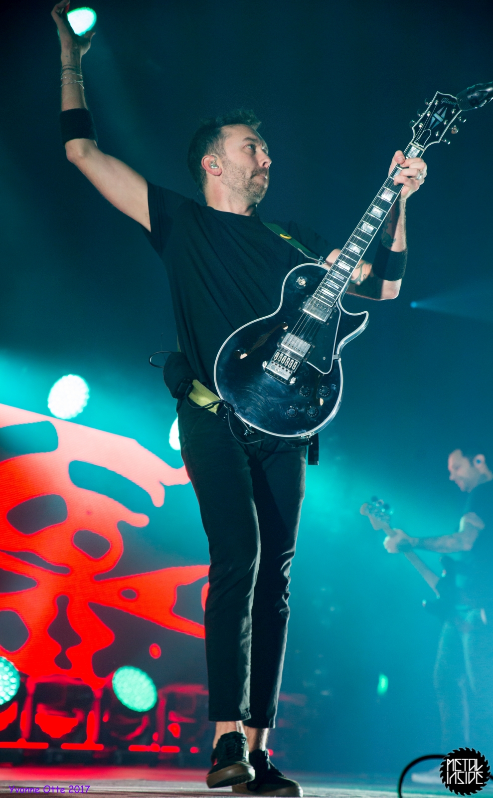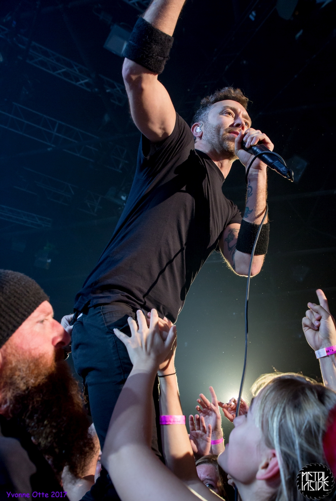 An dieser Stelle sollte jetzt eigentlich der gewohnt ausführliche Bericht zum Konzert von RISE AGAINST folgen. Leider war es nicht möglich mit der Security eine für alle Fotografen und für die Security angenehme und kompromissbereite Lösung zu finden, was mit dem Kameraequipment geschieht. Eine Unterbringung in der Halle war nicht möglich, das Parkhaus in zwei Kilometer Entfernung und eine Vorabinfo vom Veranstalter, dass wir so früh kommen sollen, dass man noch einen Platz auf den anliegen Parkplätzen bekommt, gab es nicht. Sicherlich nicht Ideal gelaufen. Aufgrund der Nähe zur Halle mit drei Kilometern hab ich meine Sachen Heim gebracht (ich war mit dem Fahrrad) und bin dann zurück. Mehr als sieben Songs konnte ich allerdings leider trotzdem am Ende nicht mitbekommen. Diese minderwertige Berichterstattung möchten ich im Namen von Metal Inside an dieser Stelle entschuldigen. Was man erwähnen kann, ist, dass die Stimmung kaum noch zu toppen war. Bei jeden Song wurde lauthals mitgesungen. Sehr schön war auch, dass immer mehr Konzerte in dieser Halle mit Videoleinwände stattfinden, wo auch im hinteren Bereich noch gut zu sehen ist, was überhaupt auf der Bühne stattfindet. Ein Highlight für die Leute in den vorderen Reihen ist natürlich immer, wenn jemand aus der Band zum Absperrgitter kommt. Sänger Tim McIlrath hat dies, soweit mitbekommen, zumindest einmal gemacht und so für viel Freude bei den Fans gesorgt. Sehr sympathisch diese Band. In der Mitte des Konzertes gab es ein Akustikset, was allen ein bisschen Zeit zum Verschnaufen gebracht hat, damit es danach so nochmal so richtig krachen konnte. Ich bin zum Ende des Akustiksets wieder in die Halle gekommen. Besonders bei der Zugabe gab es für alle Anwesenden kein Halt mehr. Man wird mitgezogen, ob man will oder nicht. Wirklich einmalige Stimmung! Leider ging aber auch dieses Konzert zu Ende. Nach 19 Songs, viel Schweiß und viel Gehüpfe war auch hier Schluss. Nicht zu vergessen aber noch die Ansage von Tim, dass Homophobie, Hass und Diskriminierung im Ganzen nicht akzeptable ist und man dagegen angehen muss.