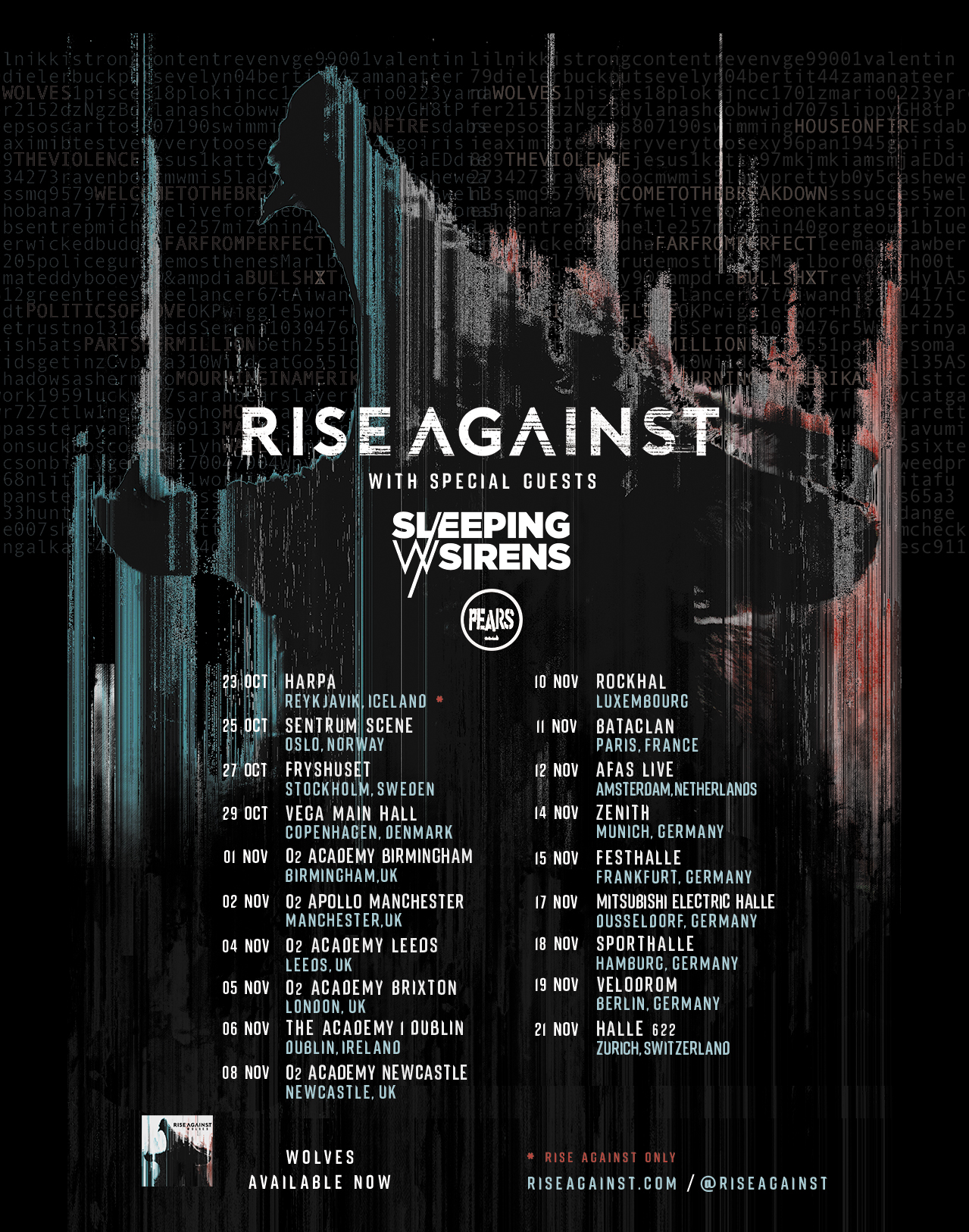 Lange vor Tourstart waren die meisten Termine der „Wolves“-Tour bereits ausverkauft. Kein Wunder, denn RISE AGAINST überzeugen auf allen Ebenen und haben sich in den letzten Jahren in die Herzen der Fans gespielt. Als Support hatten sie dieses Mal die noch recht unbekannte Band PEARS und die sehr gehypte Band SLEEPING WITH SIRENS dabei, was wohl auch einen Teil dazu beigetragen hat, dass diese Tour so schnell ausverkauft war.