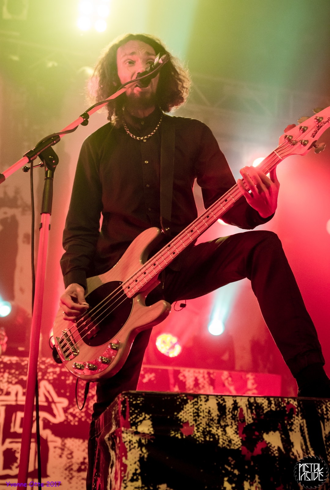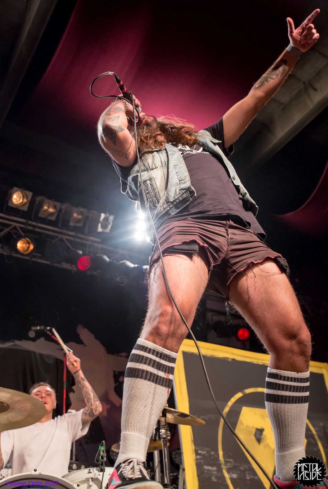 Danach wurde es dunkel und VITJA durften auf die Bühne. Immer noch recht für am Abend, aber nun waren auch die letzten Besucher eingetroffen und die Live Music Hall war so richtig voll. VITJA machen Musik, die man nicht einfach in ein Genre packen kann. Was man sagen kann, ist allerdings, dass VITJA Stimmung machen und auf der Bühne alles geben. Noch keine drei Songs vorbei und schon wurde zu Crowdsurfing aufgerufen und das hat die Menge sich natürlich nicht zweimal sagen lassen und Menschen wurden durch den Saal nach vorne getragen. Harter Job für die Security bei solchen Konzerten, die einen großartigen Job gemacht hat. In anderen Ländern ist Crowdsurfing verboten und in der Halle hängen überall Schilder über den Verbot. Hier ist es noch erlaubt, dennoch sollte man immer etwas Rücksicht nehmen. Die Menge hatte sichtlich Spaß und hat die Show von VITJA sehr genossen. VITJA durften etwas länger als GRIZZLY spielen, aber aufgrund der Party nach dem Konzert musste auch hier zeitig aufgehört werden, damit der Umbau fix über die Bühne gehen konnte.