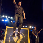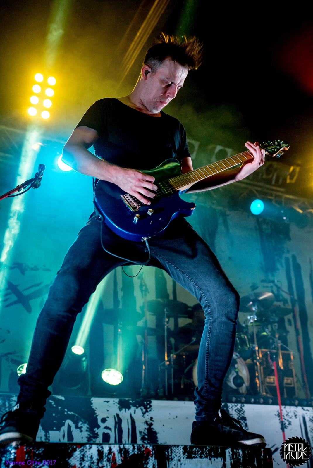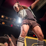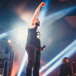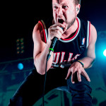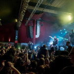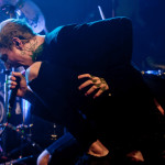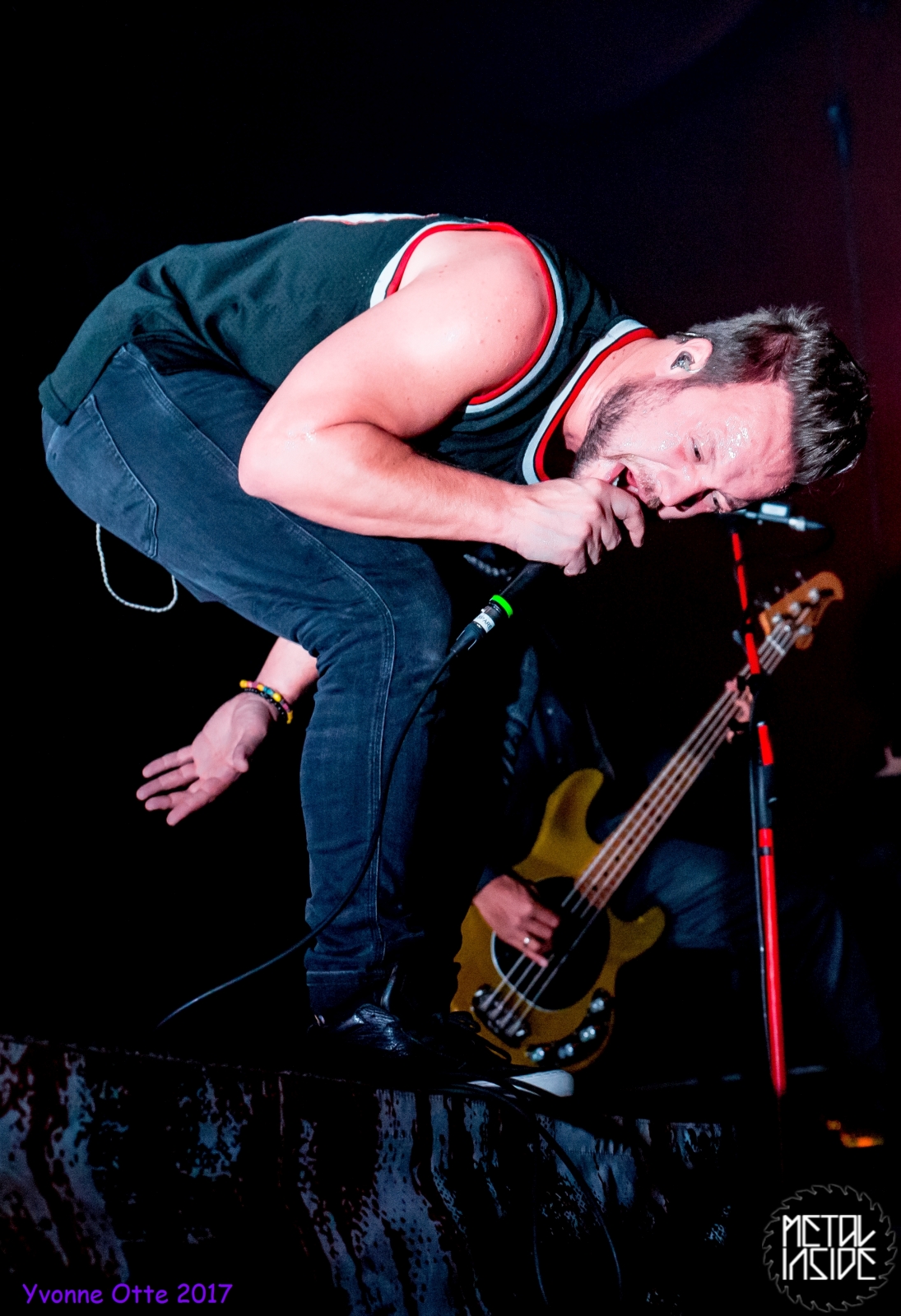 Und dann war es so weit! Endlich durften die EMIL BULLS auf die Bühne. Schön mit Spannung warteten alle bis der Vorhang fällt. Ja, Vorhänge gehen immer und kommen immer gut an. Wenn dieser dann fällt, ist der Jubel umso größer! So auch bei der EMIL BULLS in Köln! Sofort war Stimmung auf den Höchststand und sollte bis zum Ende der Show auch so bleiben. Gestartet wurde das Konzert mit „Kill Your Demons“ was sehr passend war, da so ja auch der Titel des Albums und der Tour ist. Außerdem ist diese Temponummer hervorragend als Opener für die Show geeignet, weil der Song ist schnell, er macht Spaß und sofort hat man die Leute von 0 auf 100 gebracht. Was will man also mehr? Vielleicht eine Menge, die mitsingt und mittanzt und Crowdsurfing ohne Ende betreibt. Ja, das gab es alles ohne Ende in Köln und dazu noch eine Show die 105 Minuten ging und ohne Ende Energie hatte. Wie sehr die Fans bei ihrer Band sind konnte man sehr schön daran sehen, dass wirklich der ganze Saal auf Kommando auf die Knie gegangen ist! Oft machen zwar viele bei so Aktionen mit, aber nie wirklich der gesamte Saal. War ein sehr eindrucksvolles Bild! Gespielt wurden in den 105 Minuten 20 Songs. Davon fünf von „Kill Your Demons“, sechs von „Sacrifice to Venus“ und drei von „Oceanic“. Der Rest war gemischt. Die Leute gingen aber bei allen Songs gleichermaßen ab, so dass die Songauswahl sehr gut getroffen war und wirklich für sehr viel Spaß gesorgt hat.