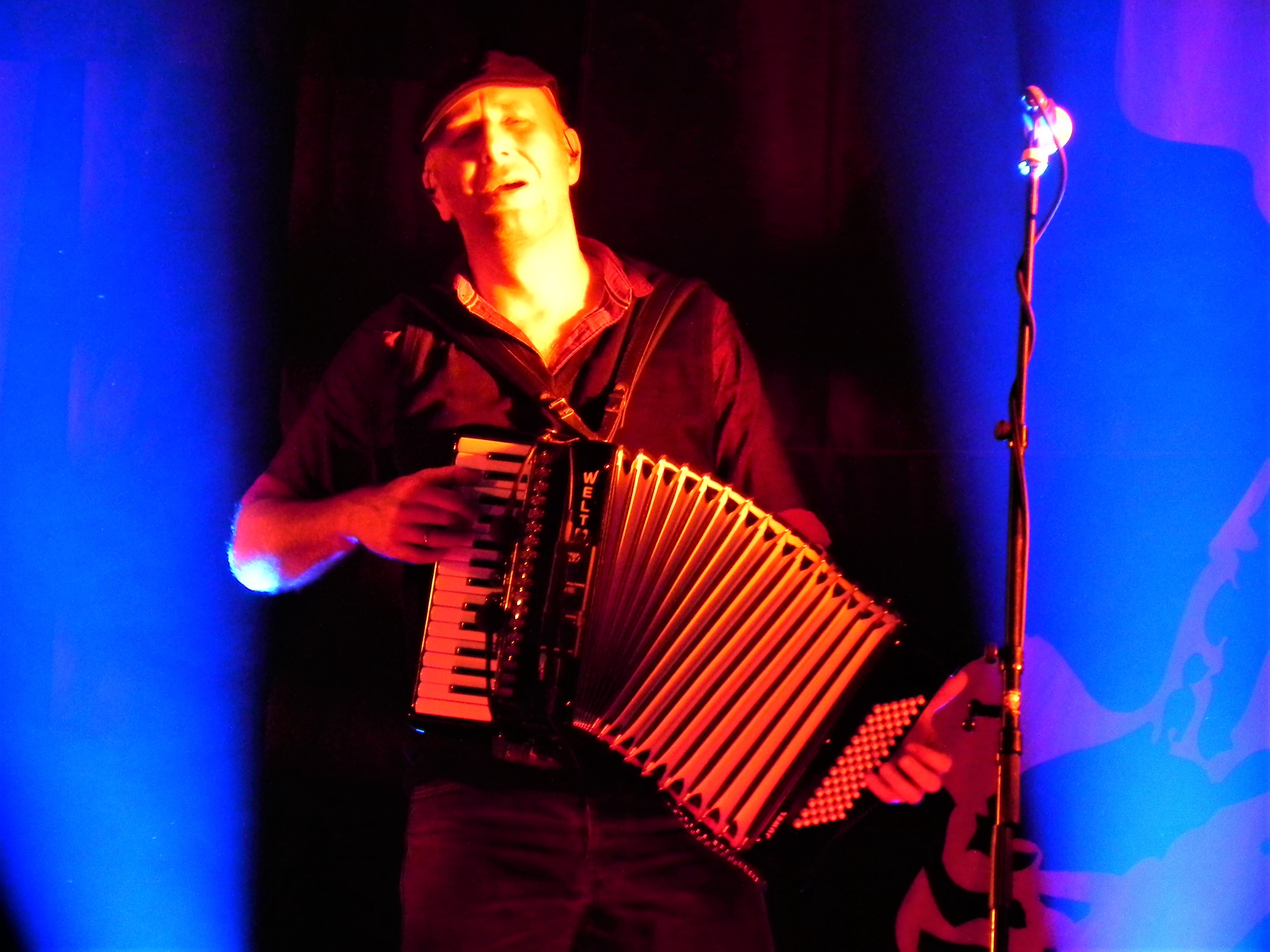 „Vollmond“, einer der Bandklassiker schlechthin, wurde gefeiert als gäbe es kein Morgen, „Störtebeker“ und das wunderbar melancholische „Gaukler“ aus vielen Kehlen mitgesungen. Die Band zeigte vollen Einsatz. Wie groß dieser Einsatz tatsächlich war, wurde klar, als Das Letzte Einhorn – selbst erkältungstechnisch etwas angeschlagen wirkend, im Tourbus grassierte die Seuche – um einen Extra-Applaus für Dr. Pymonte bat, der – erkennbar nur von eiserner Willenskraft auf den Beinen gehalten – trotz 40 Grad Fieber auf der Bühne stand. Spielmann sein ist eben doch nicht immer geil, auch wenn gewisse Kollegen das behaupten mögen. Als Entschädigung für seine Mühen erhielt er verdienterweise einen donnernden Applaus. Möge dieser die Genesung beschleunigen! Ein weiterer Sonderapplaus wurde für die Kollegen von FIDDLER´S GREEN erbeten und wenig überraschenderweise fiel auch der ziemlich üppig aus. Und so ging die Party weiter: „Rasend Herz“, „Frei Zu Sein“, „Küss Mich“ (der holden Weiblichkeit im Publikum gewidmet) – die Menge feierte sie alle. Einer der heimlichen Höhepunkte des Abends war jedoch wohl „Ave Maria“, das angeblich wegen der Nähe zu Weihnachten den Weg ins Set gefunden hatte und ausgesprochen stimmungsvoll daherkam.