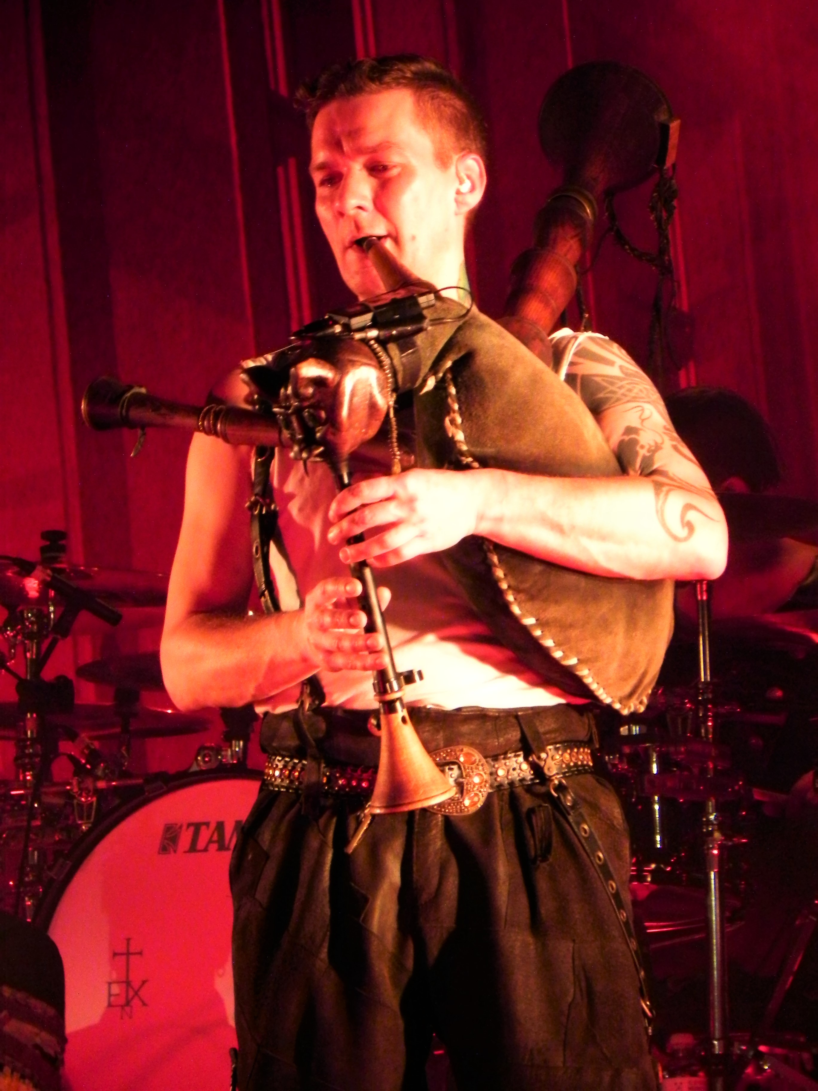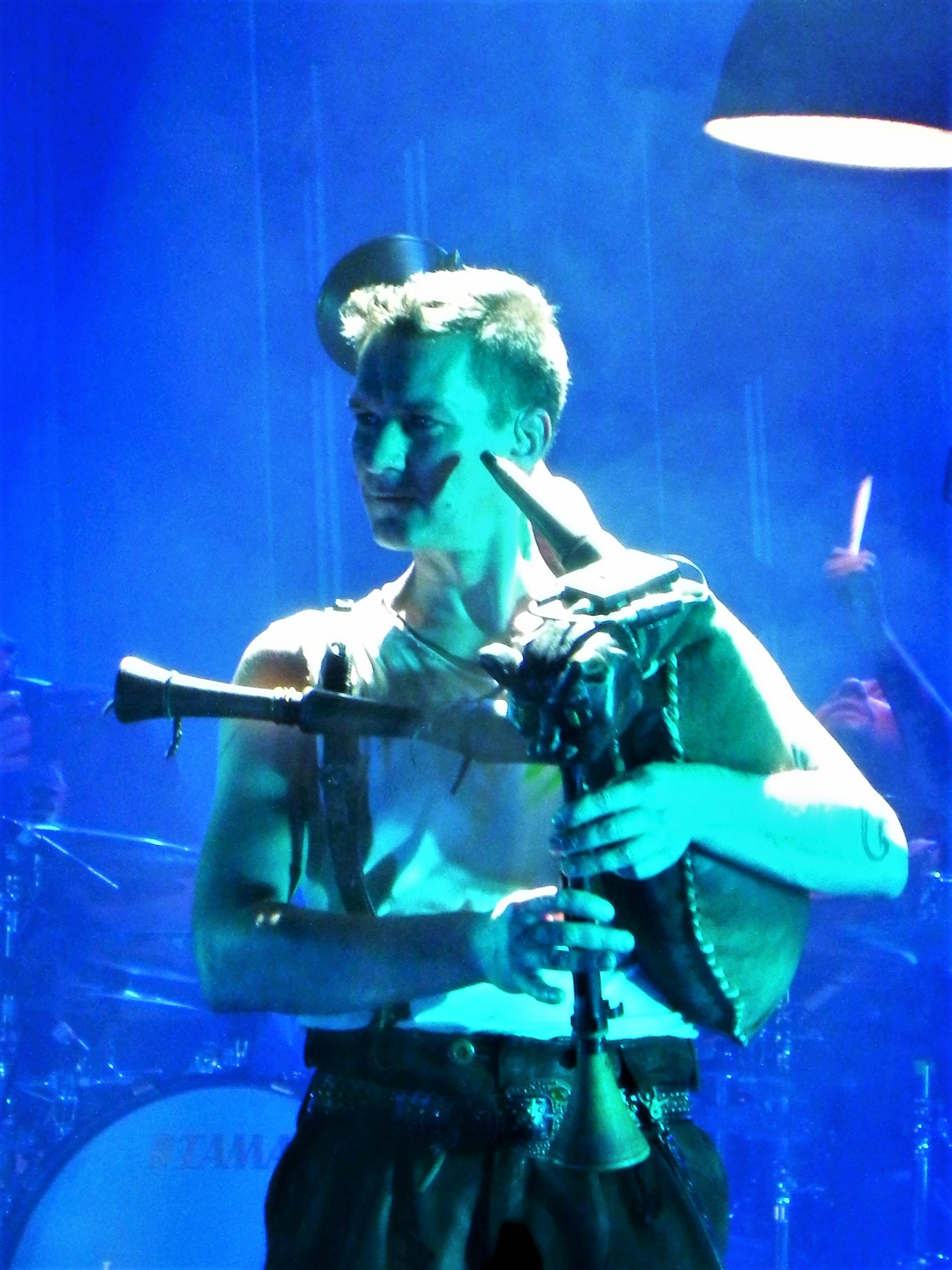 Nach einer kurzen Umbaupause wurde es um kurz vor 21 Uhr wieder dunkel im Palladium und die Gastgeber betraten die Bühne bzw. wurden effektvoll hinter herabfallenden Bühnenvorgängen und zu ersten pyrotechnischen Eröffnungsschüssen enthüllt. IN EXTREMO legten mit „Quid Pro Quo“ los und zündeten mit dem nachfolgenden „Feuertaufe“ zur Freude des Publikums gleich – buchstäblich – das erste Feuerwerk des Abends. Die Stimmung im Publikum war vom ersten Ton an bestens – man war ja schließlich schon gut aufgewärmt—und so störte auch eine kurze Pause nicht, die nötig wurde, um am Schlagzeug aufgetretene Probleme zu beheben, und die Das Letzte Einhorn charmant mit Komplimenten ans Publikum überbrückte. Auch die Crew wurde gewürdigt und zu einem späteren Zeitpunkt von der Band auf die Bühne gebeten, um dort gebührenden Dank von Seiten der Musiker und des ausverkauften Palladiums entgegenzunehmen, bevor es weiterging.
