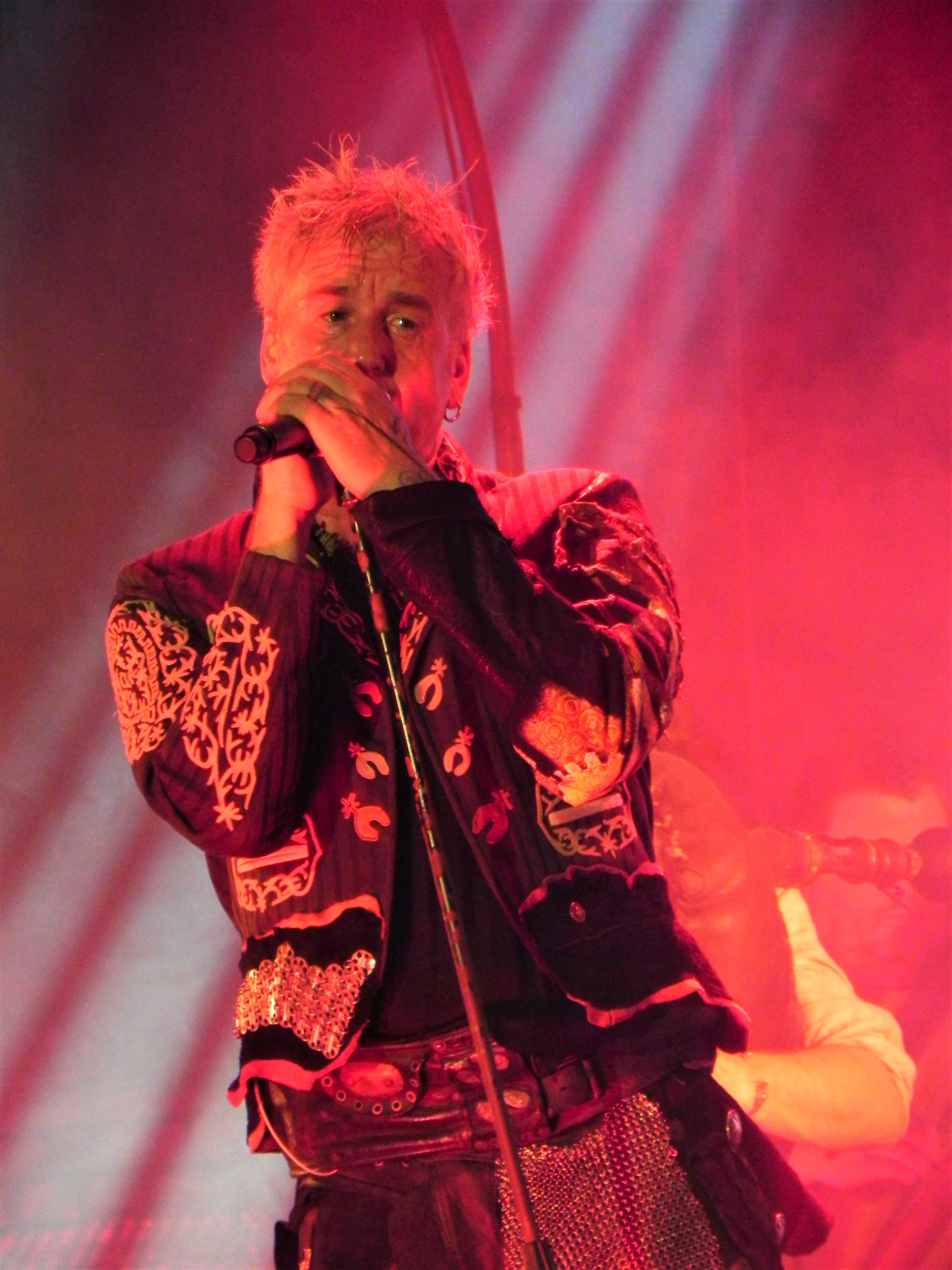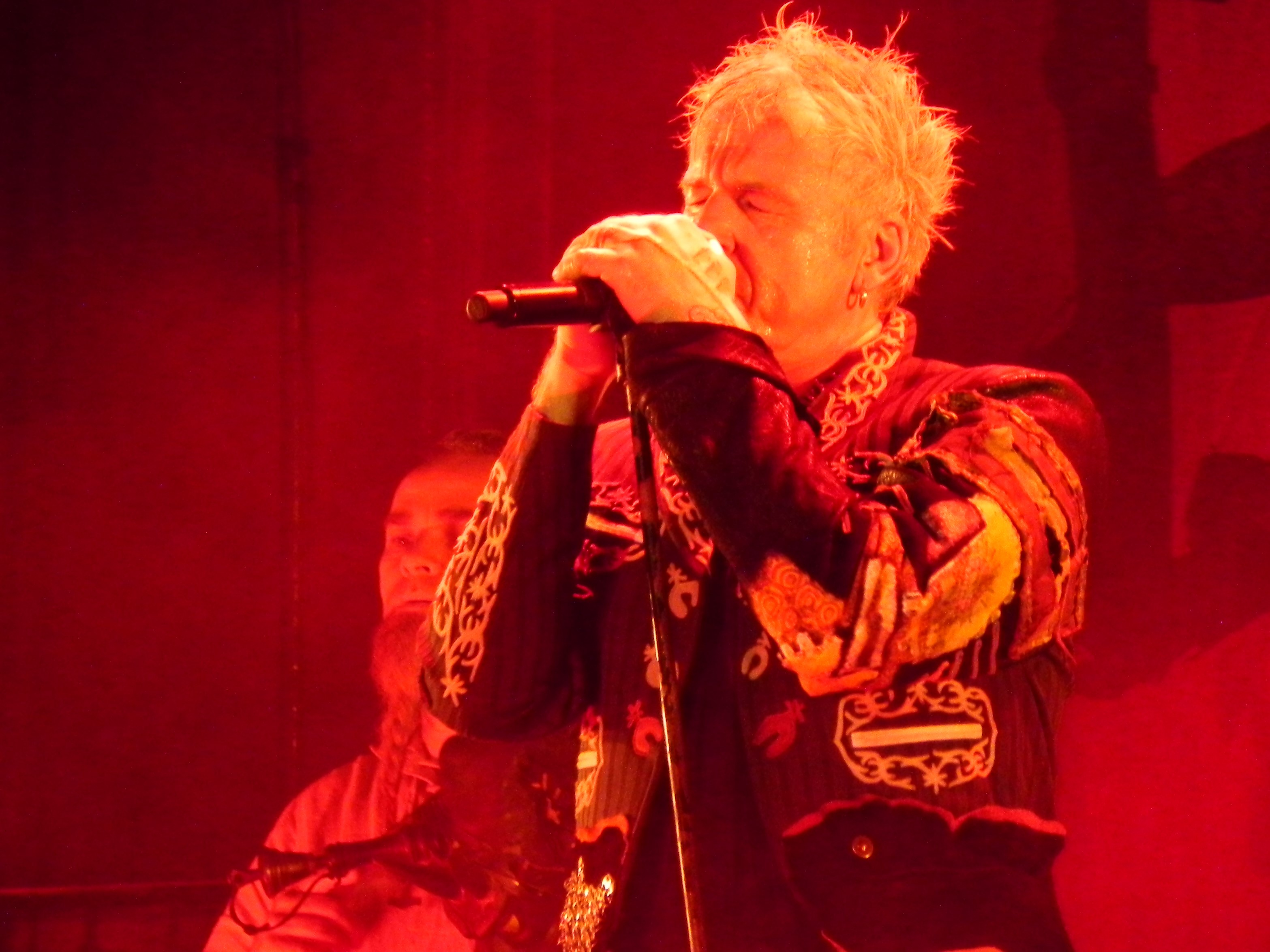 Los ging es pünktlich um 19:30 Uhr mit den Speedfolkern von FIDDLER´S GREEN. Da die Herren schon seit langem gute Beziehungen sowohl zu IN EXTREMO als auch deren Anhängerschaft unterhalten, lag es nahe, sich zusammenzutun und die Kombination könnte man wohl getrost als „marriage made in heaven“ bezeichnen – FIDDLER´S GREEN waren in der Vergangenheit immer wieder von Fans zum beliebtesten Support von IN EXTREMO gekürt worden und entsprechend gut wurden sie aufgenommen. Schon nach einem einzigen Song herrschte ausgelassene Partystimmung im Palladium, in der Ralf „Albi“ Albers und Co. als Zeremonienmeister zu gleichen Teilen sich selbst, das Publikum und die Gastgeber IN EXTREMO feierten. Letzteren zu Ehren wurde das Publikum angehalten, bei „Old Dun Cow“ den Publikumspart „McIntyre“ derart laut zu schmettern, dass im Backstage-Bereich bei IN EXTREMO die Wände erzitterten. Ob es dazu tatsächlich reichte ist nicht überliefert, aber man gab sich auf jeden Fall reichlich Mühe. Ob „The Night Pat Murphy Died“, „Blame It On Me“ oder Gassenhauer wie „A Night In Dublin“, „Yindy“ und „Victor And His Demons“ – die Menge sang, tanzte und klatschte, dass ein uneingeweihter Passant sicherlich geglaubt hätte, hier seien schon die Headliner am Werk. Und wie sich das unter Freunden gehört, wurden die Speedfolker auch nicht mit einer halben Stunde Spielzeit abgespeist, sondern durften sich in fröhlicher Symbiose mit dem Publikum eine knappe Stunde auf der Bühne austoben.