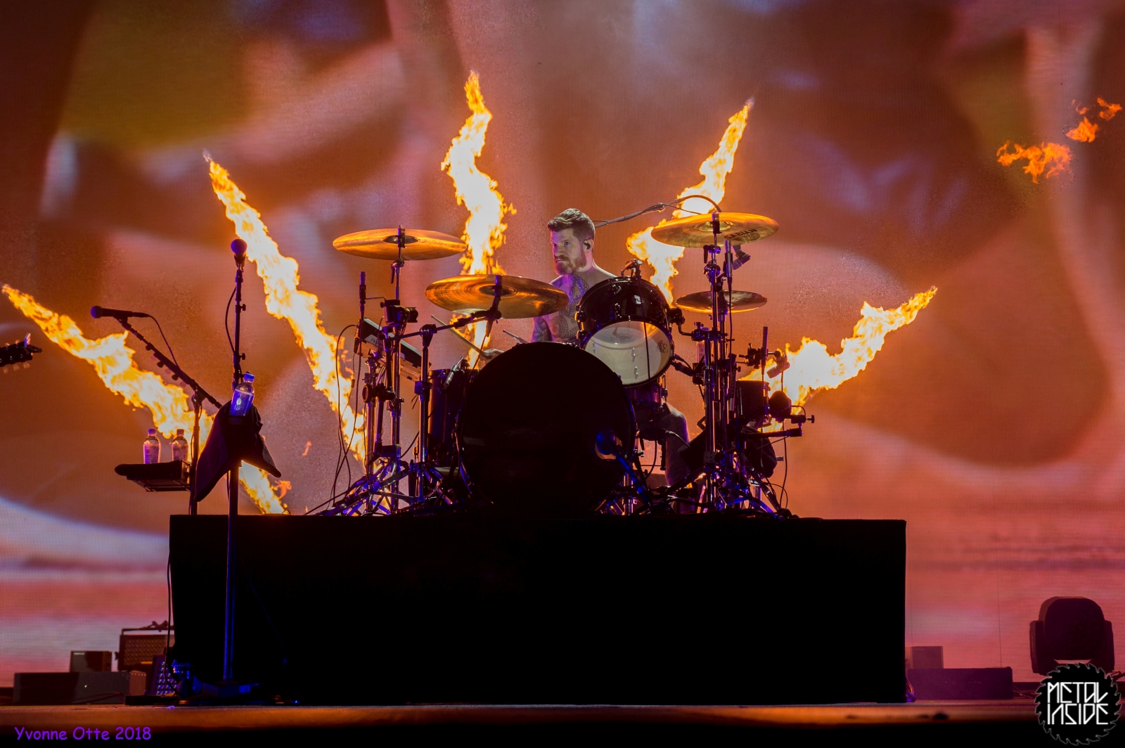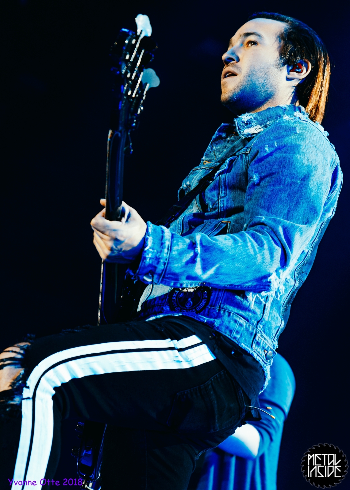 Es war spät geworden und die Fans warteten nun schon eine gefühlte Ewigkeit auf FALL OUT BOY. Gegen 21:45 Uhr sollte das Warten dann ein Ende haben und FALL OUT BOY kamen auf die Bühne. Überwältigend war die LED-Leinwand im Hintergrund und die Bilder darauf waren immer wechselnd, passend zum Song. Anfangs eher aus der Natur, später am Abend dann entweder ganze Videos oder Livebilder aus der Halle. Egal, was gezeigt wurde, es war immer passend und beeindruckend. Beeindruckend war die gesamte Show. Hier stimmte einfach alles. Sehr guter Sound, eine sehr coole Lichtshow, mit tollen Pyroeinsetzen, die die Halle nochmal zusätzlich aufgeheizt haben und eine Songauswahl, die sehr gut beim Publikum angekommen ist. Die meisten Songs stammten aus dem aktuellen „Mania“-Album. Der Rest war gut gemischt und für jeden war was dabei. Die Hits worden natürlich etwas mehr abgefeiert als andere Songs, aber im Ganzen kann man sagen, dass die Fans mit den 23 gespielten Songs sehr zufrieden waren. Sichtlich gut kamen auch die Songs auf dem Piano an. Sänger Patrick hat viele Talente und hat auch keine Bedenken diese zu zeigen. Trotz der 23 Songs war die Dauer des Konzerts nur Durchritt mit guten 90 Minuten. Kritisiert hat das hinterher niemand, die Fans waren vollends zufrieden.
