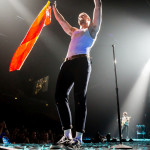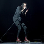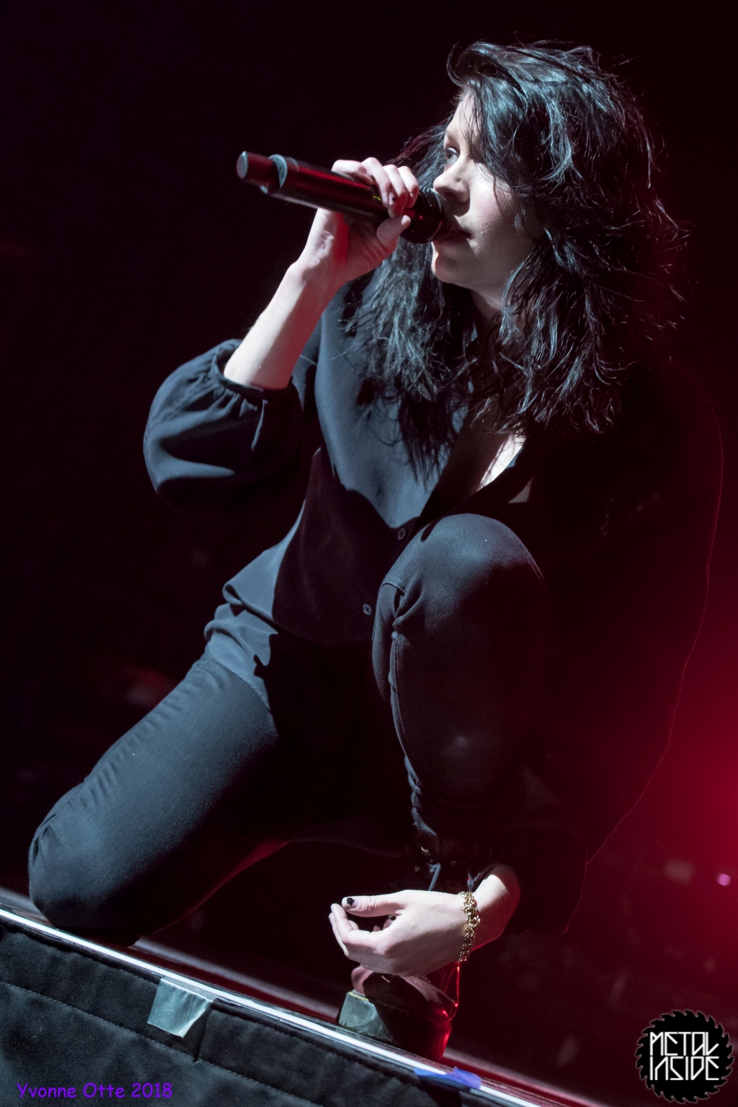 Gegen kurz nach 20 Uhr sollte das Konzert, der Superlative mit Sängerin K.FLAY beginnen. Ihre Musik, Erscheinung und Darstellung erinnert ein bisschen an die von BJÖRK, wenn auch K.FLAY‘s Musik poppiger ist und auch Elemente von Indie-Musik beinhaltet. Dennoch ist ihre Darbietung auf der Bühne schon sehr einzigartig und mit der Musik zusammen hat es extremen Wiedererkennungswert. Trotz, dass sich K.FLAY’s Musik schon sehr von der der IMAGINE DRAGONS unterscheidet, kam ihre Show gut in der ausverkauften Arena an. K.FLAY durfte mit gut 45 Minuten auch ziemlich lange für einen Supportact spielen. Ihre Musik ist ziemlich extravagant, aber dennoch macht sie so neugierig, dass man gerne zuhört und vor allem ihr zusieht. Sie tanzt und hüpft über die Bühne, als würde sie die Welt um sich herum komplett ausblenden. Eine wirklich sehr beeindruckende Show von einer beeindruckenden Künstlerin, die hierzulande leider noch viel zu unbekannt ist.