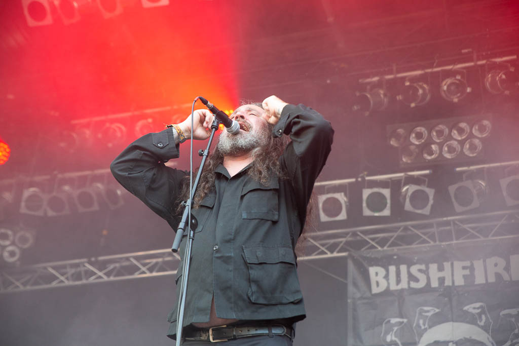 Die Stimmung wurde ein wenig weniger düster aber dafür bluesig mit BUSHFIRE [DE]. Die Jungs nahmen an dem Abend ihre nächste Livelp auf, somit gab es nochmal extra mehr Gejubel, als sowieso überhaupt schon.