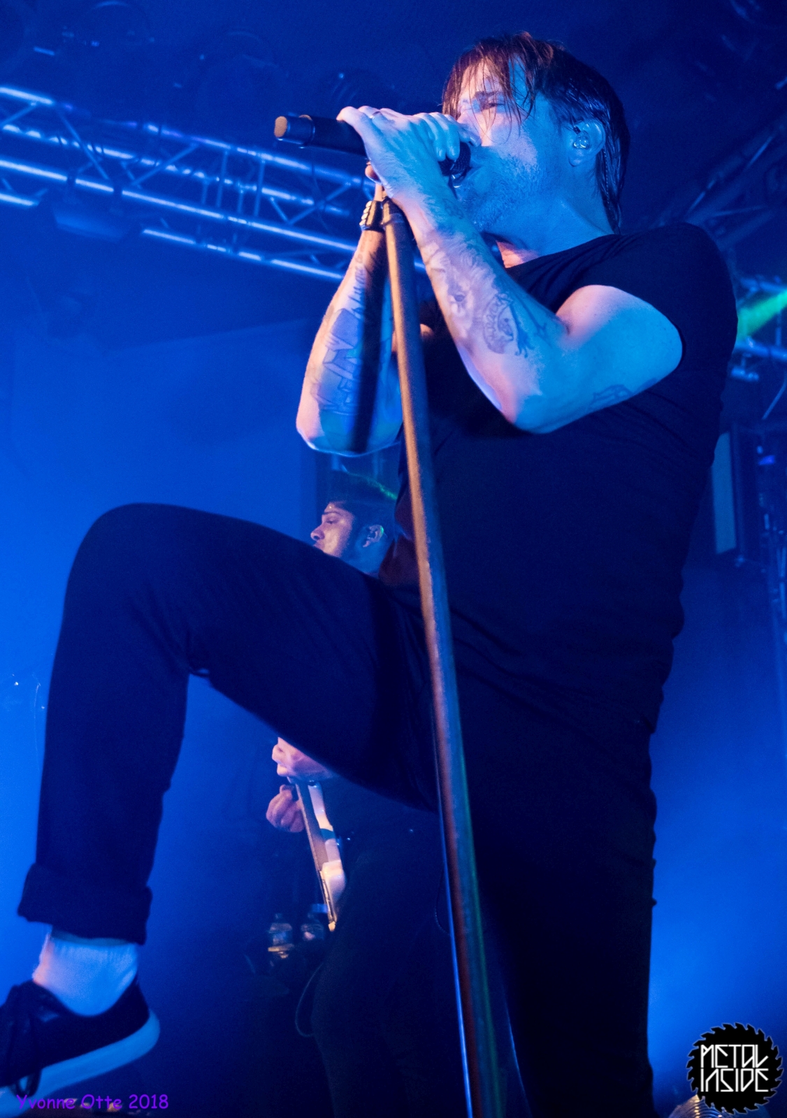 Die kleine Location machte es auch möglich, dass Sänger Ben einfach mal beim Singen die Bühne verlassen hat, um sich an der Bar in der Empore etwas zum Trinken zu holen. In den Arenen wäre so etwas undenkbar, die Wege auch zu weit. Von der Stimmung her war es auch egal, ob ein alter Song gespielt wurde oder ein Neuer –alles kam gut an und wurde gefeiert. Die Songauswahl war gut gemischt durch alle Alben. Selten so eine bunte Setlist gesehen, wo alle Alben vertreten waren und im Fokus stand nicht das noch aktuelle „Afraid Of Heights“ Album, sondern „Billy Talent II“, wo so gehen auch die meisten Hits drauf enthalten sind. Insgesamt wurden 21 Songs wurden gespielt. Radiohits wie „Surrender“ oder „Fallen Leaves“ durften natürlich auch nicht fehlen. Zwischen den Songs wurden immer wieder kleine Ansage gemacht. Nicht unerwähnt soll natürlich bleiben, dass Drummer Aaron dabei war und sich auch für drei Songs ans Schlagzeug gesetzt hatte. Mit viel Spaß und Energie war er bei der Sache. Man merkte, dass fehlt ihm und er würde gerne mehr. Aber was nicht geht, das geht leider nicht und die Gesundheit geht vor. Trotzdem wurden diese drei Songs besonders vom Publikum gefeiert. Es ging energiegeladen bis zum Schluss weiter und besonders bei der Zugabe rastete die Menge nochmal so richtig aus und feierten ihre Band.