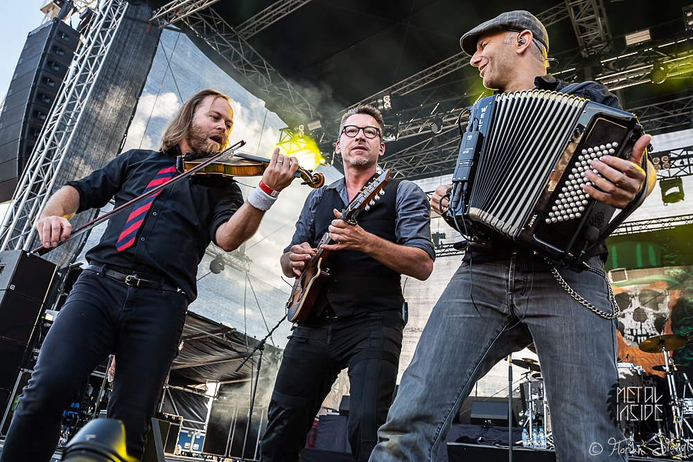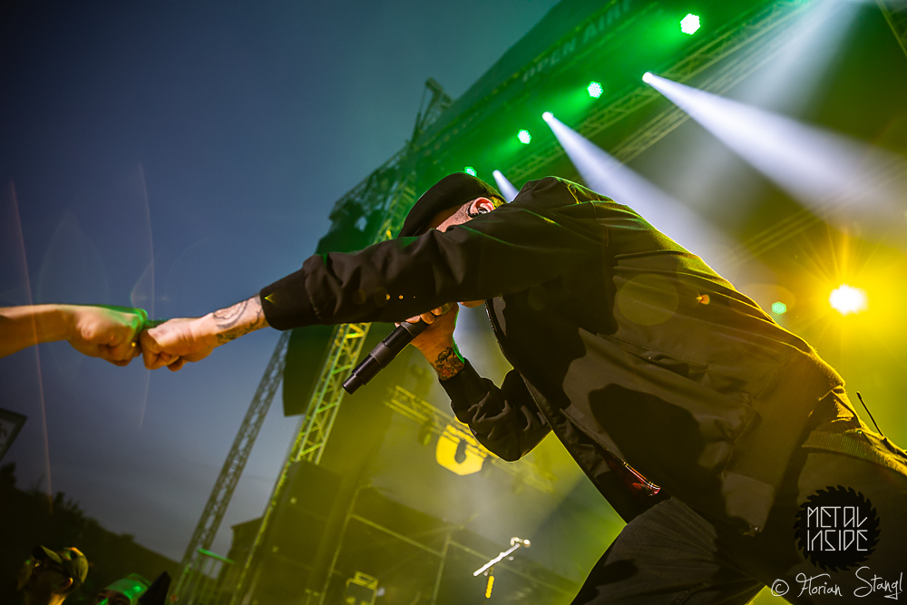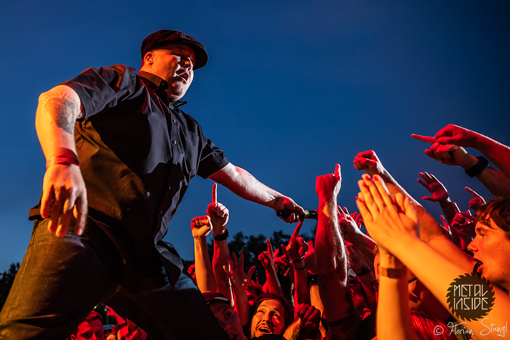 In punkto Publikumsnähe legten die DROPKICK MURPHYS aber noch mal einen drauf. Von Beginn an gab es Fist Bumps und Selfies mit den Fans, die haufenweise als Crowdsurfer ihrerseits die Nähe zur Band suchten. Die gut bestückte Setlist mit einem Best of der Bostoner und die unbändige Spielfreude trugen ebenso dazu bei, dass in Sachen Stimmung keine Wünsche offenblieben. 20 reguläre Songs und vier Zugaben später war Feierabend am Nürnberger Flughafen - die DROPKICK MURPHYS hatten den lauen Sommerabend nach allen Regeln der Kunst gerockt.