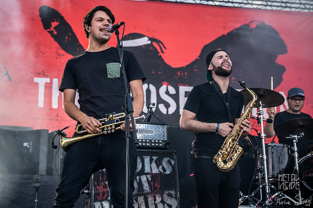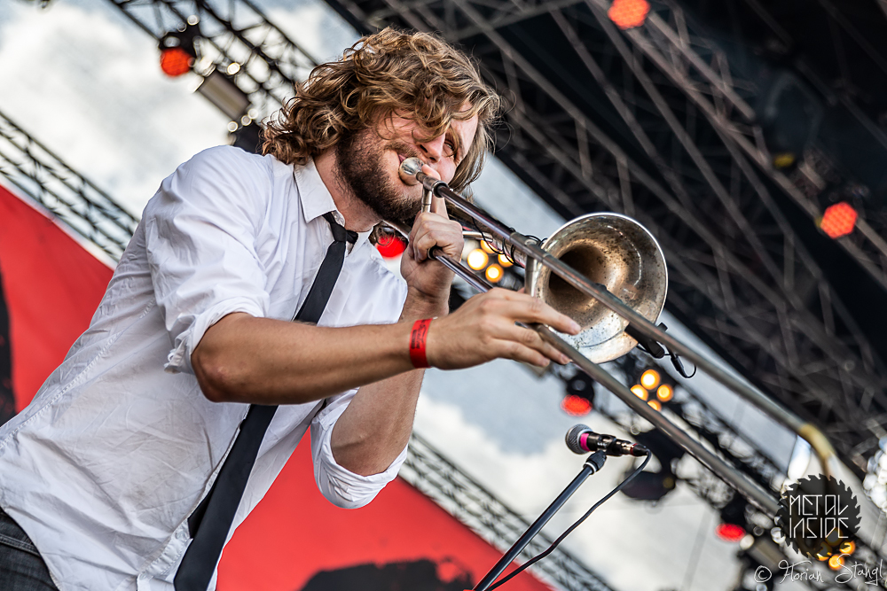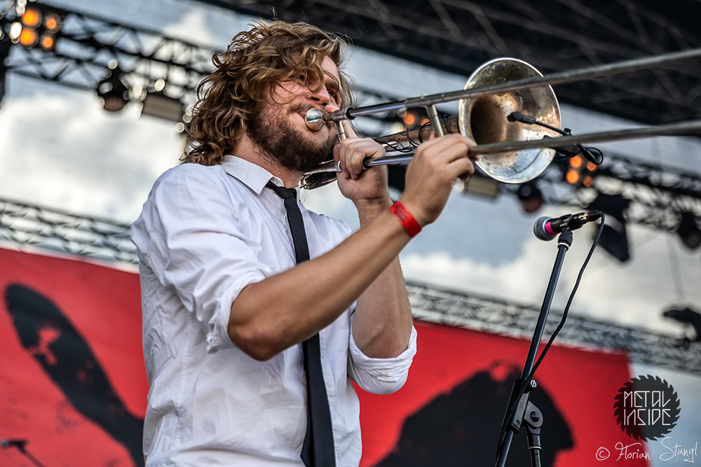 Kommen wir zur Musik. THE PROSECUTION konnten mit ihrer ansteckenden Energie von Beginn an punkten, sicherten sich den ersten Circle Pit des Abends und sparten auch nicht mit eindeutigen politischen Aussagen. Pro Flüchtlinge, pro Zusammenhalt, pro Spaß - ernste Themen und tanzbarer Ska-Punk gingen problemlos Hand in Hand. Ihren Job als Anheizer haben THE PROSECUTION jedenfalls hervorragend erledigt und sich - mal wieder - für mehr empfohlen. Wer sie noch nicht kannte, wird sie künftig sicher im Auge behalten.