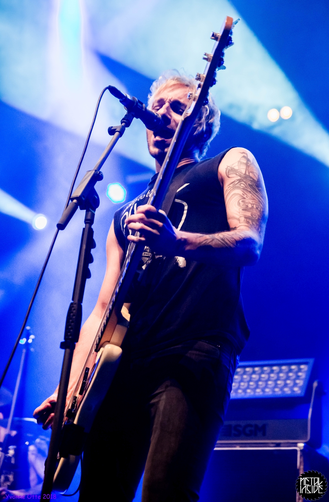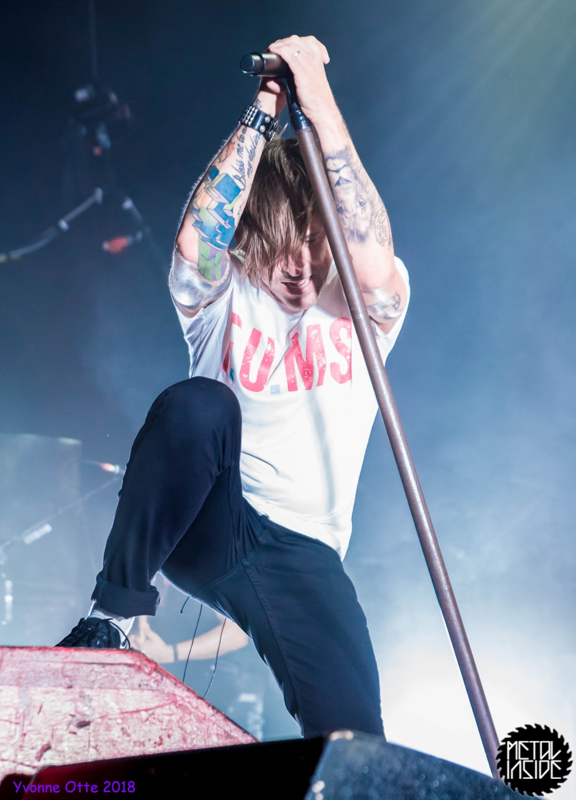 Nach der Show folgte ein Umbau. Gegen 21 Uhr 30 ging es dann weiter. Vom ersten bis zum letzten Ton herrschte eine fantastische Stimmung, trotz Tropenklima in der Halle. Sänger Ben hatte es ganz witzig ausgedrückt in dem er sagte, dass Deutschland überall Spitzenreiter ist und alles so hervorragend kann und überall so perfekt ist, aber in der einen Sache haben sie kläglich versagt und das ist bei der Klimaanlange. Er sagte in etwa wörtlich: „Wie kann ein Land nur so großartig in allen Dingen sein, aber bei dieser einen Sache so versagen?“ Ob Deutschland überall so „großartig“ ist, sei man dahin gestellt, aber mit der Aussage, dass die Klimaanlagen in deutschen Hallen sehr zu wünschen übrig lassen, hat er definitiv recht.