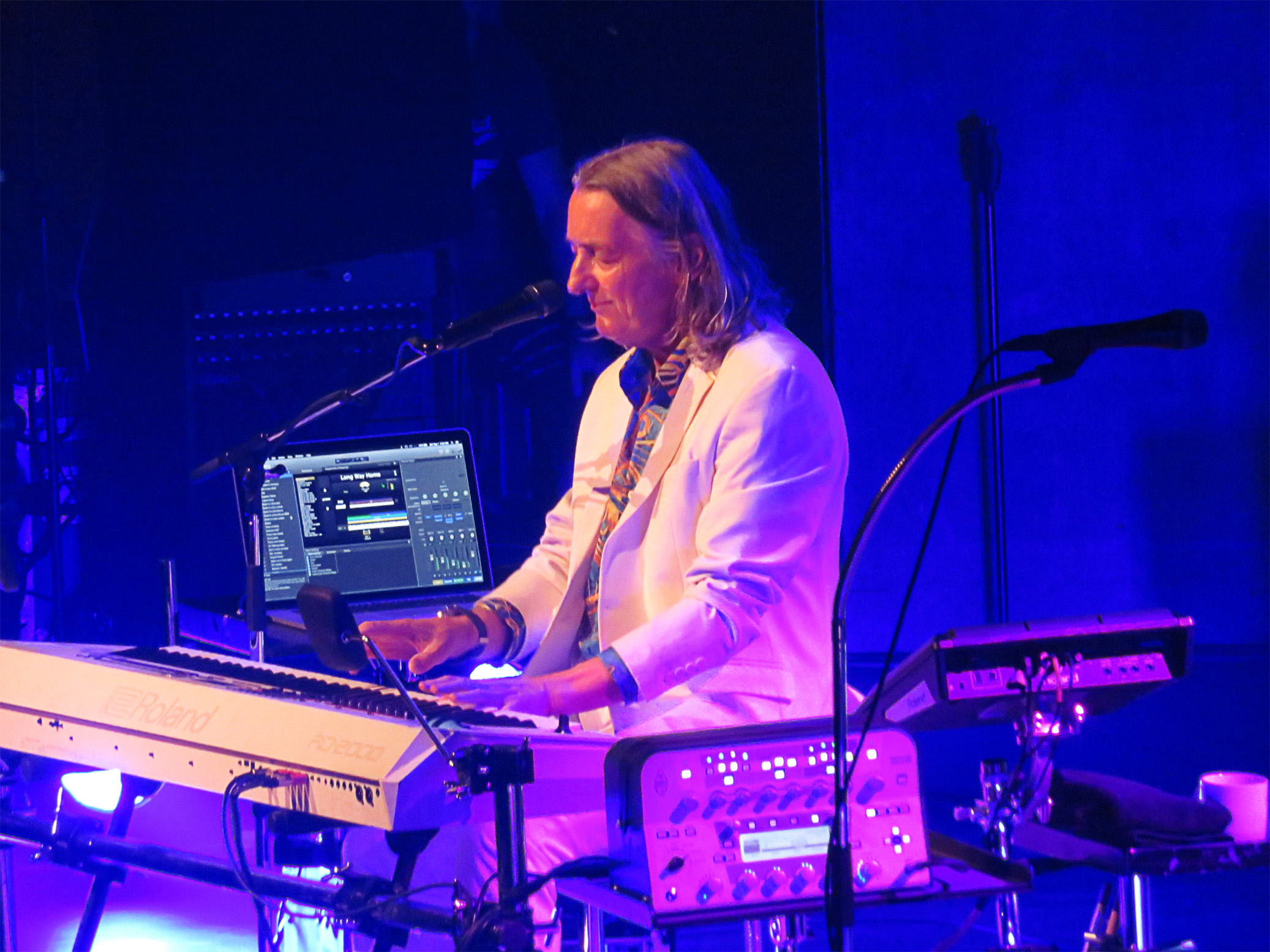 Pünktlich um 20h betritt die Band die atmosphärisch ausgeleuchtete Bühne im vollbesetzten, komplett bestuhlten Konzertsaal. "Take The Long Way Home" stimmt das Publikum auf die kommenden ca. 120 Minuten, gefüllt mit fantastischen Songs, einer perfekt eingespielten Band und einem in sich ruhenden, mitteilsamen und zum Knuddeln sympathischen Künstler ein. Dieser begrüßt das Publikum nach diesem ersten Song stehend mit einer Tasse Tee (?) herzlichst am Bühnenrand, wünscht ihm die nächsten zwei Stunden, die verrückte Welt und ihre persönlichen Probleme zu vergessen und mit ihm und seinen Musikern eine schöne Zeit zu erleben. Danach wird das wunderbare "School" in einem weiterhin perfekten Sound präsentiert und zu meiner Überraschung auch stimmlich nahezu in Studio-Qualität. Man fühlt sich seit der ersten Minute nicht nur als Zuschauer, sondern irgendwie ein Quäntchen wertvoller, wichtiger für den Künstler. Er spricht, erzählt, ja offenbart sich in manchen Momenten, z.B. dass er mit 12 Jahren seine erste Gitarre bekommen hat und dies sein Leben für immer verändert und bereichert hat und wie erfüllend die Musik für ihn ist. Dies alles macht es dem Publikum unmöglich, sich seiner Performance zu entziehen. Dazu gesellt sich eine auf höchstem Niveau eingespielte Band, die geradezu makellos und spielfreudig ROGER HODGSON folgt. Und natürlich sind da die Songs, zum größten Teil alles Hits und Klassiker des Art Rock, Prog Rock oder eben auch einfach nur tolle Popnummern (z.B. "Breakfast in America", "The Logical Song", "Dreamer"), die jeder schon mal irgendwann gehört hat.
