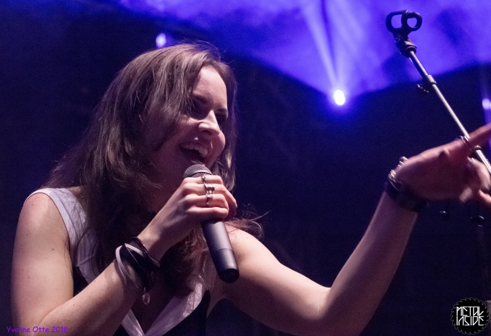 Gegen 20 Uhr sollte der Konzertabend mit drei tollen Bands beginnen. Den Start machten MOOSNSUN, eine Band bestehend aus lediglich zwei Leuten, die selbstbewusst zeigen wollte, dass man nicht viel braucht, um tolle Musik zu machen und Leute mitzureißen. Tolle Chance für die Band die seit geraumer Zeit ihre Fans immer wieder mit neuen YouTube-Videos begeistert. Angefangen mit Covers namhafter Bands wie NIGHTWISH, WITHIN TEMPTATION oder EVANESCENCE hat die Band nun aber auch eigene Songs, die sie in Oberhausen zum Besten geben wollte. Von Beginn an war sofort klar: Die Band liebt was sie tut und hat Spaß an der Sache! Sofort konnte sie das Publikum mitreißen und davon überzeugen: Wir können mehr als nur covern! Tolle Stimmung bei der doch leider recht kurzen Show von knapp 25 Minuten, aber da ja noch 2 weitere Bands gab, war die Zeit etwas kurz bemessen. Leider war der Sound an dem Abend nicht das, was man eigentlich von der Turbinenhalle kennt. Ziemlich schade, weil zum einen verkauft sich die Halle unter ihren Wert, zum anderen leidet der Auftritt der Bands immer ein bisschen darunter, weil einfach sehr viel vorhandenes Potenzial unter geht. DerSound sollte aber nicht nur bei den Vorbands ausbaufähig sein, sondern auch bei VAN CANTO kennt man es besser. Den Fans scheint das aber nicht groß gestört zu haben, was aber dennoch etwas was auffällt, wenn man öfters in der Halle ist und auch die Band seit vielen Jahren immer wieder besucht.
