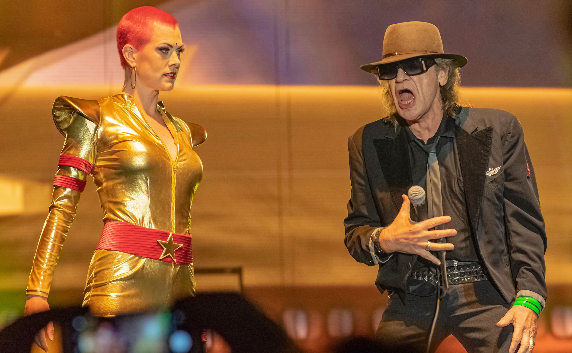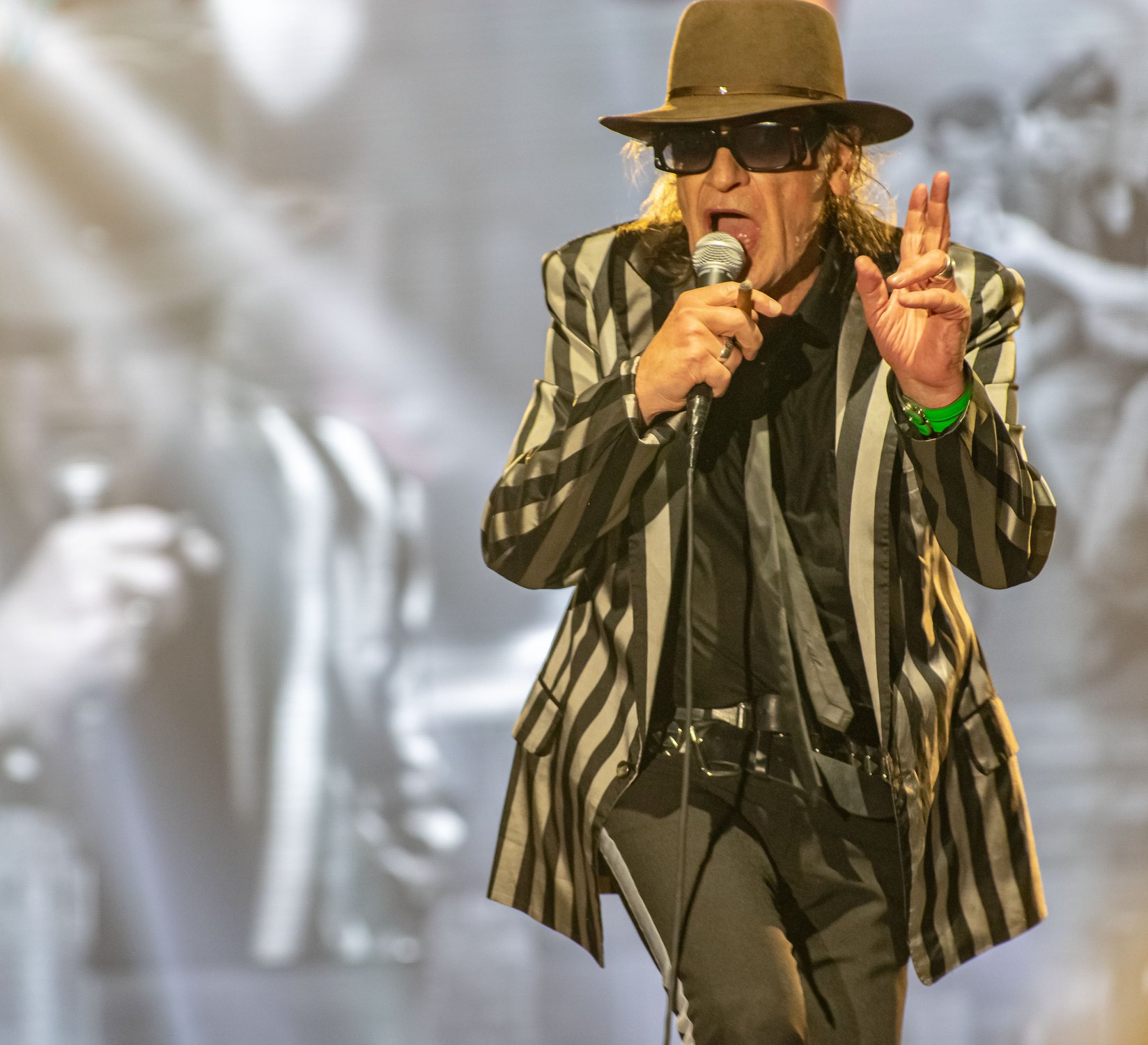 Mit seinen 73 Jahren präsentiert er sich immer noch äußerst bewegungsfreudig, rennt über die Bühne, schwingt sein Mikrofon und torkelt in bester Udo-Manier im Kreis, links, rechts, einfach überall umher. Gesanglich kann er es immer noch und trifft auch die hohen Töne problemlos. Seine fantastische Panik-Band unterstützt ihn die gesamten 165 Minuten grandios.