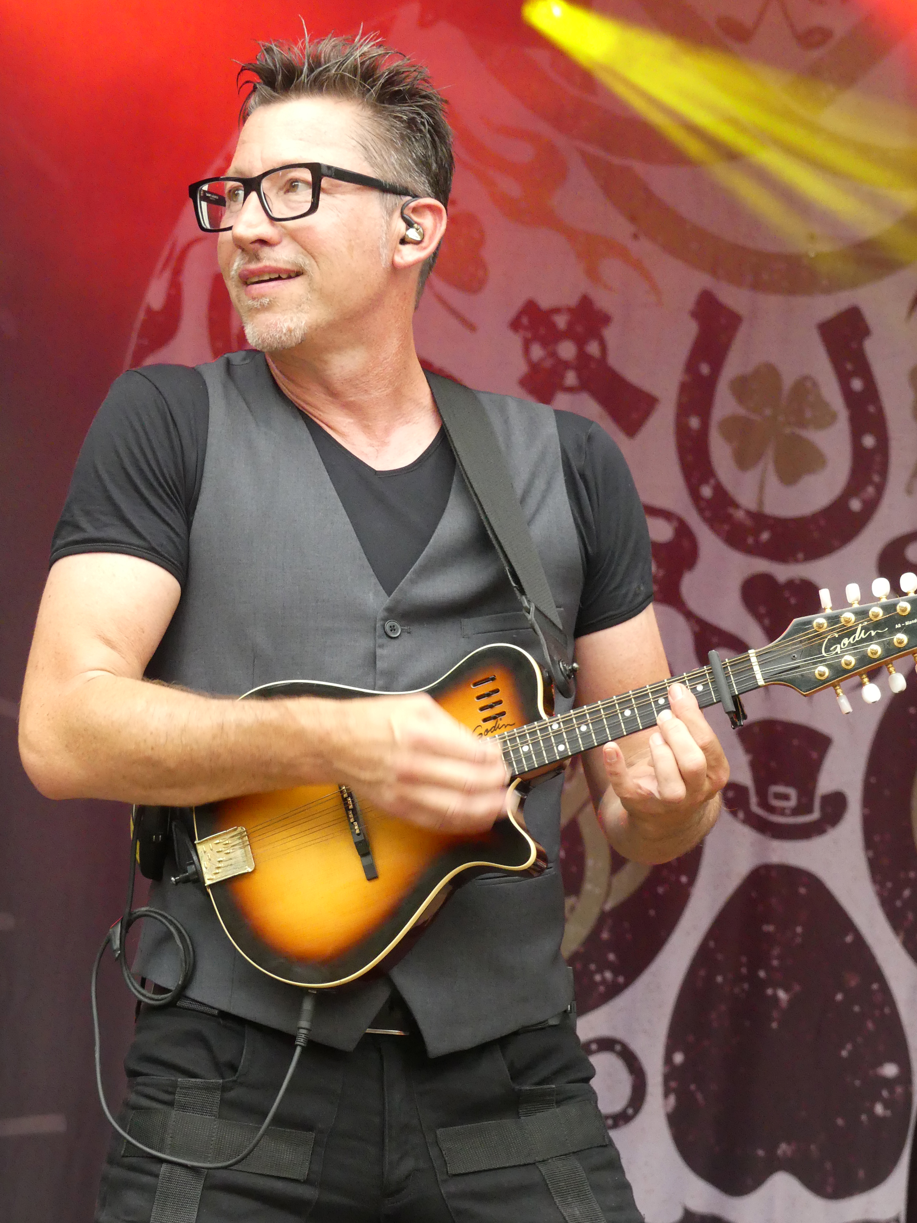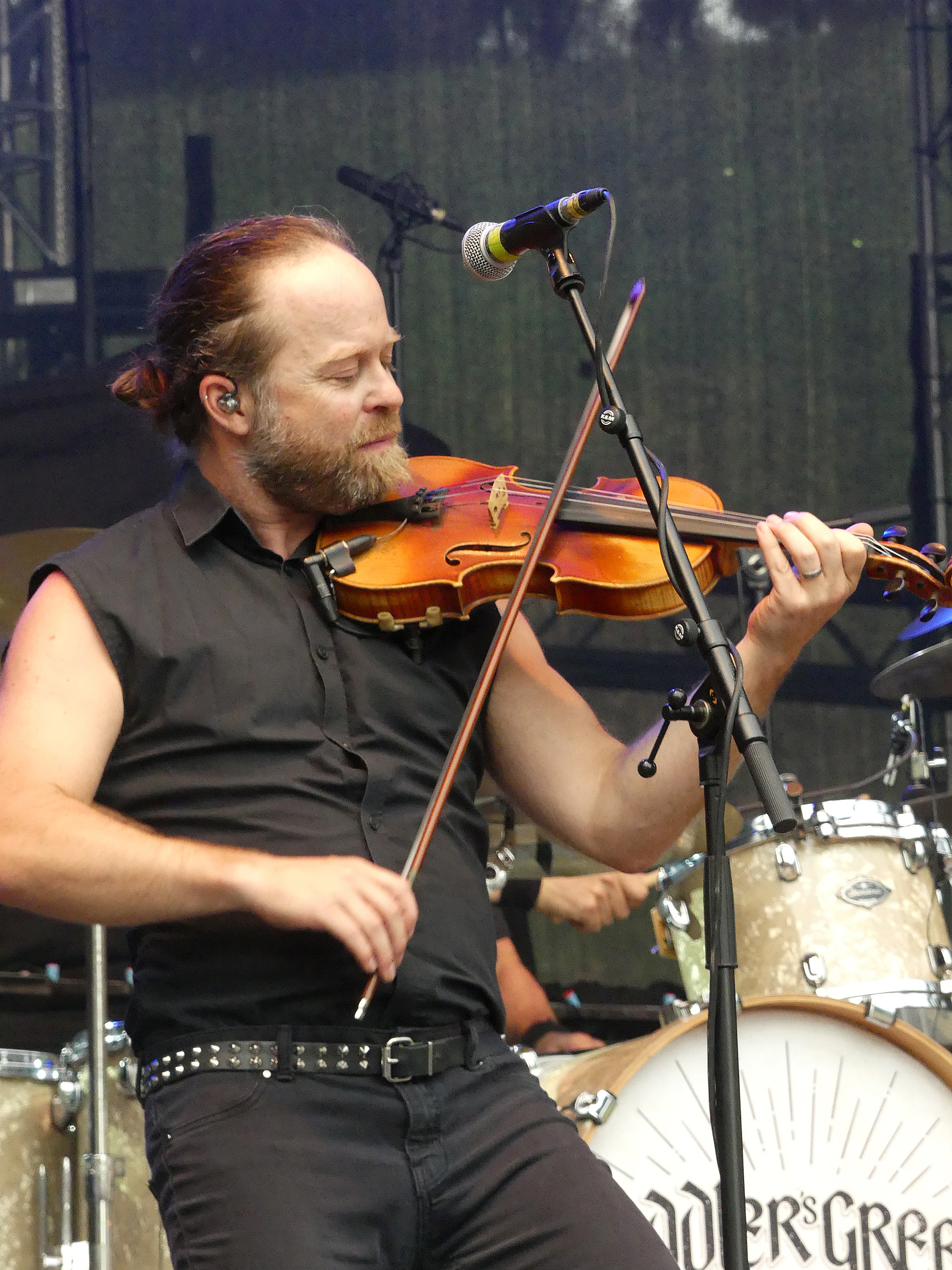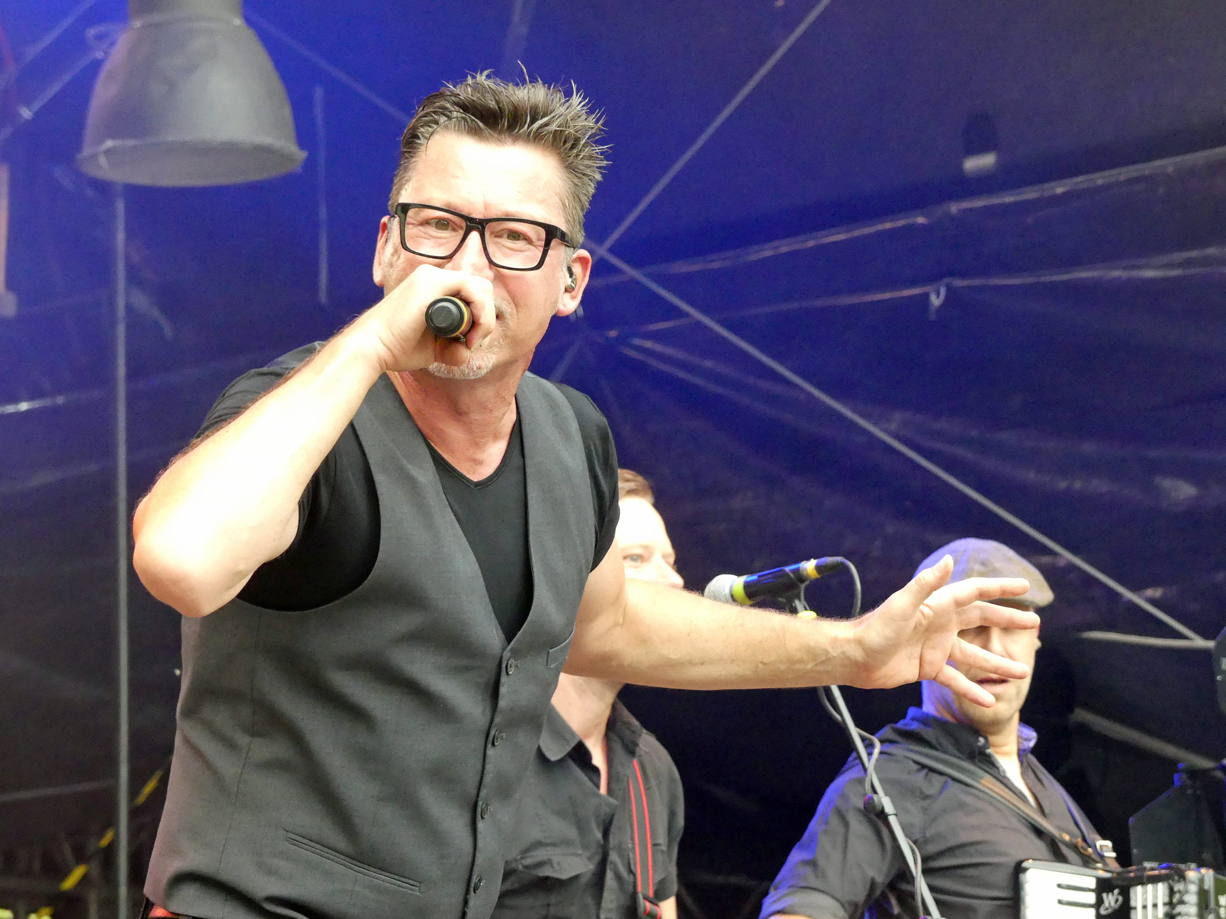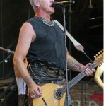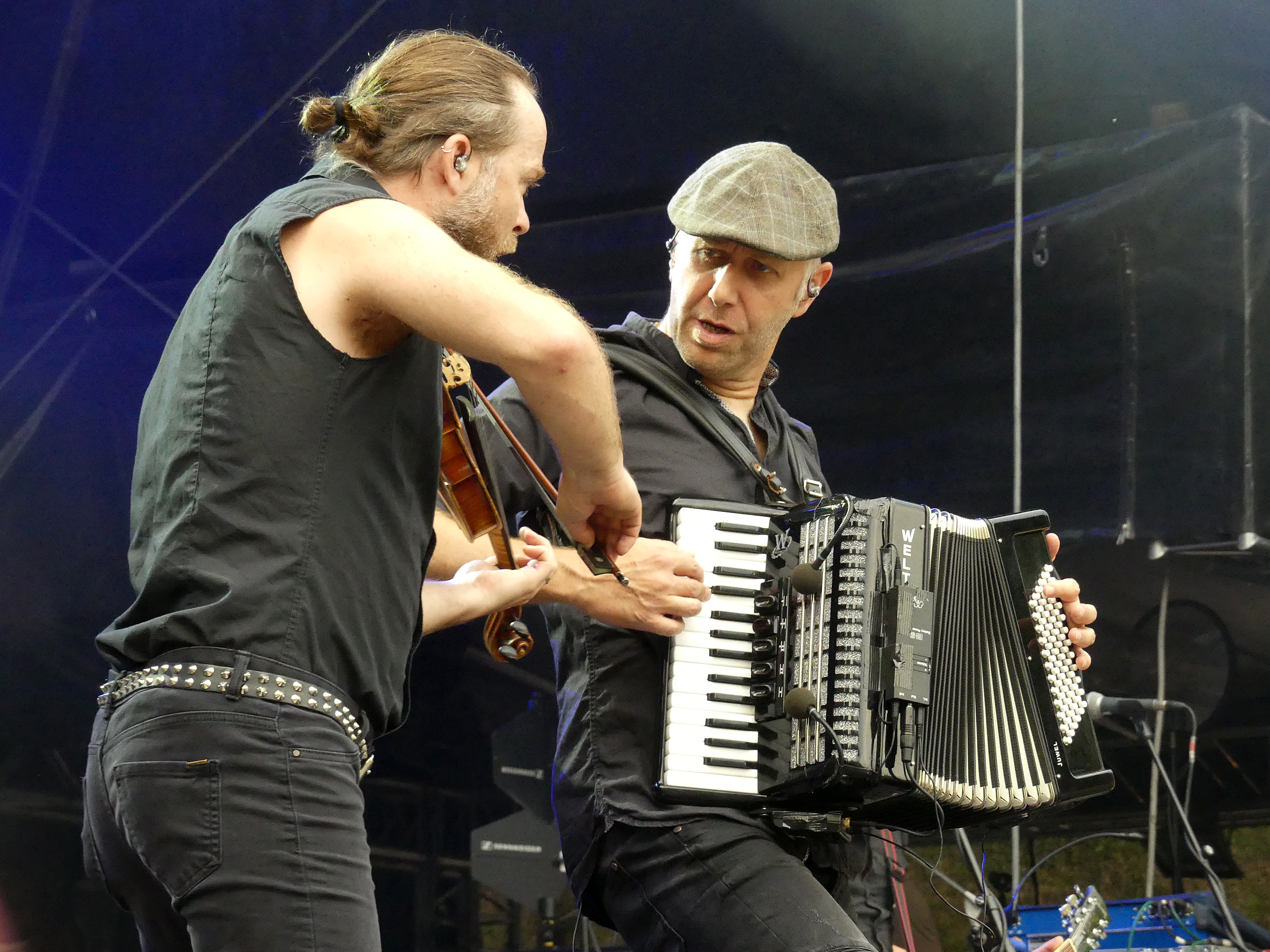 Derart gestärkt ließ es sich jedoch aushalten und so ging es um 19:50 Uhr sogar überpünktlich los: FIDDLER´S GREEN betraten die Bühne und legten mit „The Freak Of Enniskillen“ los: „Wir können jetzt bei der Hitze ja schlecht verlangen, dass ihr mit uns springt… Aber wir tun natürlich so, als würde uns das nichts ausmachen und gucken dann einfach mal, wer trotzdem mitmacht!“ Die Band verbreitete gutgelaunte Spielfreude, das Publikum nahm die mit den Headlinern befreundeten Speed-Folker herzlich auf und Band und Zuhörer arbeiteten sich fröhlich durch ein abwechslungsreiches Programm: „A Night In Dublin“, „Bottoms Up“, „Born To Be A Rover“, dazwischen mit „No Anthem“ ein kleines politisches Statement gegen Rechtsradikalismus. Selbstverständlich durften auch Bandklassiker wie „The Night Pat Murphy Died“ und „Victor And His Demons“ nicht fehlen, bevor das Set nach einer schweißtreibenden Dreiviertelstunde mit „Yindy“ und „Old Dun Cow“ schloß.