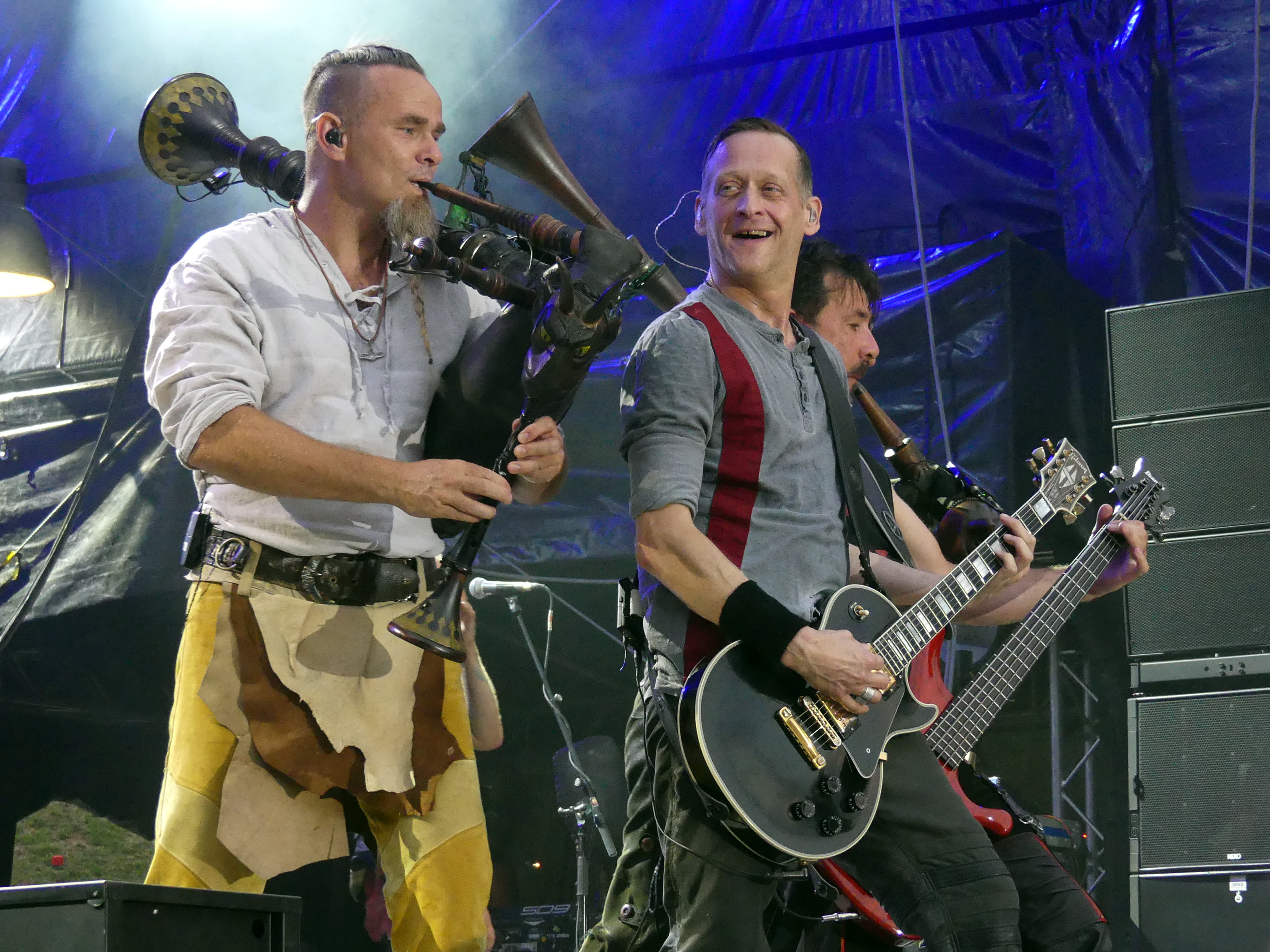 Weiter ging´s mit „Feuertaufe“, „Zigeunerskat“ und „Spielmannsfluch“, den das Publikum zeitweise alleine, dafür aber mit umso größerer Inbrunst skandierte, bevor die Band nach „Moonshiner“ als getragenem (Vorerst-) Ausklang die Bühne verließt.