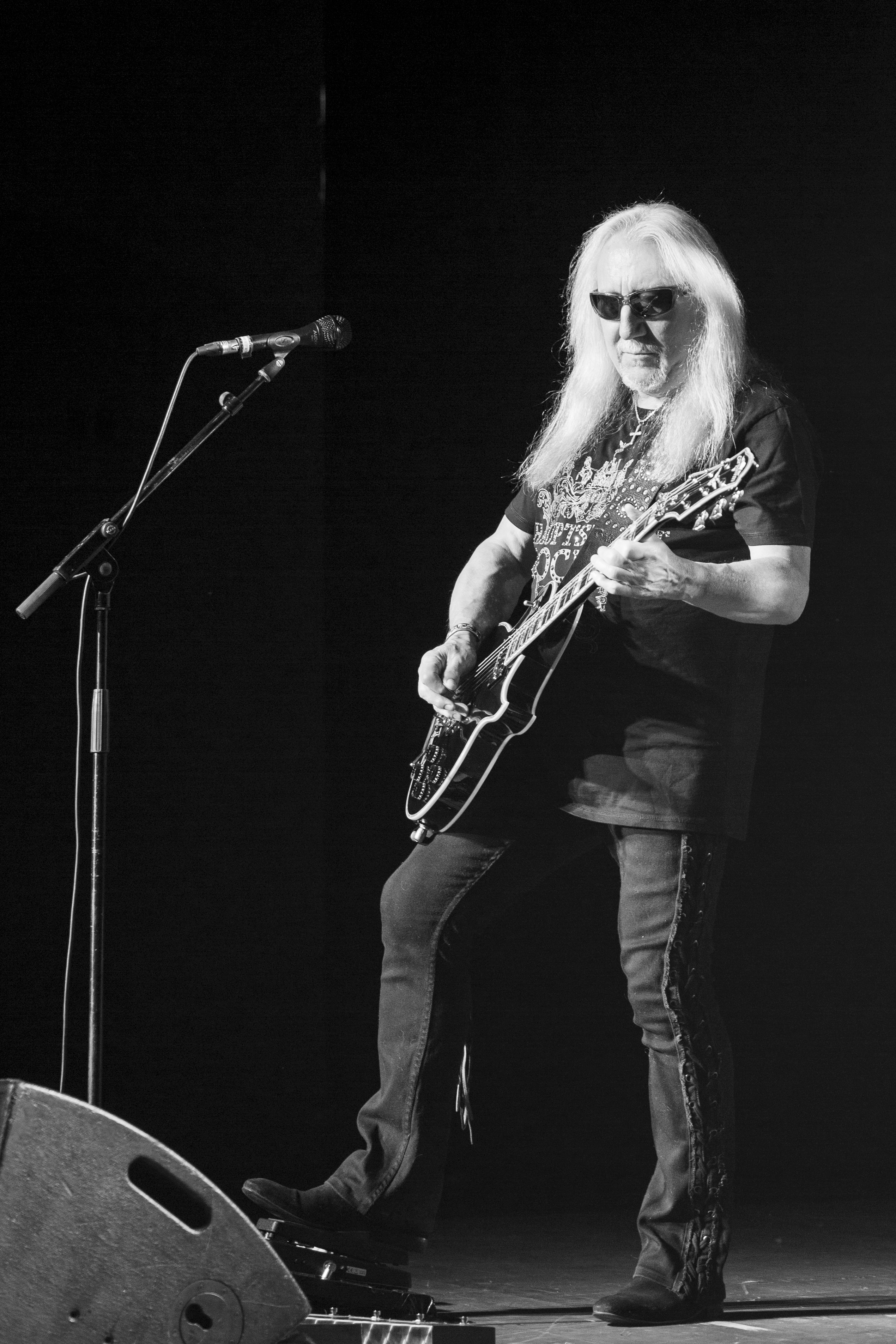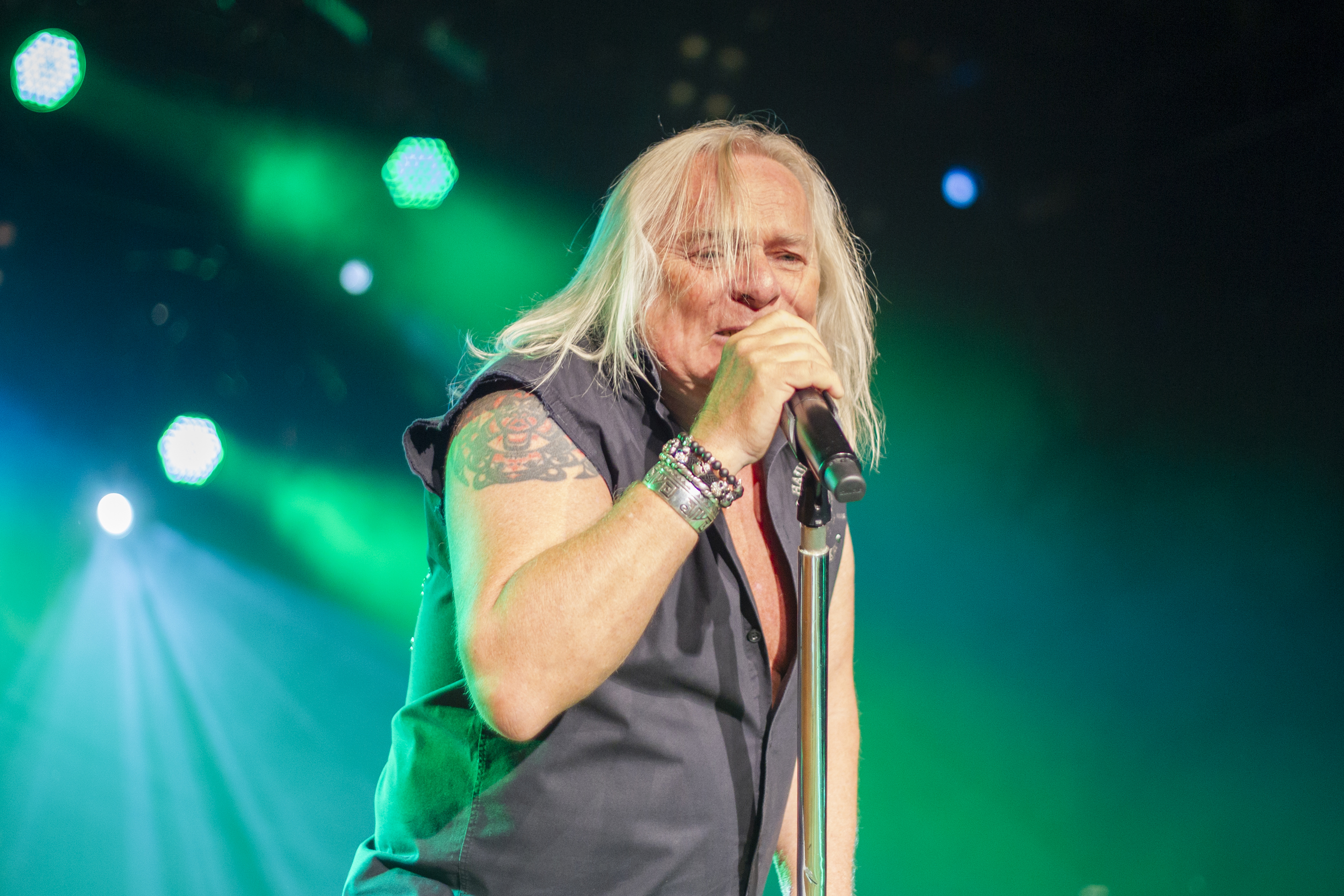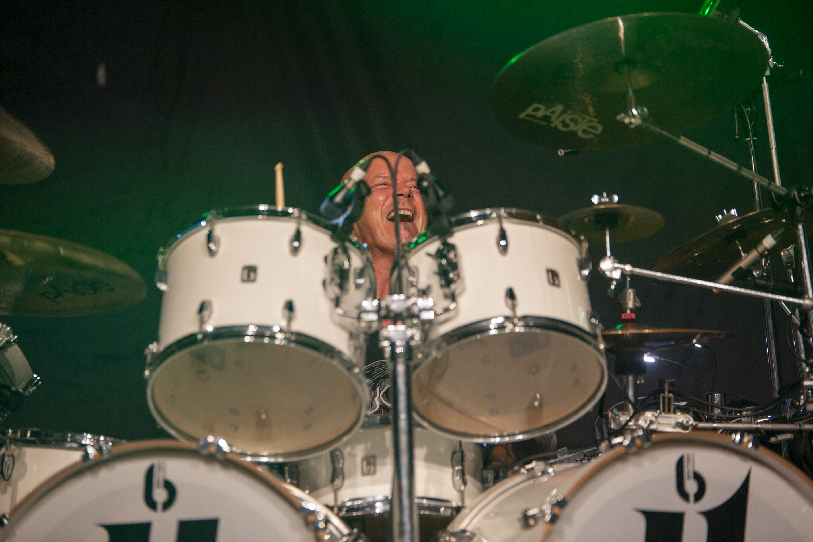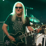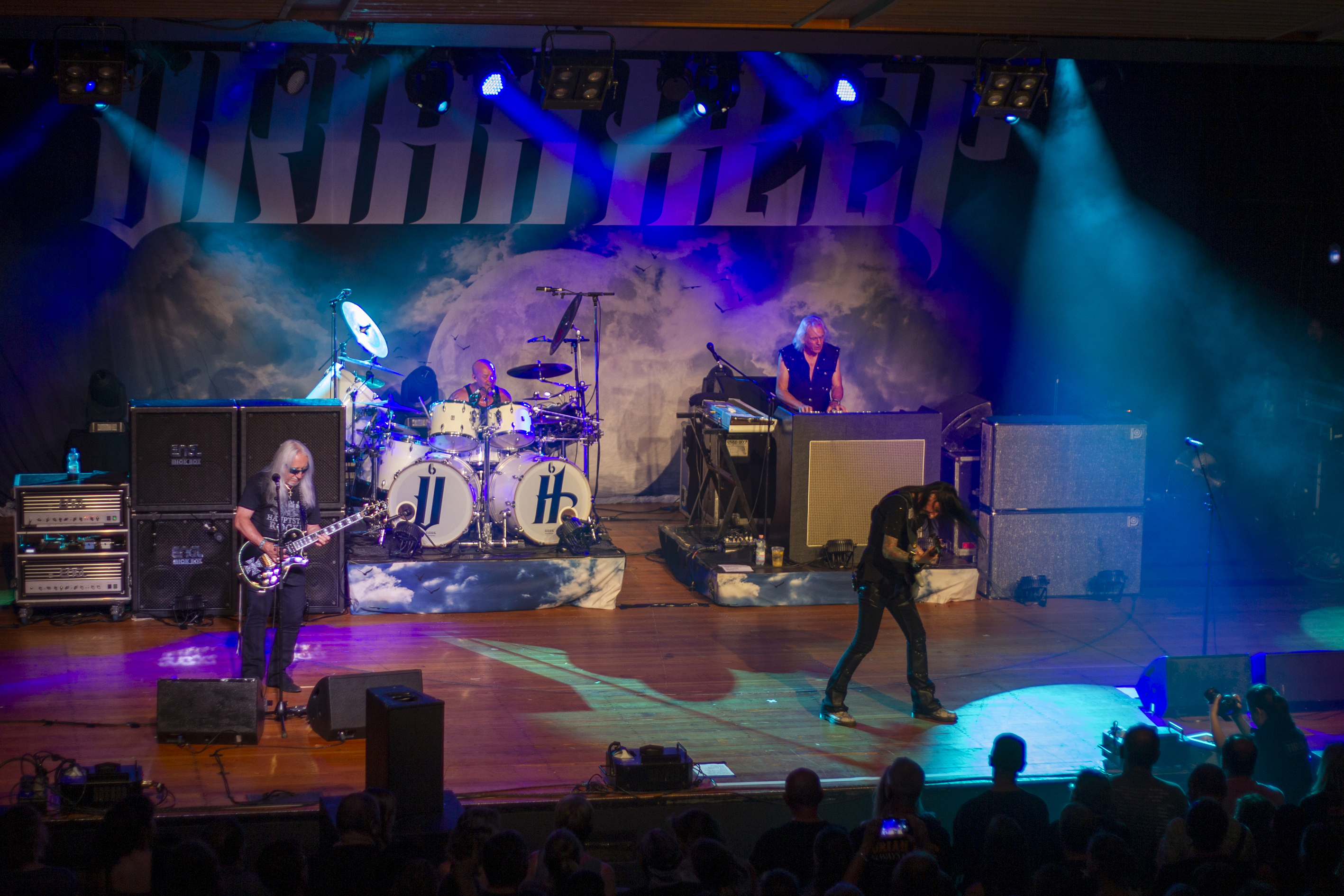 Doch bereits kurz danach ging es weiter mit URIAH HEEP die alle schon sehnsüchtig erwartet hatten. Trotz der Hitze im Saal machte es niemanden mehr etwas aus, als es los ging. Mick Box das Urgestein von URIAH HEEP an der Gitarre, top gestylt im Swarovski Outfit, mit langen weißen Haaren war der optische Lichtblick des Abends. Auch nach nunmehr 49 Jahren im Musik Business lassen URIAH HEEP auch heute noch so manchen Newcomer alt aussehen. Hits wie „Grazedby Heaven“ aus ihrer letzten CD von 2018, „Living in the Dream“ „Too Scared to Run“ und als absoluter Top Song „Lady in Black“ brachten den Saal zum Beben. URIAH HEEPs Frontman Bernie Shaw ist der absolute Showman und diese Gabe weiß er auch einzusetzen, um das Publikum mitzunehmen. Seine auf Deutsch gehaltenen Talks, machen diese Band so unwiderstehlich und man sieht, dass hier viele Jahre Rock´ n Roll gelebt werden und alle Freude und Spaß an der Musik haben. Bassist Davey Rimmer mit fliegenden Haaren, einem absoluten Top Posing und vielen blauen Leuchteffekten, bearbeitete seinen Bass, dass es eine Freude war ihm dabei zuzusehen. Sogar ich mit meinen nunmehr 59 Jahren konnte mich im Fotograben diesem Gänsehautfeeling nicht entziehen.