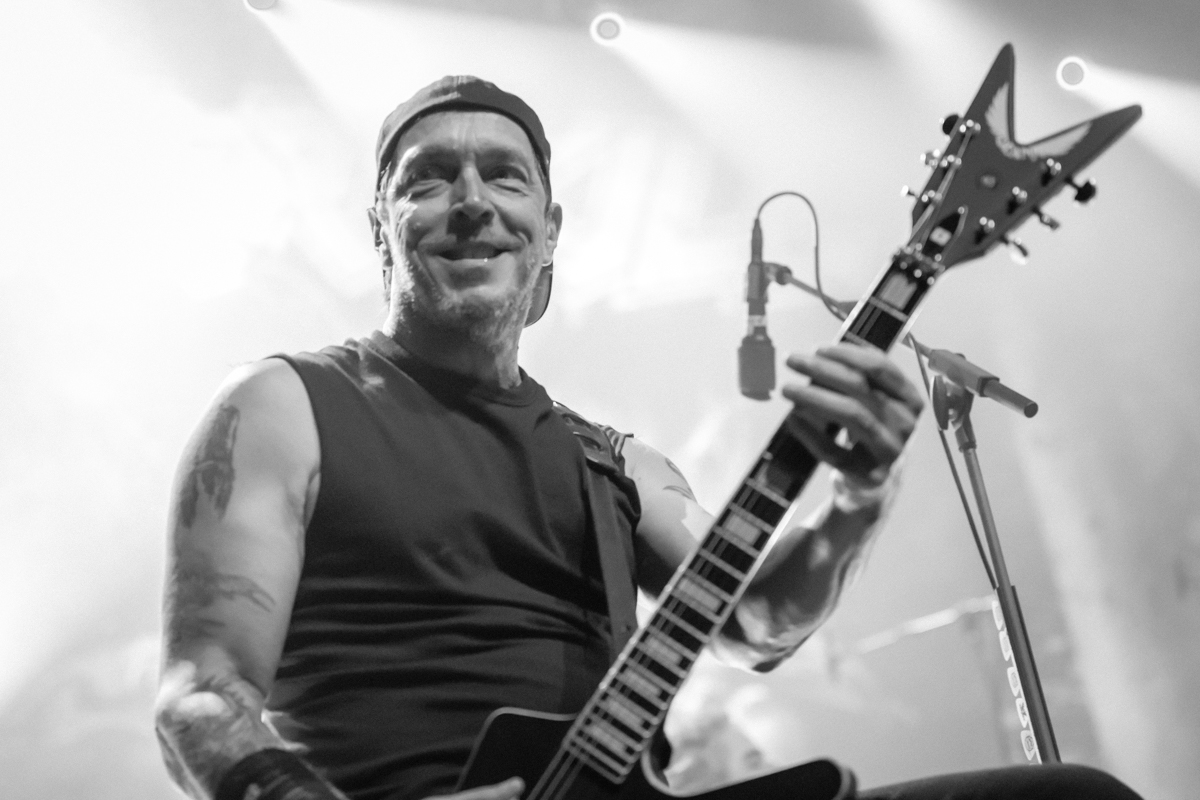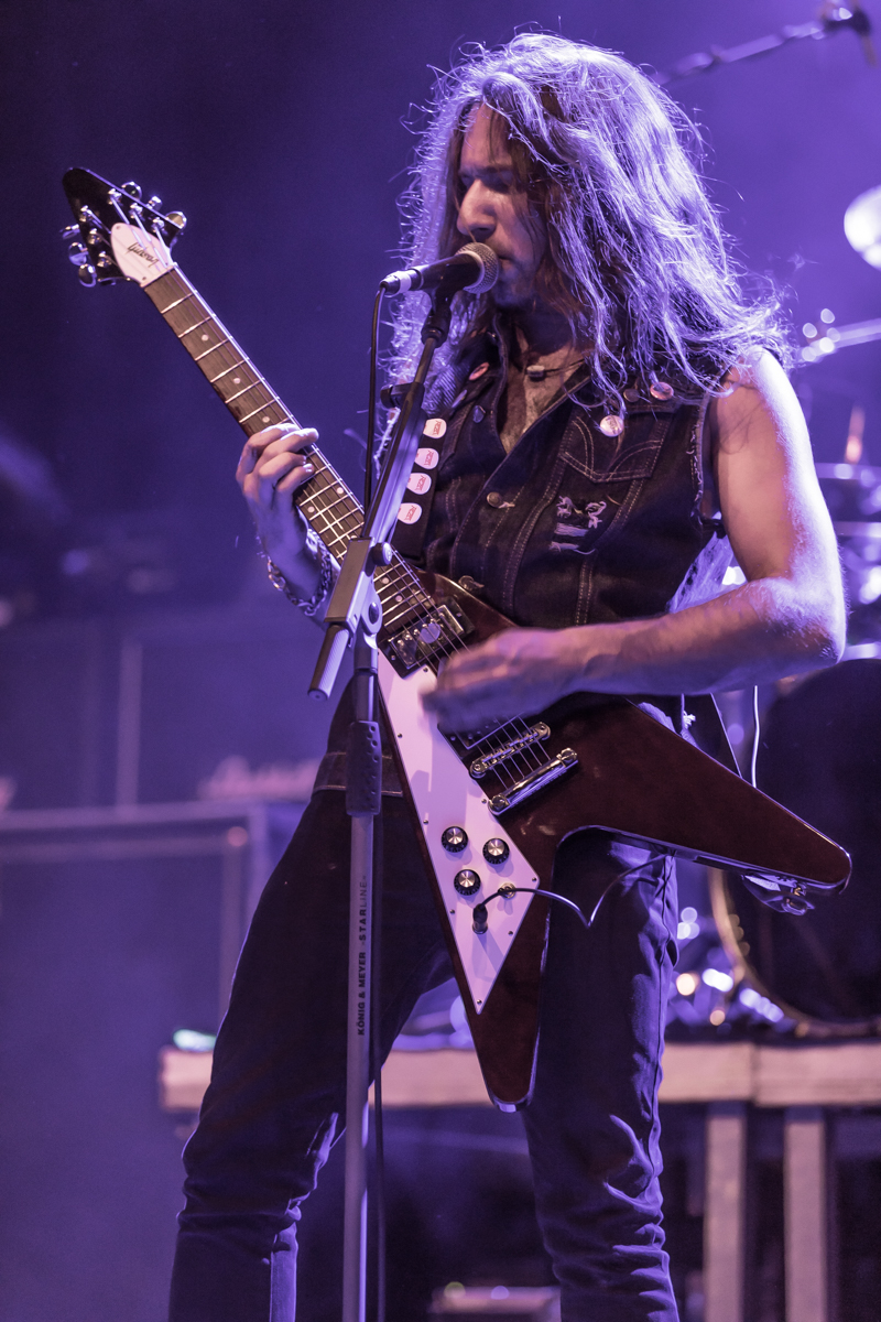 Der ergraute D.D. Verni, OVERKILL-Urgestein am Bass, ist dabei aber neben Blitz immer noch ein ständiger Unruheherd auf der Bühne, der die Blicke auf sich ziehen kann und einen knackigen Basssound ablieferte. Seine Bühnenpräsenz ist seit Jahren ungebrochen.