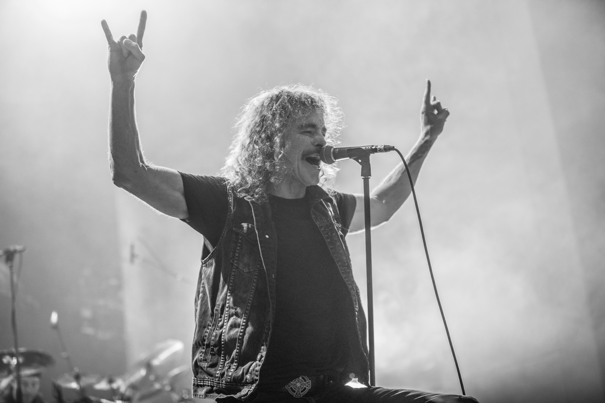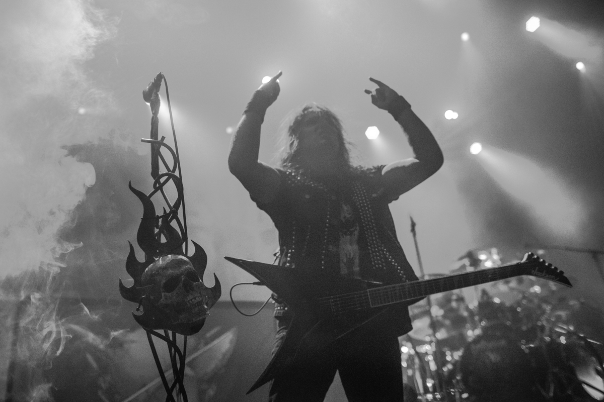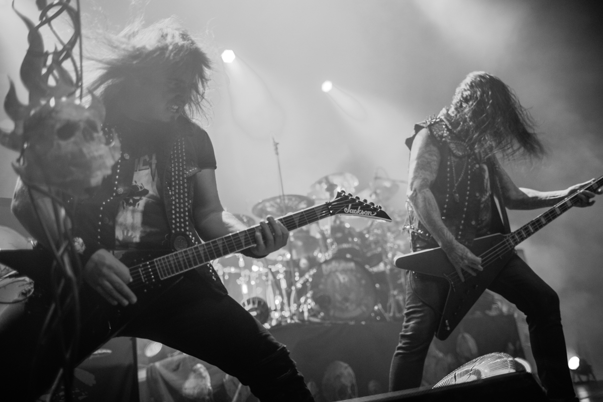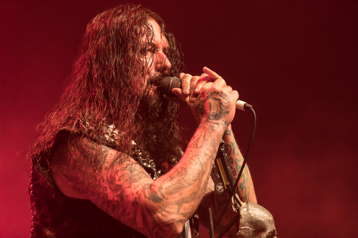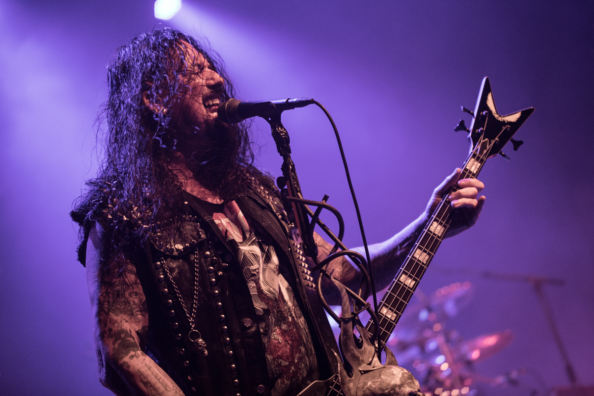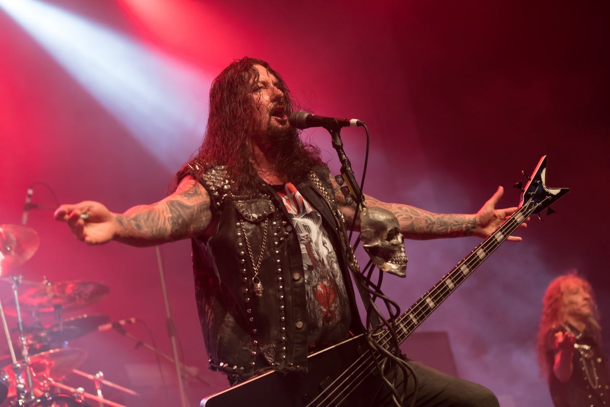 Belastend dann aber auch die Performance der Band an den Abend. Sänger Bobby „Blitz“ Ellsworth, sich mittlerweile mit einem Dschingis-Khan-Bart schmückend, feierte in 2019 seinen 60. Geburtstag. Die vielen Jahre „on the road“ seit den 80er Jahren kann man ihm im Gesicht deutlich ansehen. Müde, verraucht und voller Falten ist er, gezeichnet, aber dennoch bemüht. Gesanglich ist es nicht mehr wie früher, auch wenn man ihm einige Passagen mit den verwinkelten Tönen in den Songs gar nicht zutrauen würde.
