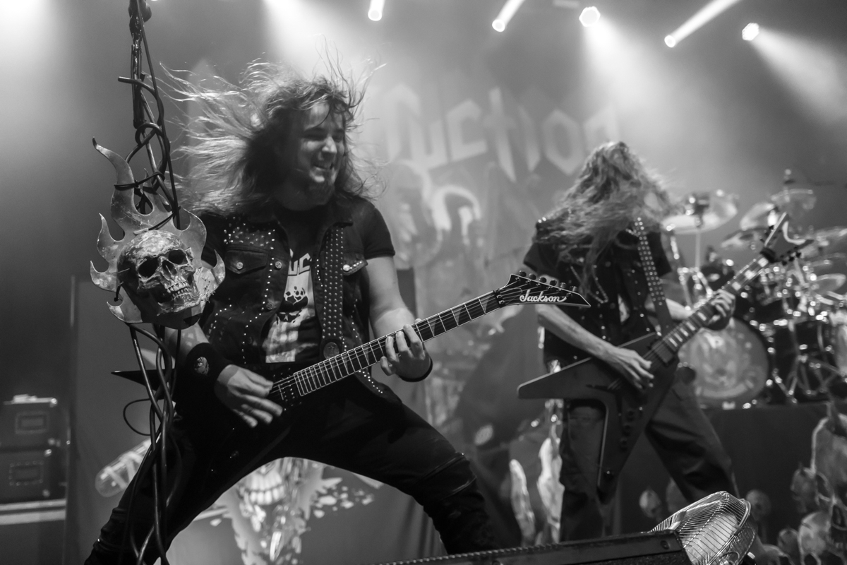 Zum ersten Mal sah ich das Trio live nun als Quartett agieren, denn Damir Eskić verstärkte die Truppe an der Gitarre. Er ist dabei kein Unbekannter bei DESTRUCTION, hat er doch für die 2016er-CD „Under Attack“ bereits drei Soli beigesteuert. Der Schweizer mit bosnischen Wurzeln ist Gitarrenlehrer und war einst Schüler des Coroner-Riffers Tommy Vetterli. Neben Destruction spielt er noch in der Metal-Gruppe GOMORRA. Schmier meinte einmal zu dem Zuwachs: „Er wird die Thrash-Maschine stark halten! Wir sind bereit für neue Abenteuer!“