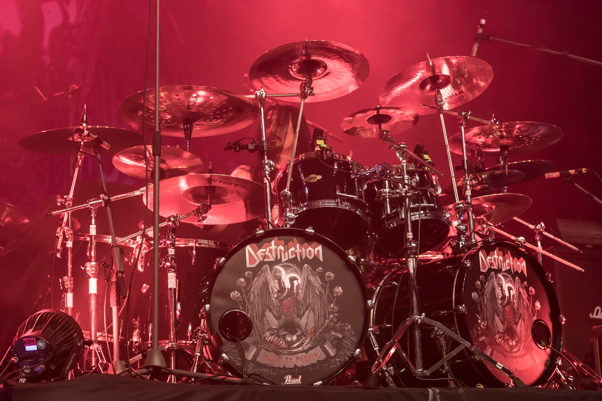Nach FLOTSAM & JETSAM wurde es Zeit für Marcel Schirmer, alias „Schmier“ und seine Konsorten. DESTRUCTION aus Weil am Rhein, sind ein deutsches Aushängeschild in Sachen Thrashmetal neben KREATUR und SODOM. Totenköpfe an den Mikroständern lehrten uns dann direkt das Fürchten.