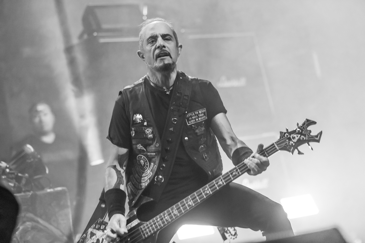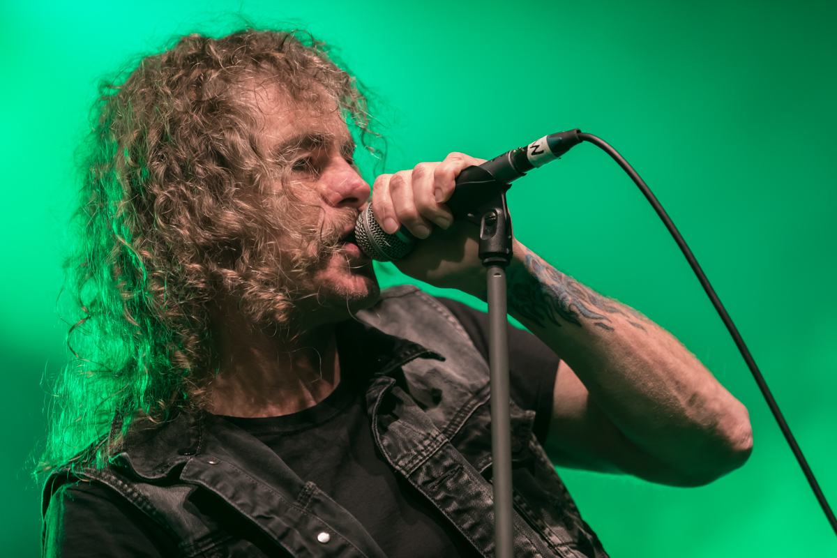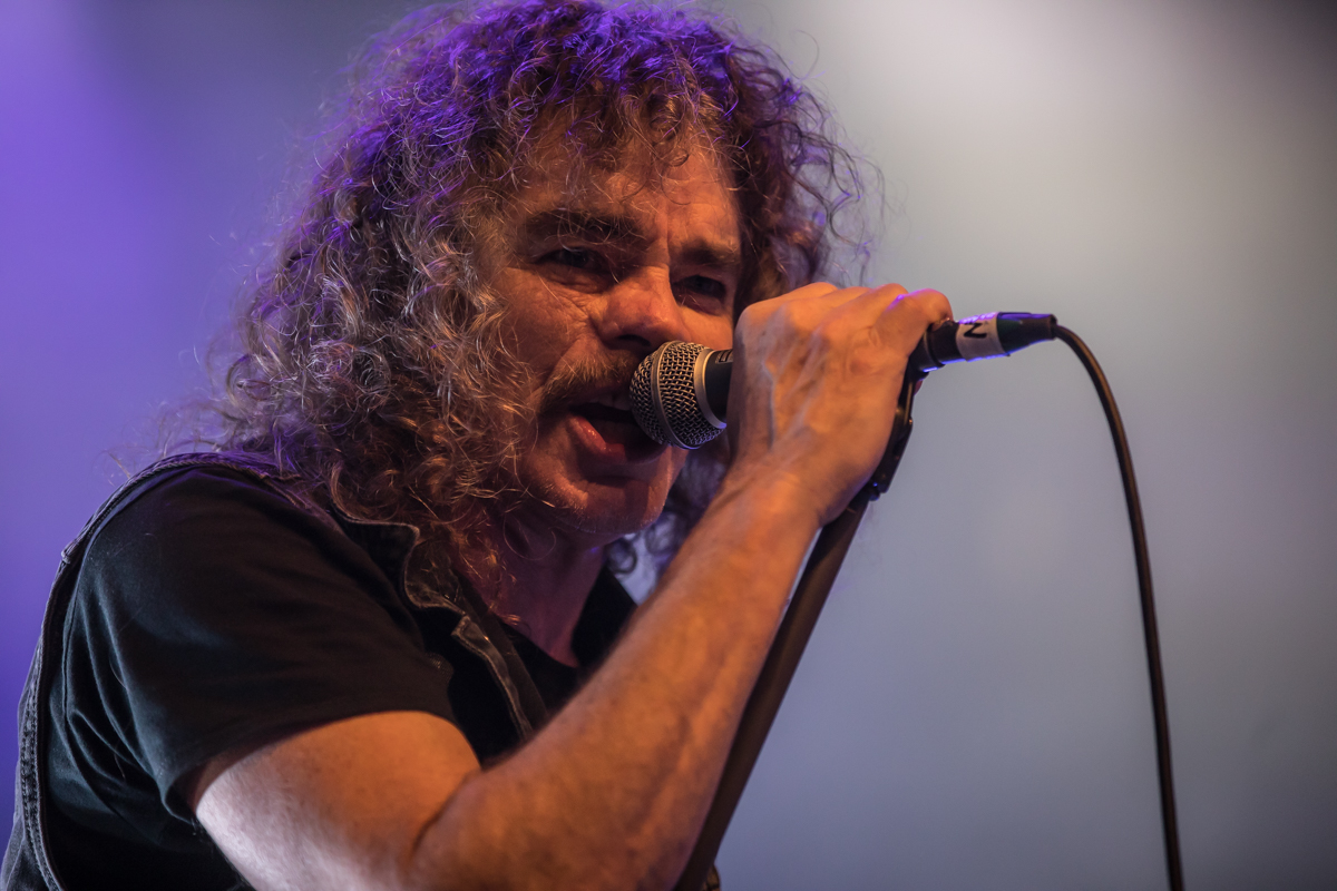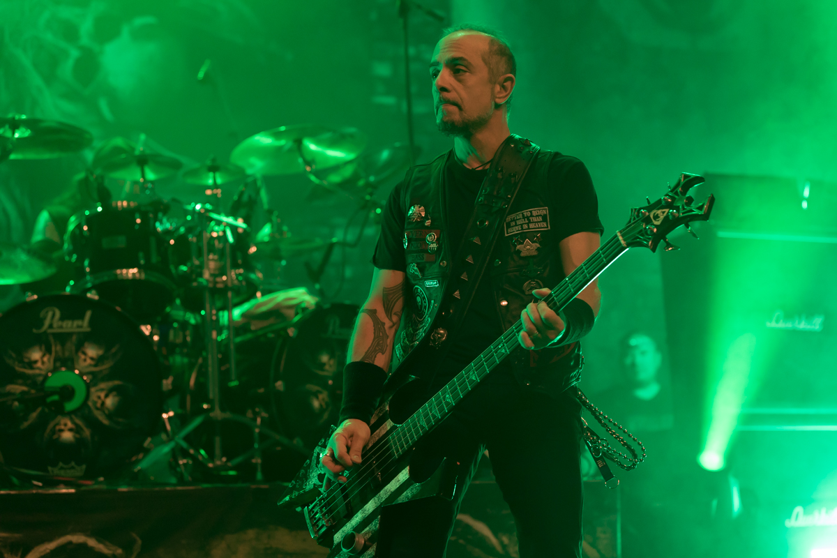Mittlerweile hatte sich die Halle weiter gefüllt. Es sind die alten Thrashbands der 80er, die sich nun ankündigten, so dass es nicht verwunderte, dass das Durchschnittsalter der Metalheads dort doch gefühlt über 50 gelegen hat. Richtige Stimmung wollte an dem Abend aber generell nicht aufkommen: Zu weit gefächert stand man vor der Bühne und konnte sich über mangelnde Beinfreiheit nicht beklagen.
