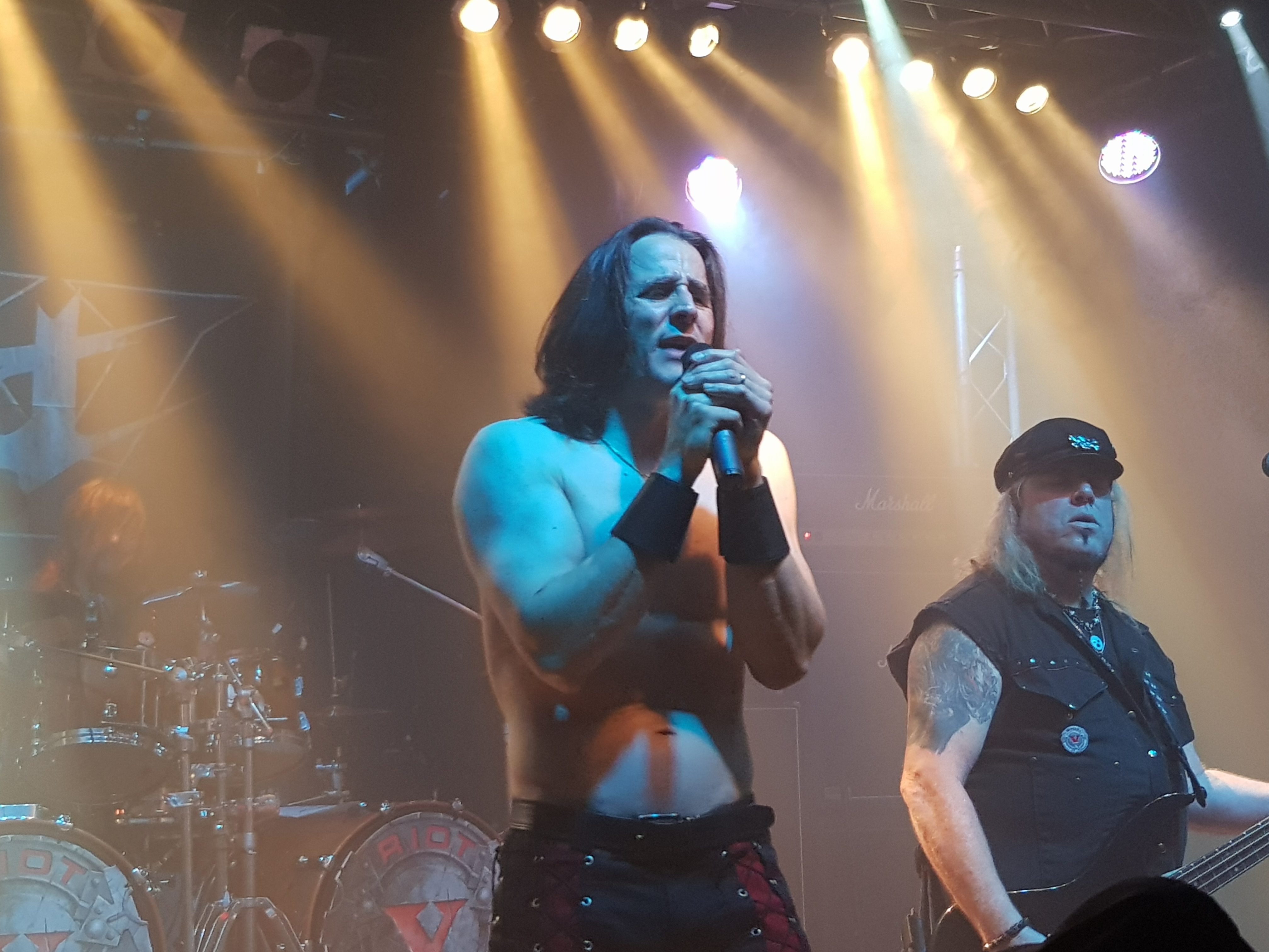Nach etwas mehr als 80 Minuten ging so ein fantastisches Konzert zu Ende…dieser Satz würde in Reviews zu Konzerten der meisten anderen Bands vermutlich an dieser Stelle stehen. Nicht so bei RIOT V, welche nach einer kurzen Pause mit „Bloodstreets“ zurückkamen und den zweiten Teil des Abends einläuteten. Und auch dieser hatte es in sich. Denn es folgten noch „Take Me Back“, „Victory“, „Flight Of The Warrior“, „Magic Maker“ (mit einem kleinen „You Burn In Me“-Verweis am Ende), „Black Leather And Glittering Steel““, „Metal Soldiers“ und „Bring The Hammer Down“. Als der sehr zur Freude der anwesenden Damenwelt mittlerweile oben ohne agierende Todd Michael Hall auch noch den Oberklassiker „Thundersteel“ ankündigte, gab es erst recht kein Halten mehr.
