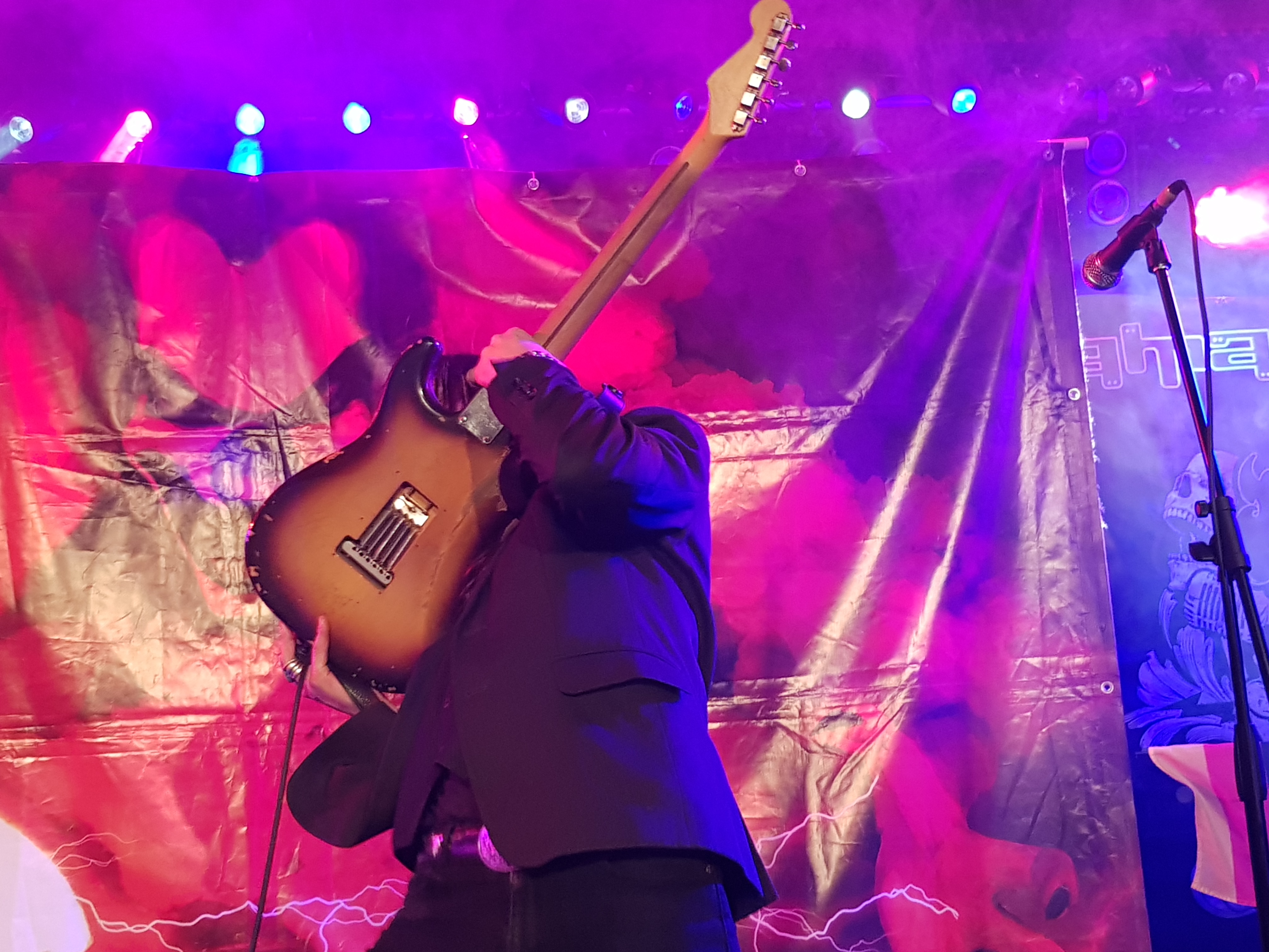 Sei es drum. Optisch waren AMALGAMA jedenfalls der absolute Brüller. Wir durften folgende Gestalten bei der Arbeit begutachten: Einen Zirkusdirektor am Mikro, Johnny Depp an der Klampfe, der Drummer kam wohl gerade vom Einkaufen, einen spät 80er Rocker am Bass und einen Killerclown (!!) an den Keys. Damit war AMALGAMA die Aufmerksamkeit der Menge schon einmal sicher.