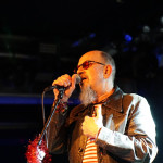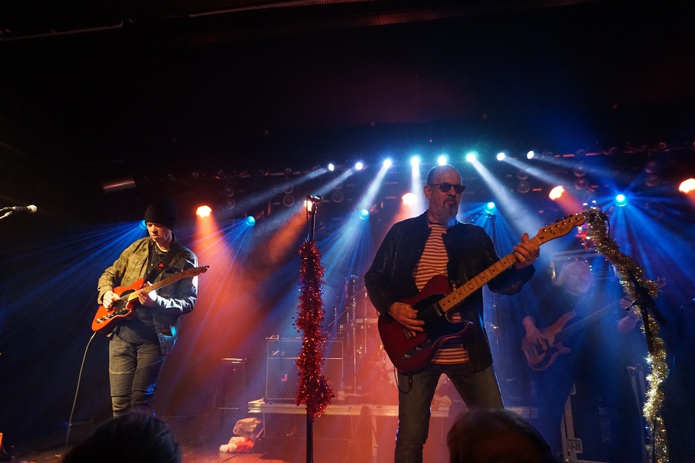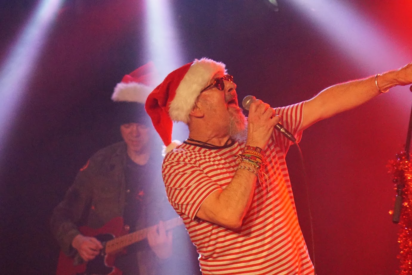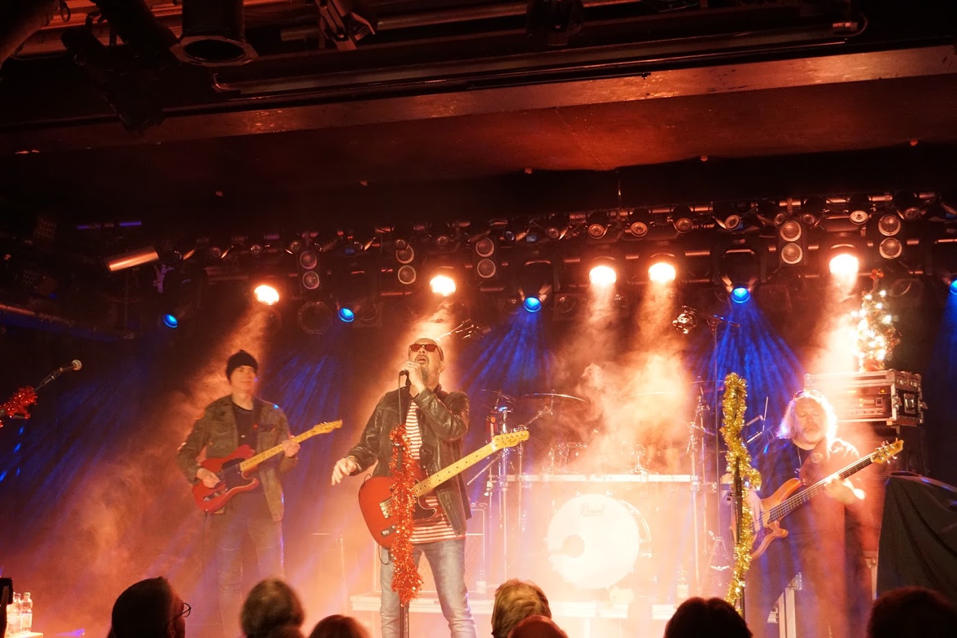 CHRIS THOMPSON hört man seine 71 Jahre an. Seine Stimme hat an Elastizität und Kraft eingebüßt und ist Lichtjahre entfernt von seiner glorreichen Vergangenheit. Mich stört dabei insbesondere, dass er das noch nicht wirklich verinnerlicht hat. So wird teilweise manche Nummer nahezu akapella performed, also die Vokals unbekleidet in den Fokus ("Blinded by the Light" , "For you" ) gestellt. Die Krux bzw. das Gute bei der Sache ist, dass das niemanden so wirklich zu stören scheint. Und das ist im Kern auch gut so. Das ordentlich gefüllte Colos-Saal trägt den gealterten Musiker, der mal mit, mal ohne Gitarre, mal mit, mal ohne Nikolausmütze bestens gelaunt unsterbliche Klassiker nacheinander raushaut. Es wird lautstark mitgesungen, geklatscht, gejohlt und gefeiert, als ob die Zeit ihm wie auch den Songs nichts anhaben kann. Auch wenn ich das eine Spur realistischer beurteile, erkenne ich doch, dass das Publikum hier alles richtig macht. So denke ich, bis auf ein, zwei Kritiker und den Rezensienten hatte niemand hier im Aschaffenburger Kultschuppen etwas zu bemängeln, und der überwiegende Teil genoss einen Abend mit einer leidenschaftlichen und gut eingespielten Band sowie einer der prägenden Stimmen des Classic Rock.