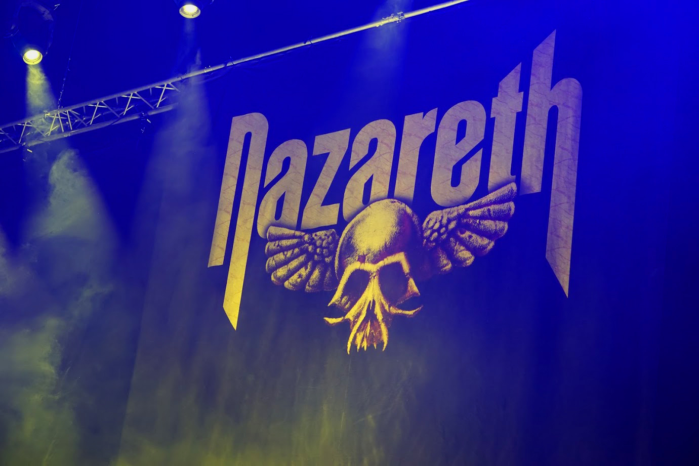 Als nächstes dürfen die Schotten von NAZARETH die Bühne entern. Zuvor lädt Andy Scott (SWEET) zu einer kleinen Gesprächsrunde mit Mick Box und Bernie Shaw. Das wird bei jeder Umbaupause in wechselnden Besetzungen zelebriert. Das ist launig und macht Spaß, aber es ist nur ein "nice to have" und bei weitem kein großer Mehrwert. Auch weil viele Zuschauer diese Pause nutzen, um Getränke zu holen, zu rauchen, zum WC zu gehen oder dem Merch Stand einen Besuch abzustatten, und so doch viele Stühle unbesetzt sind.