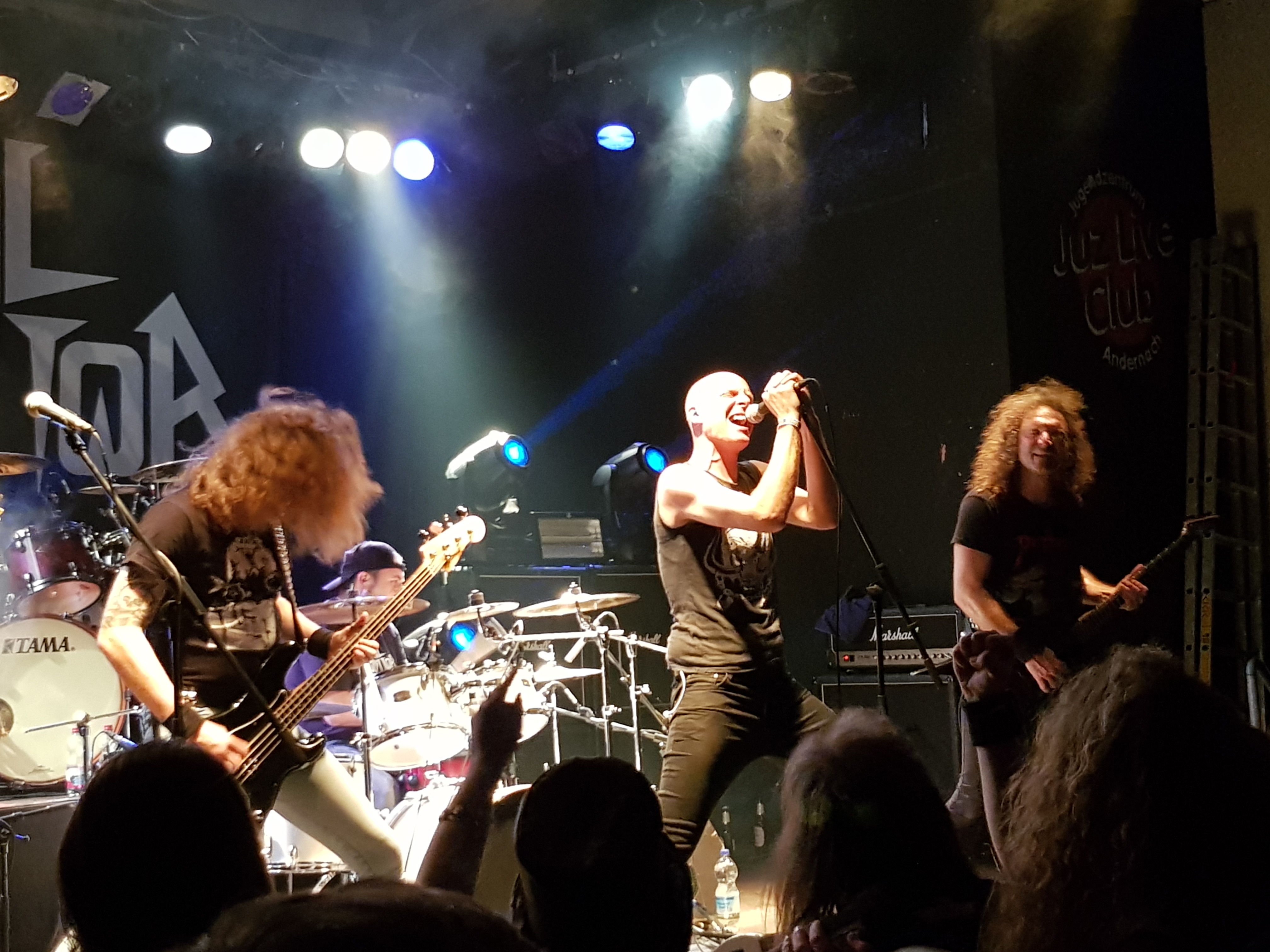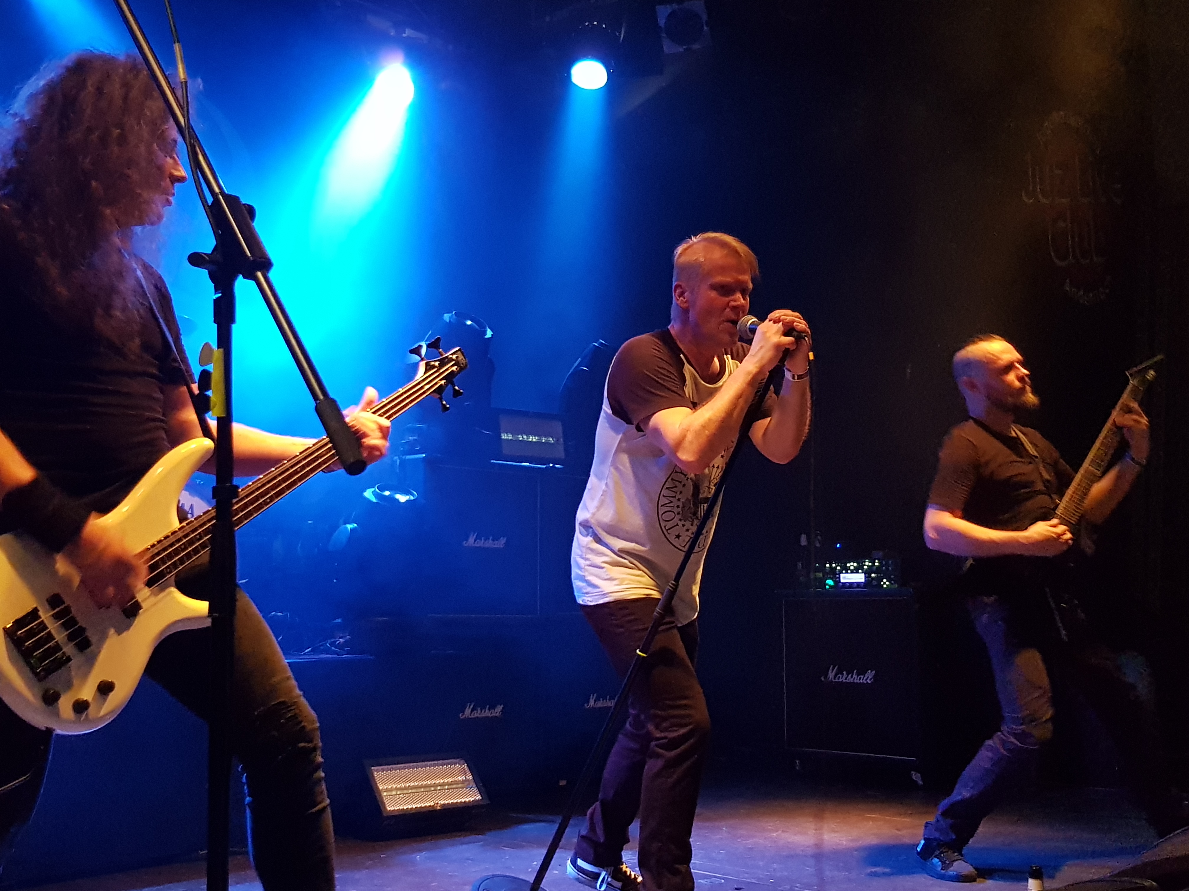 Die folgenden ANGEL DUST waren dann von einem ganz anderen Kaliber. Deren letzte Platte ist auch schon unglaubliche 19 Jahre alt. Fronter Dirk Thurisch sieht mittlerweile aus wie der Zwilling von TRANCE / MANILLA ROAD Drummer Neudi und es gab wieder einmal recht spontane Line-Up Wechsel, dennoch standen ANGEL DUST voll im Saft und kredenzen den Anwesenden einen bunten Strauß aus Songs aus ihrer zweiten Schaffensphase. Die Speed / Thrash Ur-Phase wurde zwar mal wieder ausgeklammert, jedoch stellte Gitarrenhexer Bernd Aufermann in Aussicht, dass sich das bald ändern wird, sobald sich der neue Bassist auch diese Songs drauf geschafft hat. „Addicted To Serenity“, „Let Me Live“, „Nightmare“, „Border Of Realiy“ oder das SAVATAGE-artige “Bleed” wurden jedenfalls richtig abgefeiert. Thurisch‘ Stimme ist keinen Tag gealtert und Bernd Aufermann lässt seine Finger Malmsteengleich über das Griffbrett flitzen. Und für 2020 wurde tatsächlich ein neues Album versprochen. Zeit wird’s, die Herren.