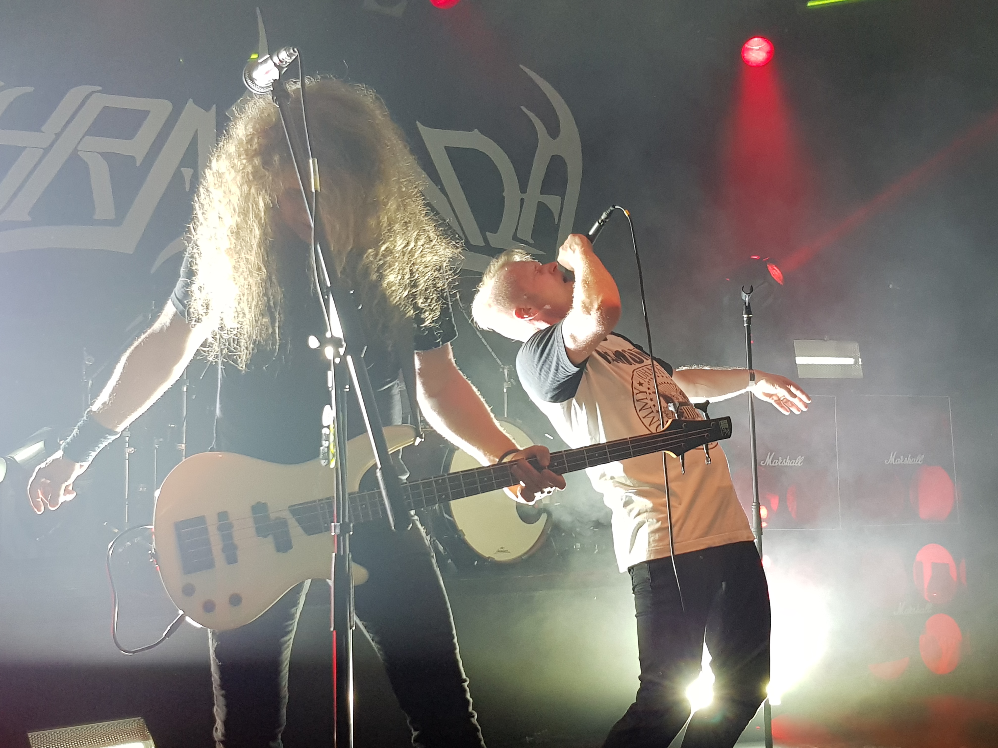 Mit dem Thrasher „Challenge Cup“ erwischten PYRACANDA einen Start nach Maß und sofort viel auf wie tight und professionell die Band auch heute agiert. Die „kleine“ Pause von ca. 27 Jahren fiel nicht wirklich auf. Gerade Neven war kaum zu bremsen und tobte wie ein Derwisch über die Bühne. Bei „Two Sides Of A Coin“ wurde es dann etwas moderner und grooviger, aber mitnichten weniger kraftvoll. PYRACANDA wurden bejubelt und auch das Mitsingspielchen bei „Delirium Tremens“ funktionierte nach kleiner Einweisung ziemlich gut. Mein persönlicher Liebling „Democratic Terror“ sollte an vierter Stelle folgen. Das an alte ICED EARTH gemahnende Galoppel-Riffing in Verbindung mit EXODUS like Speed ist einfach nur geil. „Music to crash your car to!“