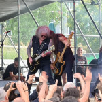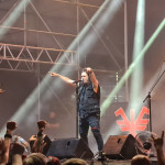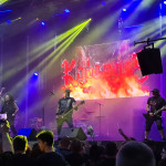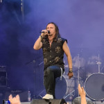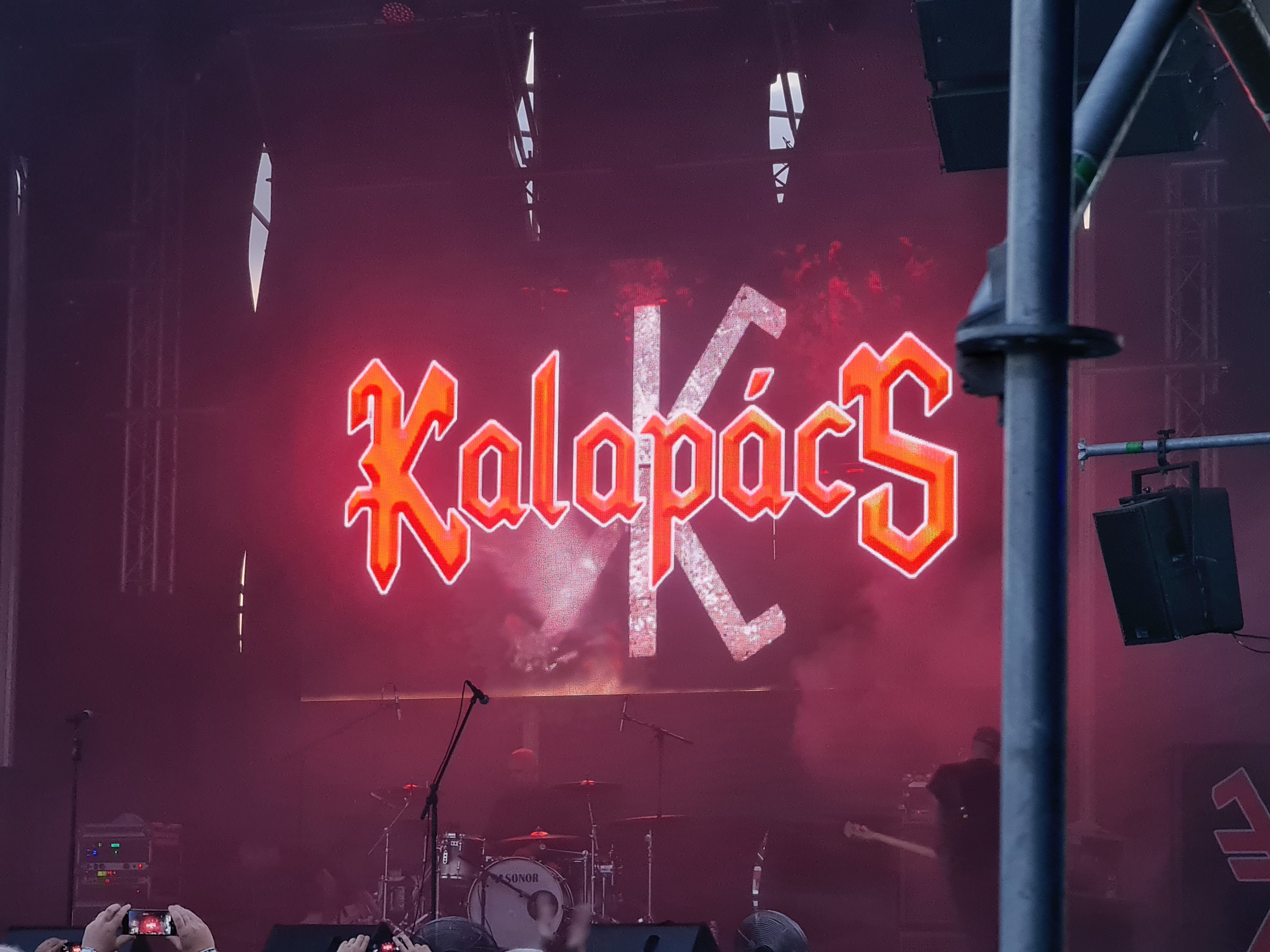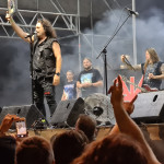 József Kalapács hat nicht nur in Ungarn Metal-Geschichte geschrieben. Neben diversen kleineren Projekten kennt man ihn vor allem als ersten Sänger von POKOLGÉP und OMEN. Aber auch mit seiner Soloformation KALAPÁCS ist er seit nunmehr 20 Jahren sehr erfolgreich unterwegs. Mit dem speedigen „Nem Az A Harc“ gelingt dem Veteranen ein Einstand nach Maß. Die knapp 1000 Zuschauer sind sofort auf der Seite ihres Helden und singen lautstark jede Zeile mit. Das macht schon richtig Laune. Als an fünfter Stelle die erste POKOLGÉP-Nummer „Pokoli Színjáték“ im Set ertönt, wird klar, dass hier heute aber auch gar nichts anbrennen wird. KALAPÁCS profitieren augenscheinlich davon, dass man seit 2000 ohne Besetzungswechsel ausgekommen ist, denn das Zusammenspiel der Akteure ist traumhaft, und alle Beteiligten strotzen nur so vor Selbstbewusstsein. Als dann langsam die Sonne hinter dem Horizont verschwindet, kann auch endlich die Lightshow ihr volles Potential entfalten. Die Ballade „Angyal“ sorgt für viel Emotionen, während Uraltkracher wie „A Jel“ das Letzte vom Publikum fordern. Aber auch eine neue Nummer wie „Úgy ítélj“ fügt sich perfekt in das Jubiläums-Set ein. Zwischendrin wurde noch kräftig gratuliert, sowohl zum Band-Geburtstag als auch zum wohl sehr erfolgreichen neuen Album „Világvégre“. Der Abschluss wird mit „Itélet Helyett“ dann noch einmal besinnlich, ruhig und dennoch kraftvoll.