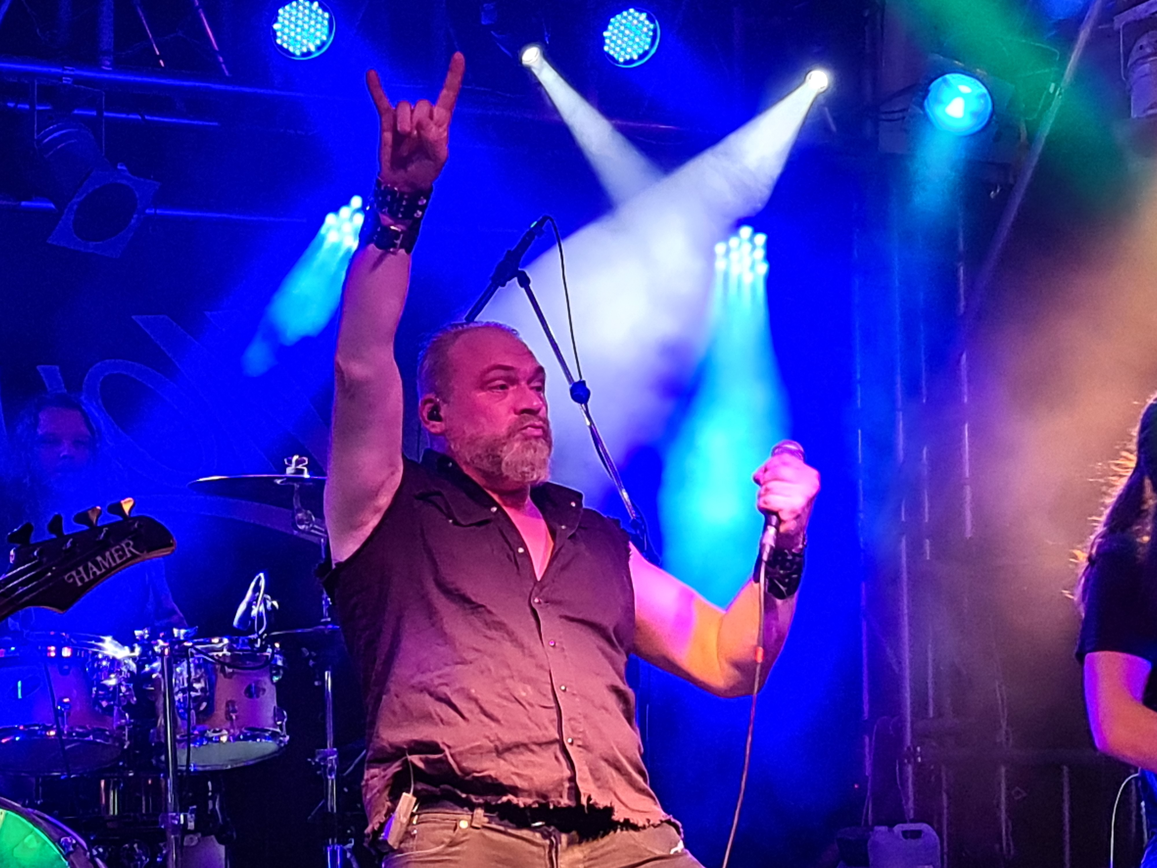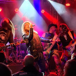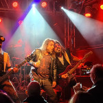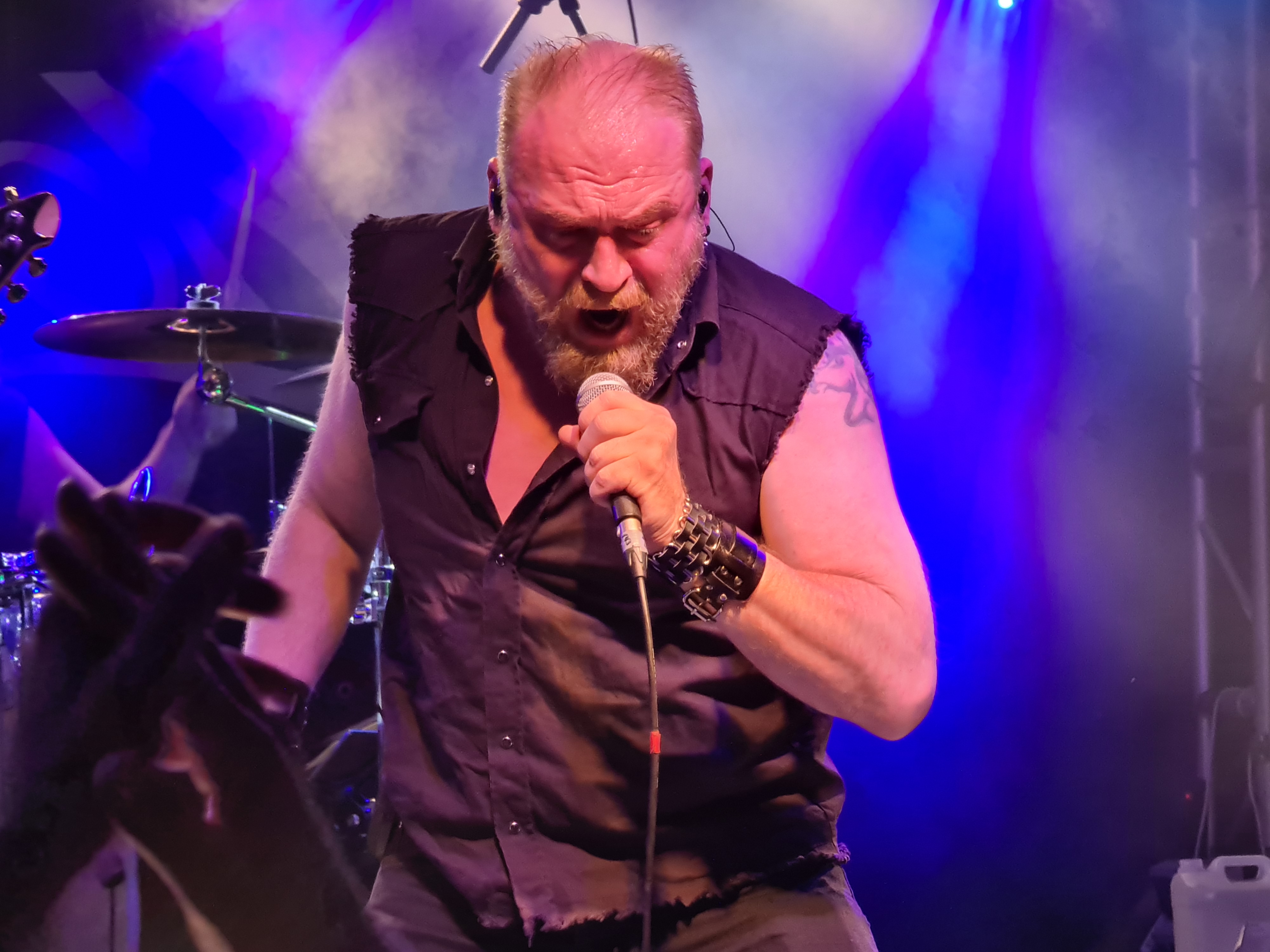 Sänger Michael Seifert ist neben Tommi das einzige verbliebene Gründungsmitglied und verbreitet mit seiner ultratiefen Stimme mittlerweile ein wenig Märchenonkel Flair. Getreu dem Motto „So böse, wie er klingt, ist er gar nicht“. Im weiteren Verlauf kamen natürlich auch die Wikinger mit z. B. „Sweden“ oder „Arise“ zum Zuge. Die gesamte Band legte sich mächtig ins Zeug und besonders Göttlich war nach einigen Minuten schon nassgeschwitzt. Gegen Ende buddelten REBELLION noch einmal tief in der Mottenkiste hauten der hungrigen Meute „Letters Of Blood“, „Born A Rebel“ und das unverwüstliche „Rebellion (The Clans Are Marching)“ vor den Latz. Gerade in diesem letzten teil gefiel mir Sänger Mike am besten, da er plötzlich seine stimmlichen Untiefen verließ und variabler agierte. Gerne mehr und öfter hiervon.