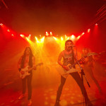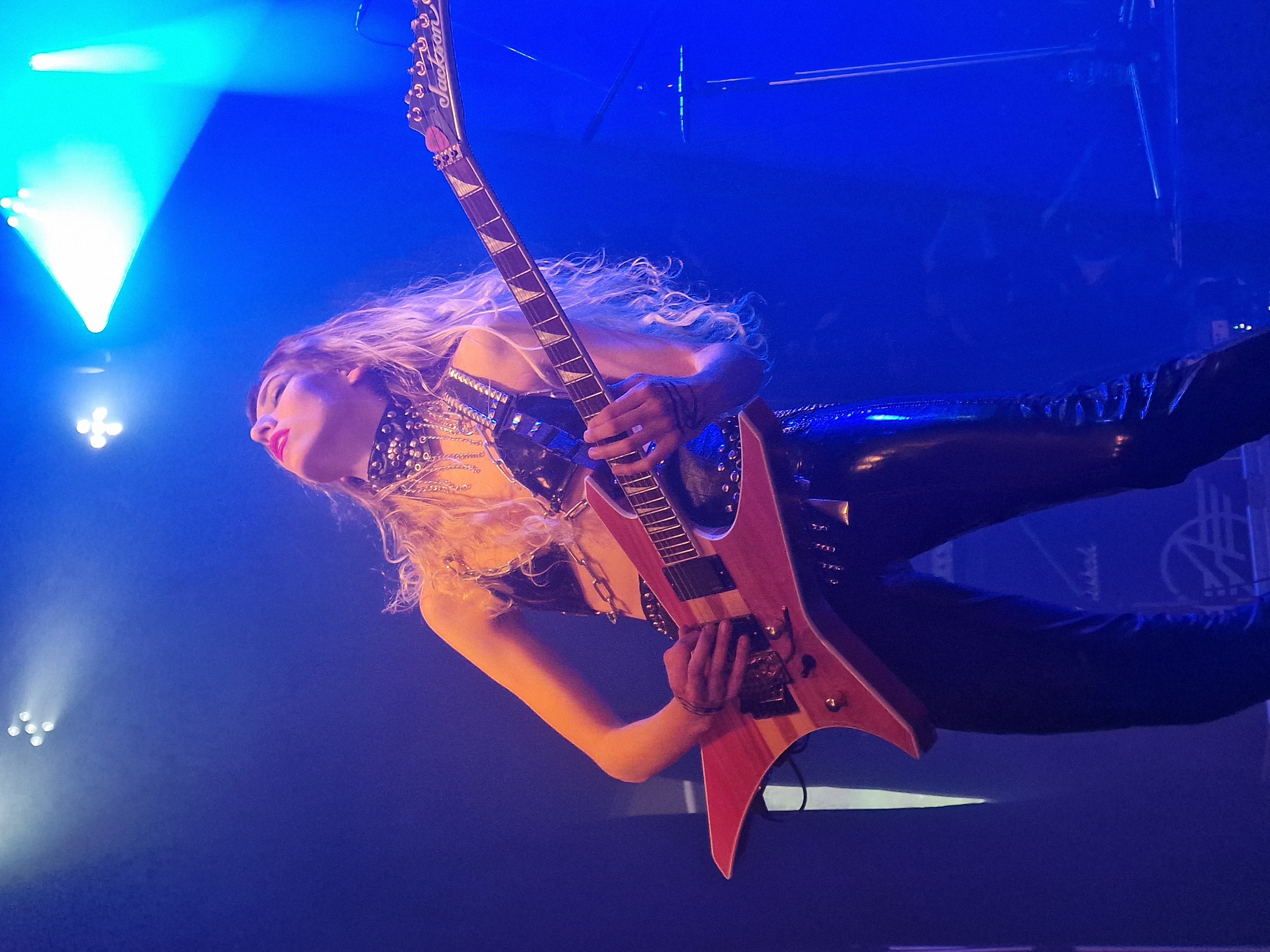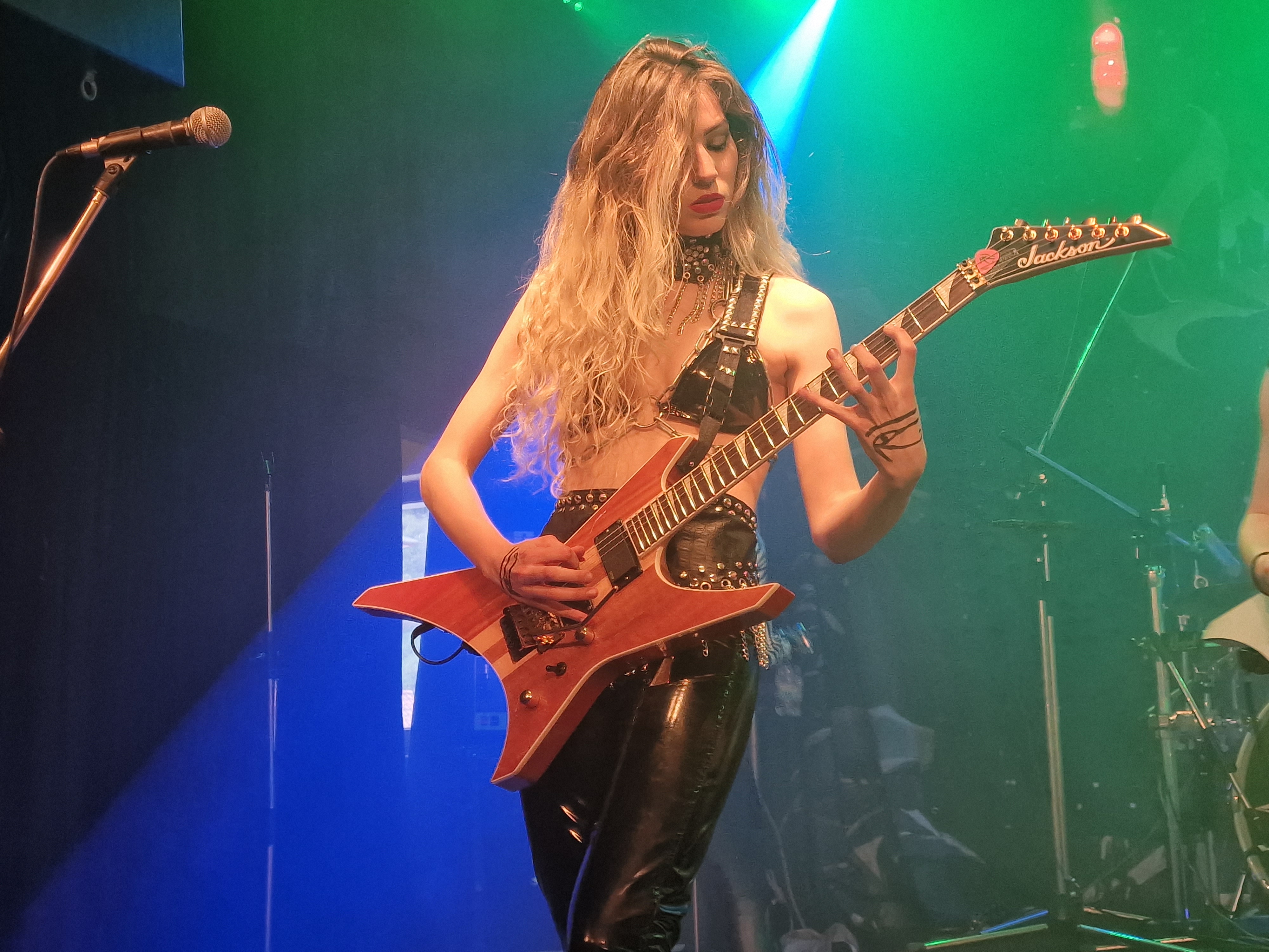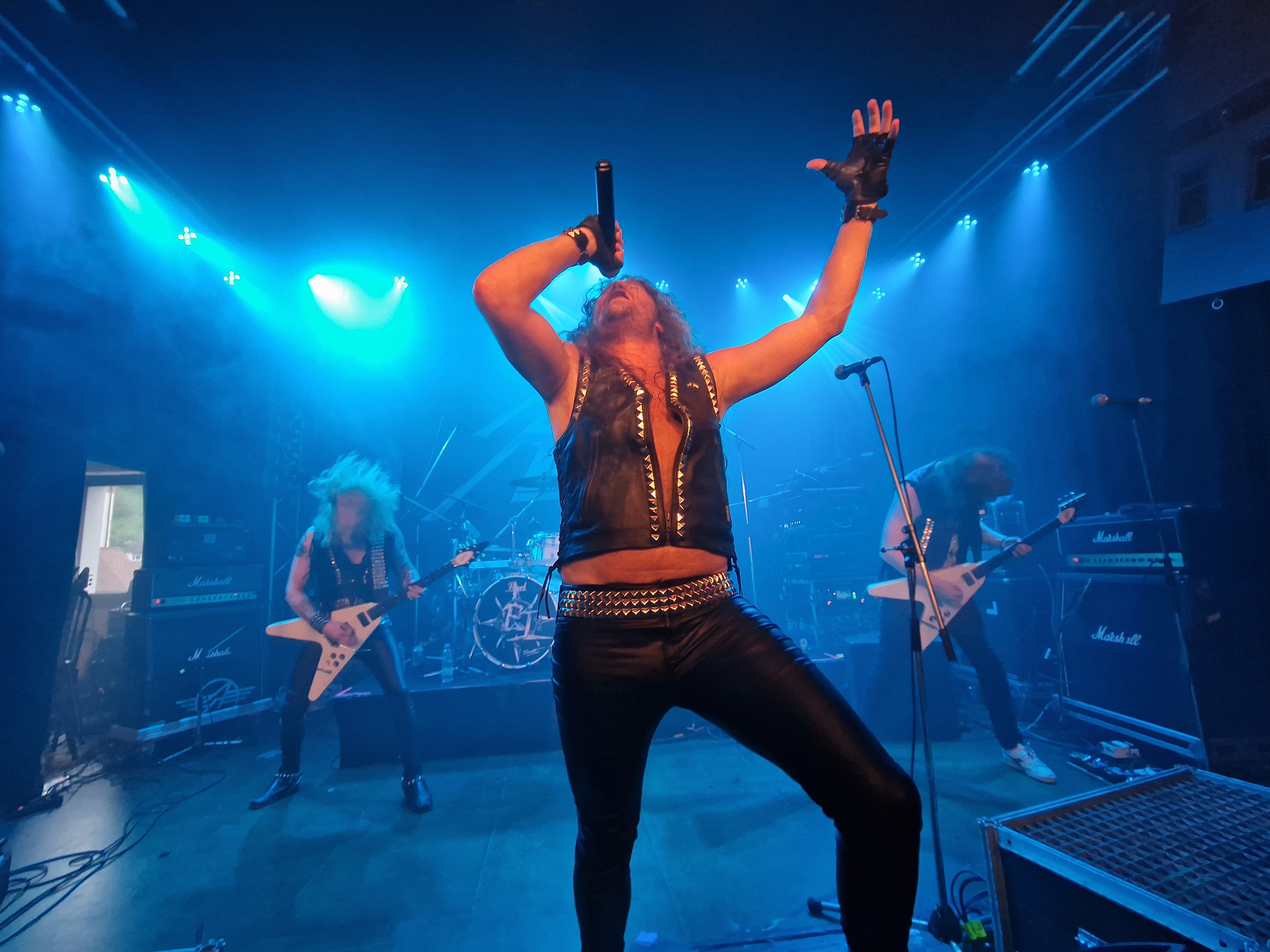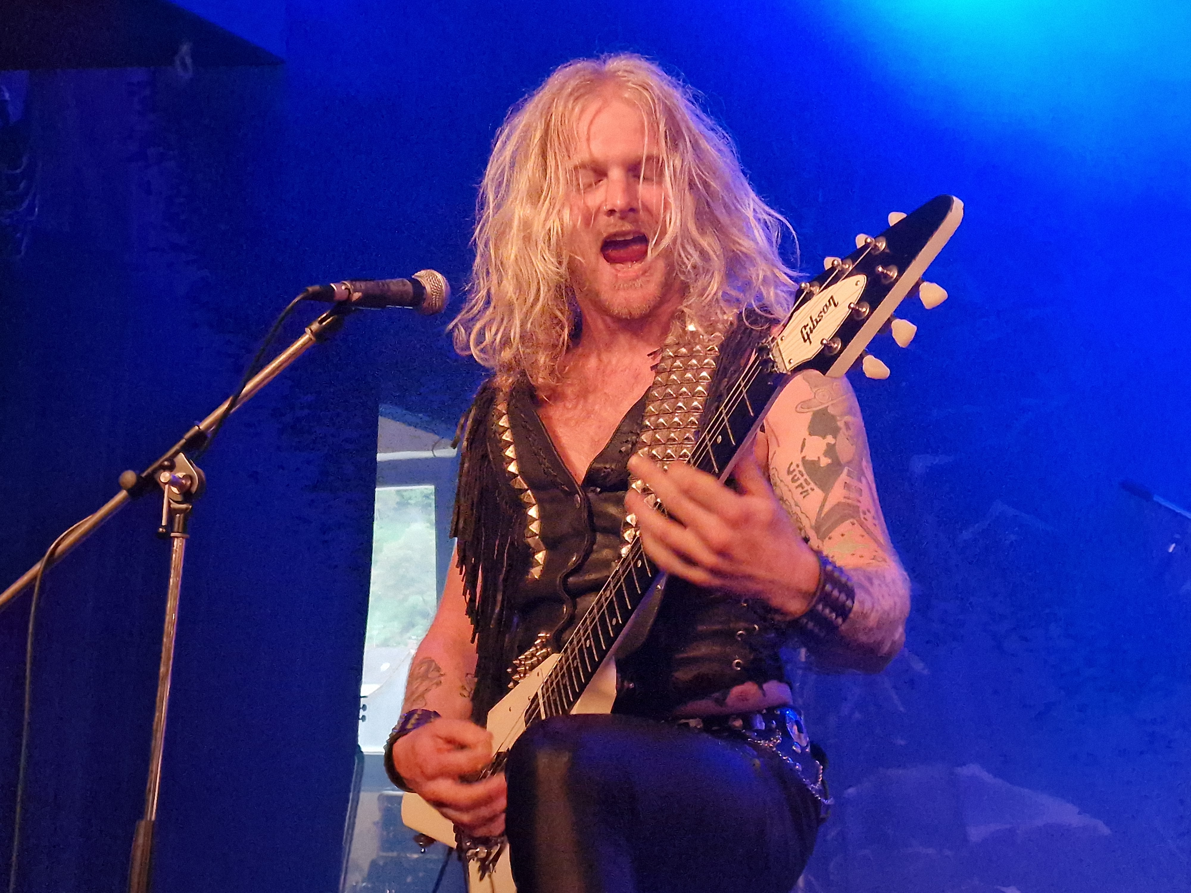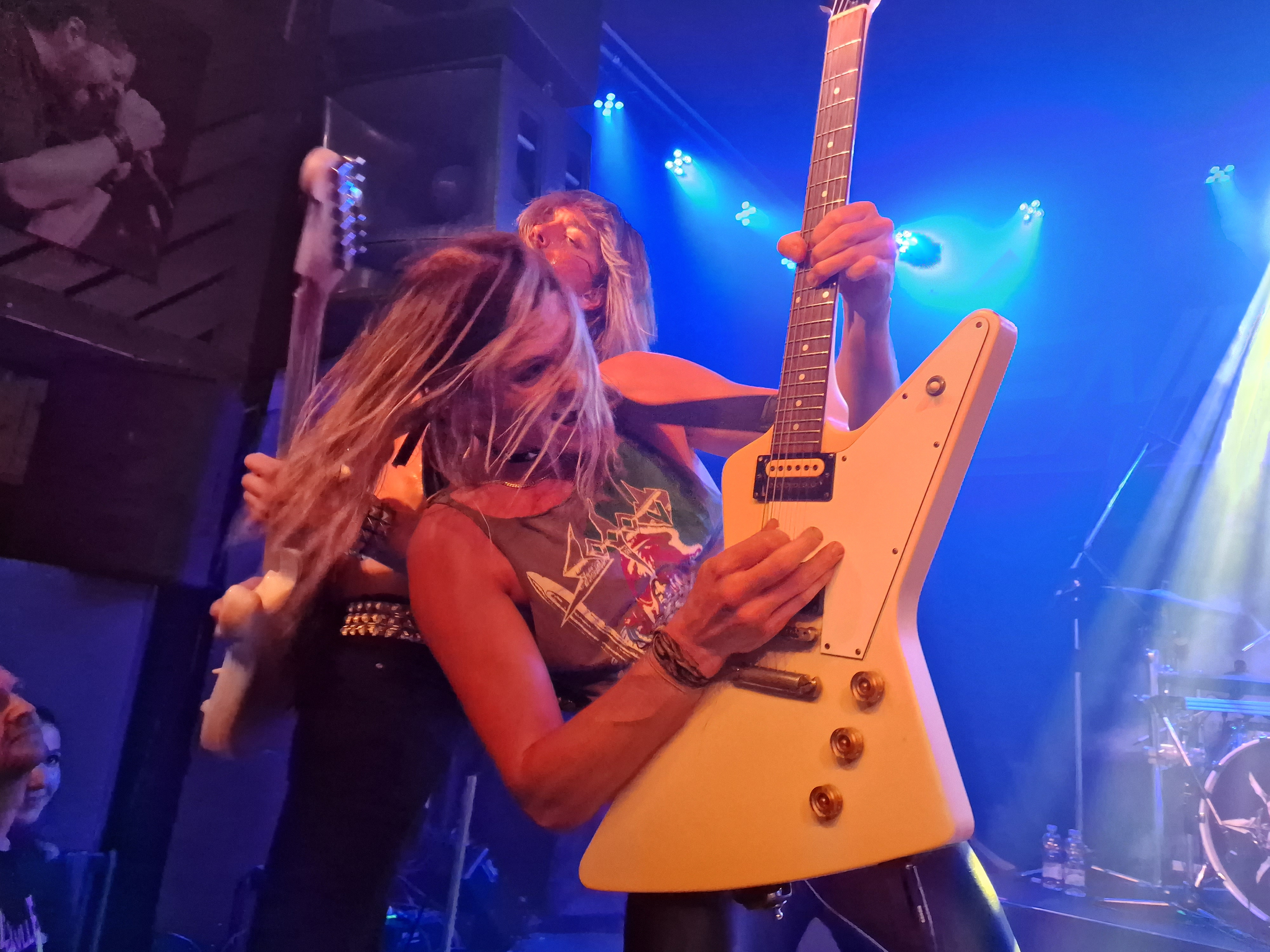 Den Anfang machten COBRA SPELL. Ganz ohne auf die aktuellen Ereignisse Bezug zu nehmen kommt dieser Bericht leider nicht aus. Natürlich mutet es seltsam an, wenn es während einer laufenden Tour und kurz nach einer EP, zu drei Personalwechseln kommt (Drummer Leonard ist zwar noch dabei, verlässt die Band aber am Ende der Tour,) von denen mindestens einer mit ordentlich schmutziger Wäsche einherging. Mir obliegt es nicht zu urteilen, denn ich war nicht hinter den Kulissen dabei. Dennoch ist die leidige Personalfrage zumindest sehr unglücklich abgelaufen. Und natürlich hinterlässt das auf der Bühne Spuren. Denn eine Einheit sind COBRA SPELL noch lange nicht. Deshalb wäre zumindest ab jetzt eine personelle Kontinuität extrem wichtig. COBRA SPELL versuchten das zu kaschieren, indem sie ihre Show sehr strikt durchtakteten und durchchoreographierten. Dadurch wirkte das ganz aber auch geschauspielert und ließ mitunter die Authentizität missen. Auch neigte man zum „Overacting“. Und gerade das doch sehr plakative W.A.S.P. Cover „Animal (Fuck Like A Beast) nehme ich den Ladies nicht wirklich ab. Das klingt jetzt zwar alles sehr negativ, es soll hier aber kein Verriss werden, denn der an old DOKKEN Härtegrade angelehnte Sound von COBRA SPELL macht mir durchaus Laune und COBRA SPELL gaben sich auch alle Mühe eine unterhaltsame Show abzuliefern. Ich hoffe einfach nur, dass das was COBRA SPELL sich mit den Händen bis jetzt aufgebaut haben, sie nicht durch ein paar blöde und vorschnelle Entscheidungen mit dem Arsch wieder einreißen.