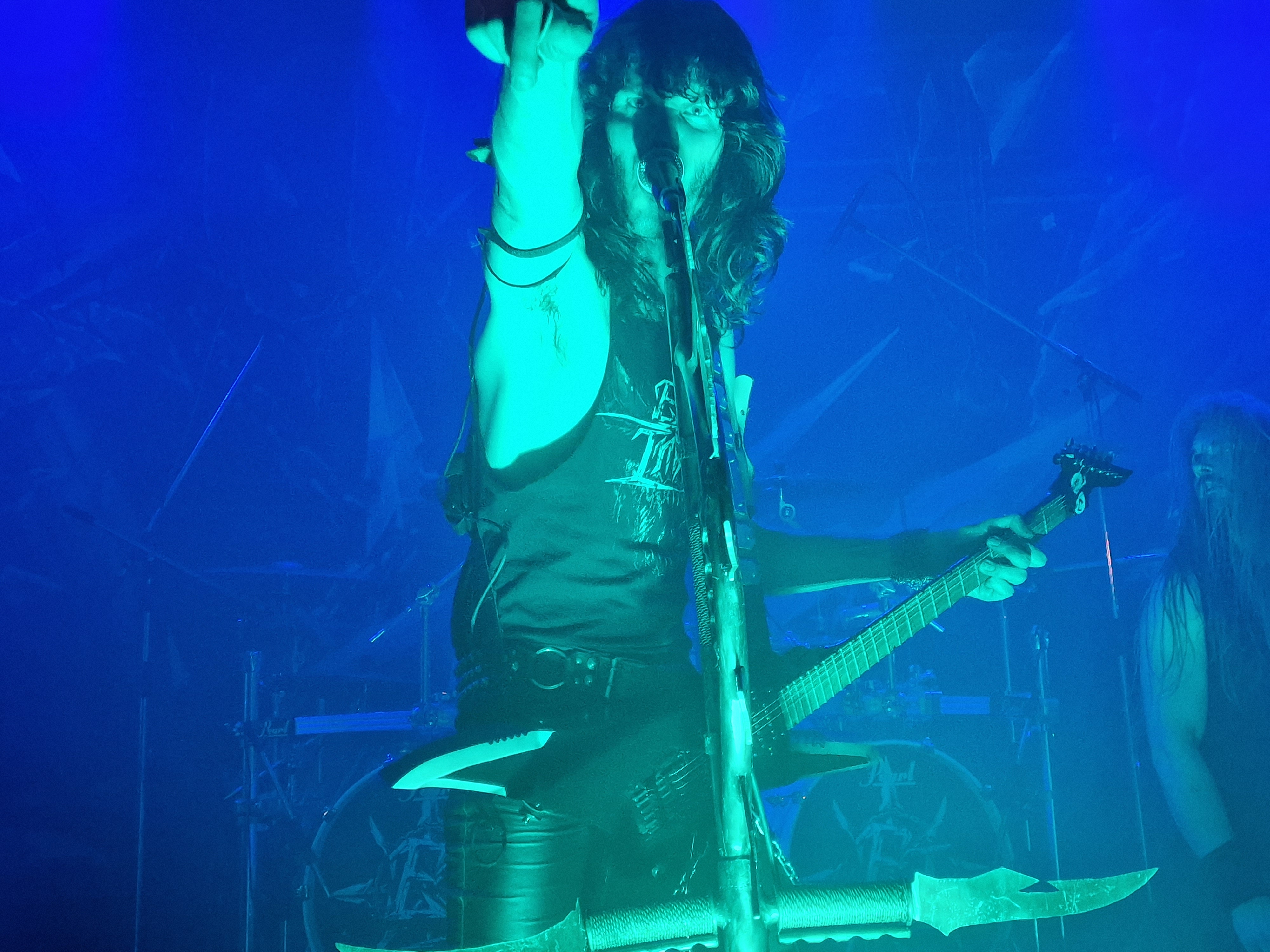 Es folgte die aggressivste Combo des Abends. Die Band um Messerfetischist Joe hat mit „Shattering Reflections“ gerade ein Hammeralbum abgeliefert und nun galt es diese Vorlage live zu verwandeln. Es sei gesagt, dass dies denn Belgiern (mit deutscher Unterstützung) mühelos gelang. Es gibt einfach keinen schlechten EVIL INVADERS Gig. Sowohl das Energielevel als auch technische Präzision und Tightness sind immer unfassbar hoch und zurecht entfachten EVIL INVADERS den ersten Moshpit des Abends. Sogar zarte Stagediving Versuche waren zu sehen. Faszinierend auch, dass sowohl langsame, fast balladeske Klänge wie „In Deepest Black“ funktionierten, als auch aggressive Raserei wie „Feed Me Violence“. EVIL INVADERS sorgten dafür, dass es in der warmen Live Music Hall nun richtig heiß wurde. Oder wie es Joe formulierte: „This is my hottest Show so far…and I was in fucking Brazil”. Nach AMBUSH ließen auch EVIL INVADERS ein erschöpftes, aber glückliches Publikum zurück.