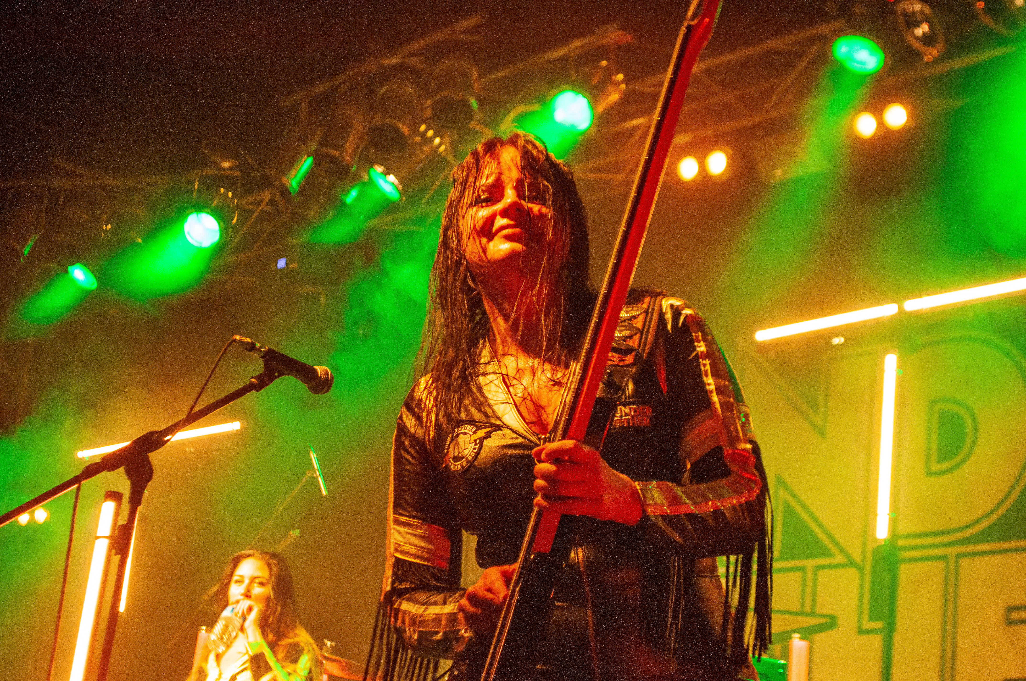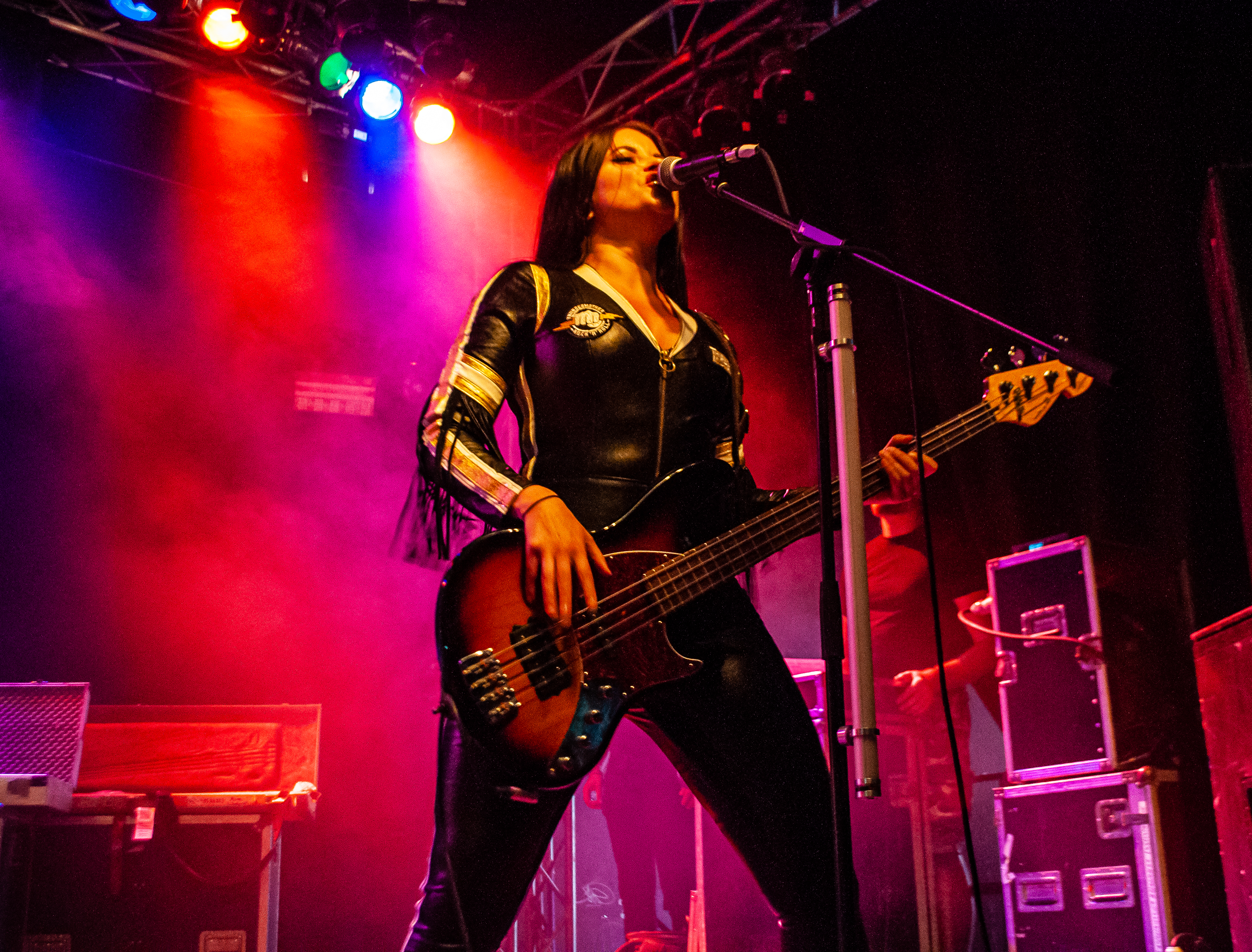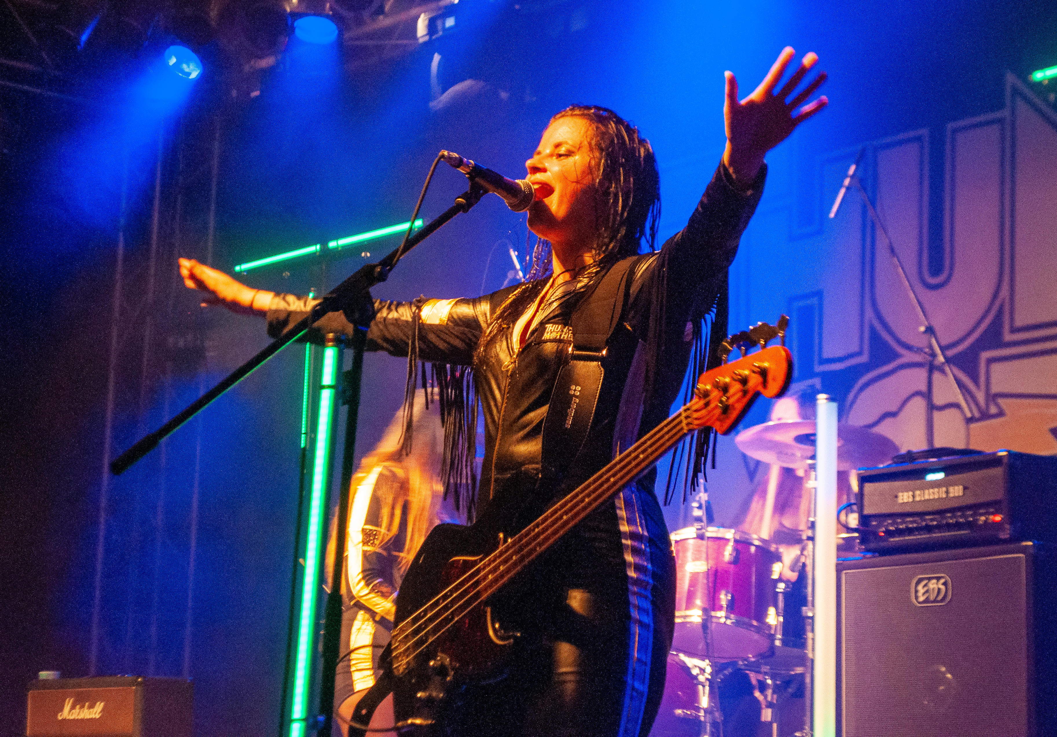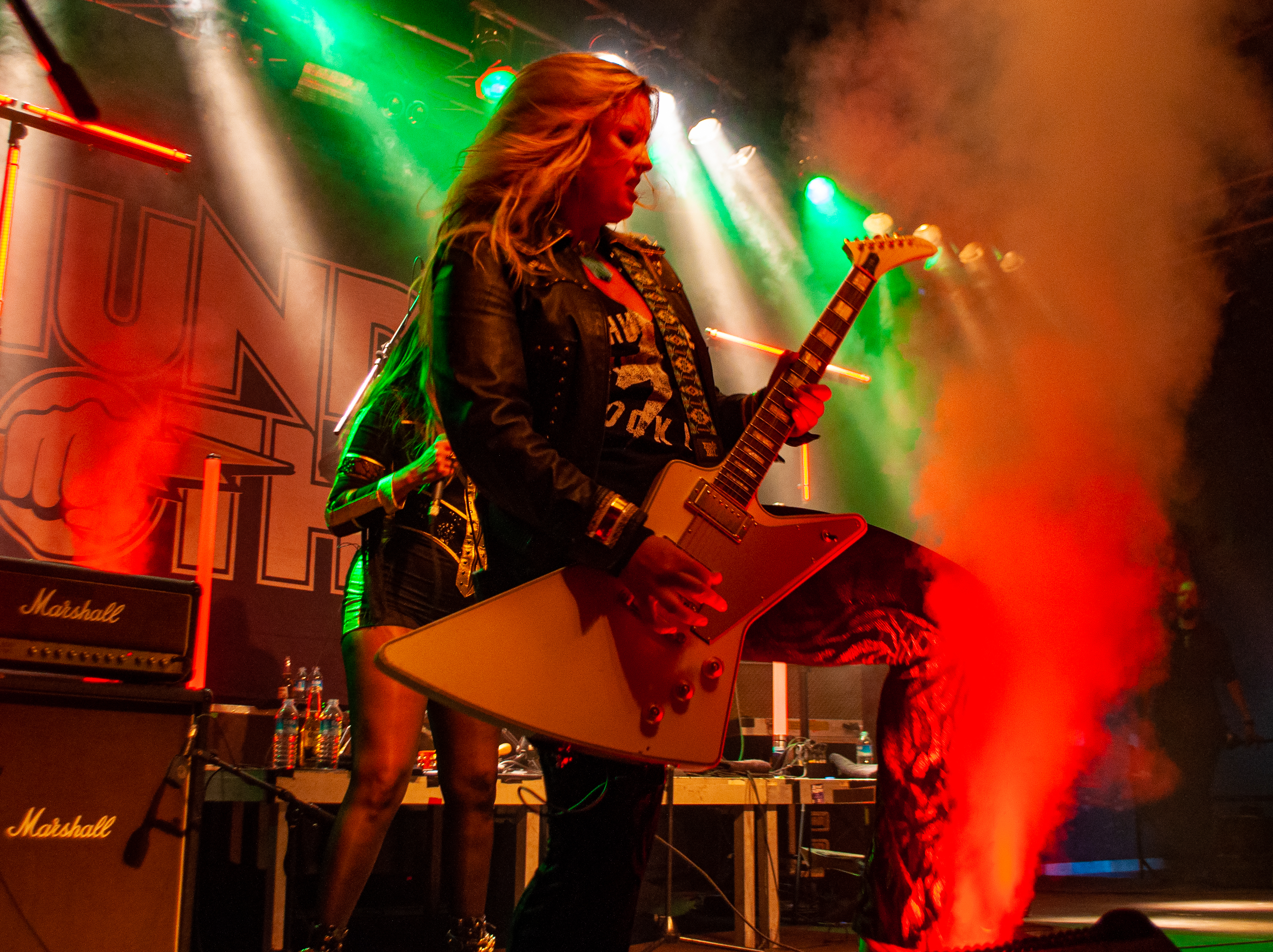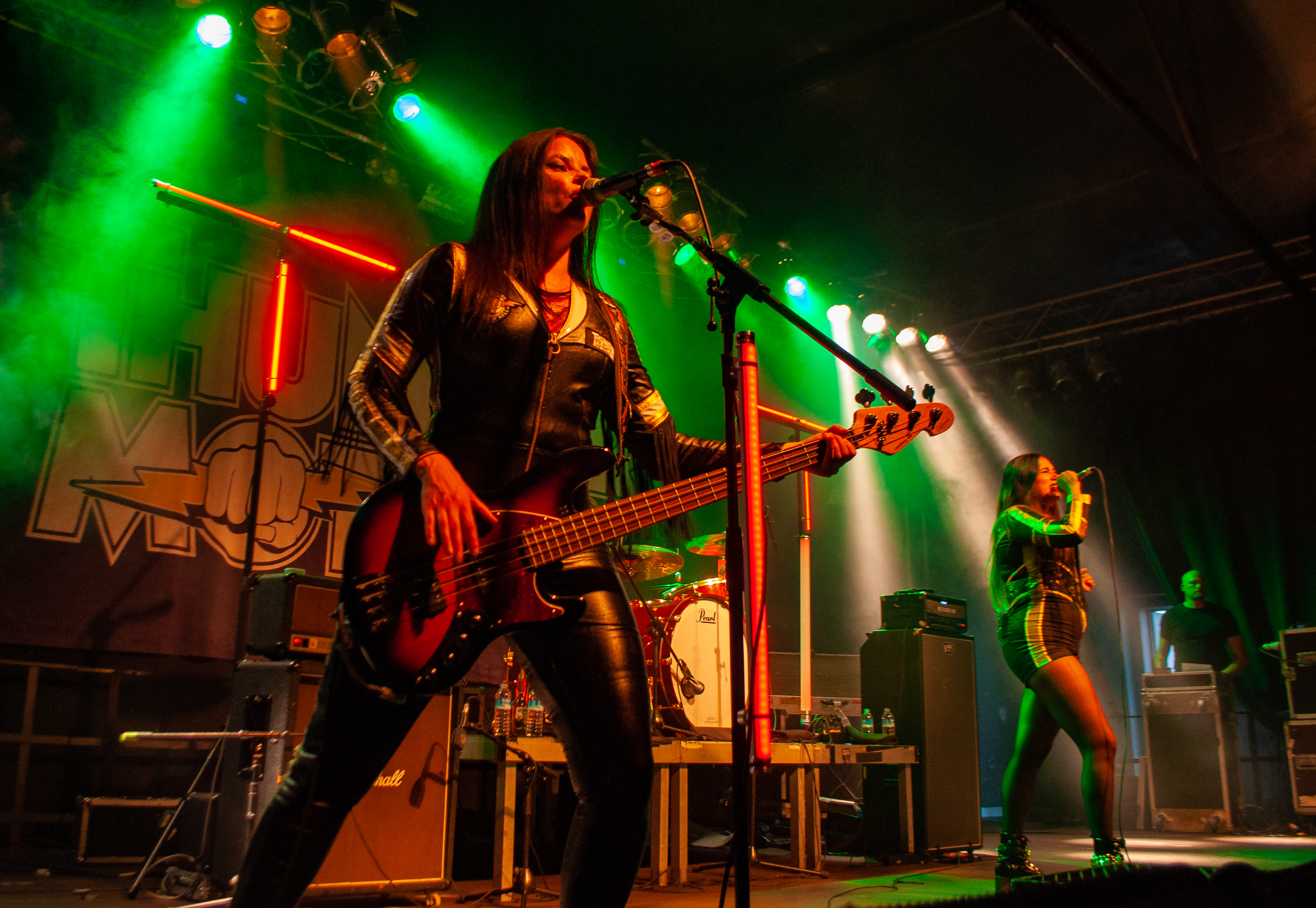 THUNDERMOTHER legen hier noch eine Schippe drauf: Mit „Whatever“ starten sie ihr Set und geben von Anfang an Vollgas. Es folgen „The Road is ours“ und das lässig groovende „Dog from Hell“. Die Energie der vier Damen ist ansteckend und ihr Hardrock geht durch Mark und Bein. Älteres Material wie „Thunderous“ und „Deal with the Devil“ gehen live genauso gut, wie die aktuellen Tracks „Watch Out“ und das eingängige „I Don't Know You“. Was mich und das Publikum an diesem gelungenen Konzertabend am meisten beeindruckt, ist die grandiose Spielfreude mit der THUNDERMOTHER hier überzeugen. Die charismatische Rockröhre Guernica Mancini ist stimmlich voll auf der Höhe, Emlee Johansson treibt die Truppe am Schlagzeug an und Bassistin Mona Lindgren und Gitarristin Filippa Nässil posen um die Wette. Diese großen Rock- und Metalposen beherrscht die Truppe vorzüglich. Bandchefin Filippa transformiert auf der Bühne zur unbezähmbaren Rockmaschine, mit wildem Mienenspiel. Die neue Bassistin Mona Lindgren ist ein Gewinn für die Band und wirbelt bewegungsfreudig über die Bühne. In dieser Verfassung könnten THUNDERMOTHER bei der anstehenden Support-Tour den SCORPIONS leicht die Show stehlen!